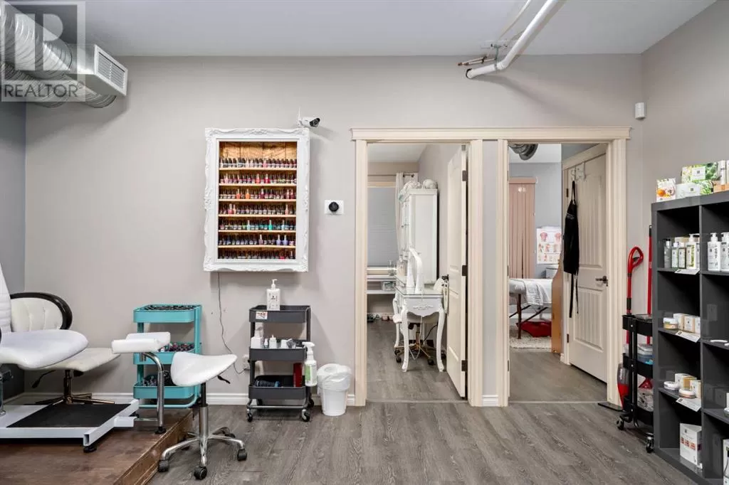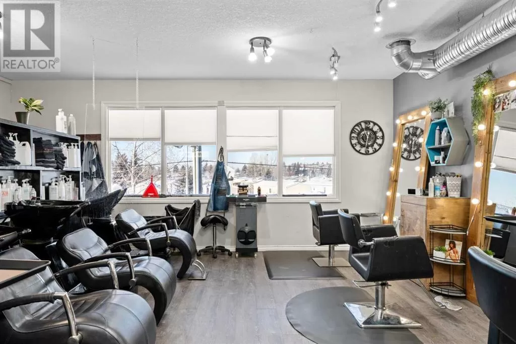 Fantastic opportunity to own half of the 2nd floor of this great commercial unit. This unit has lots of potential for a multitude of uses, at one time it was split into 2 tenants and could easily be split again if you wanted to have a smaller space for your business and rent out the other side. This unit is currently being used a spa and salon, please note the fixtures belong to the tenant and will be removed. This is a great location with lots of natural light, your own heating and cooling controls. There is a reception with a kitchen area and a washroom with tiled flooring (there is potential for a 2nd washroom but it is currently being used as the laundry). There is a huge room with large windows (this is currently used for the hairdressing stations), there are 3 private rooms and another area that would make a great shared space. The unit has modern paint colours and gorgeous flooring. There is additional storage space and an entrance to the back staircase. The building is well maintained and there is lots of parking for your customers. This is a great unit in a fabulous location! View 3D Tour. (id:27476)