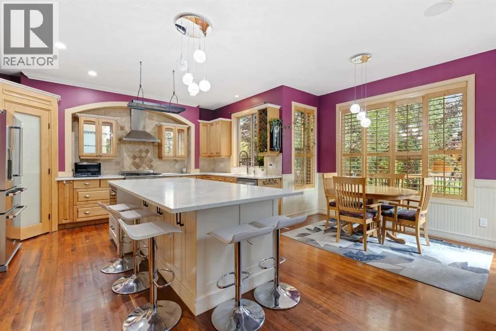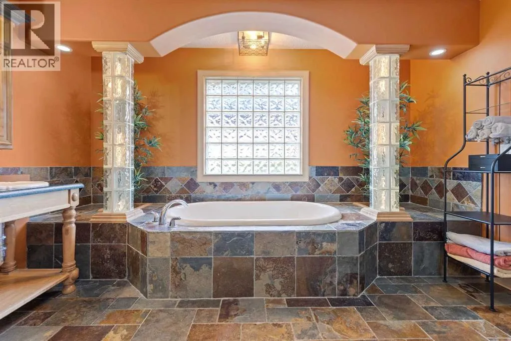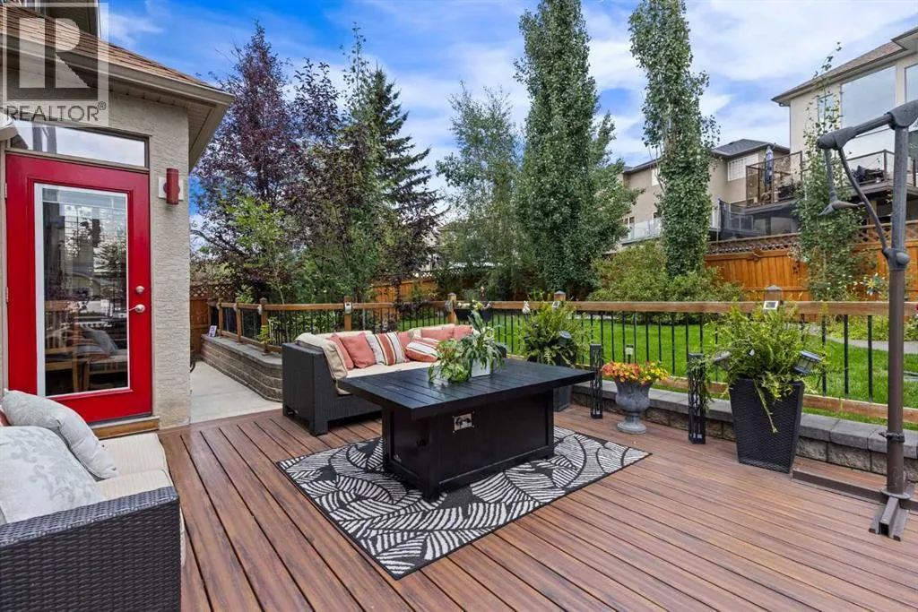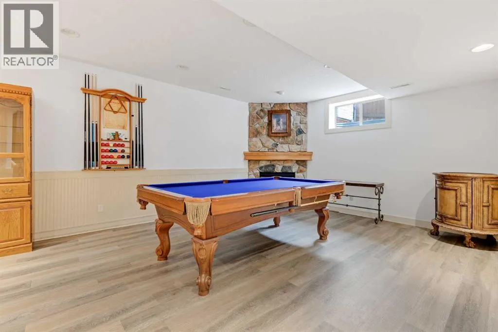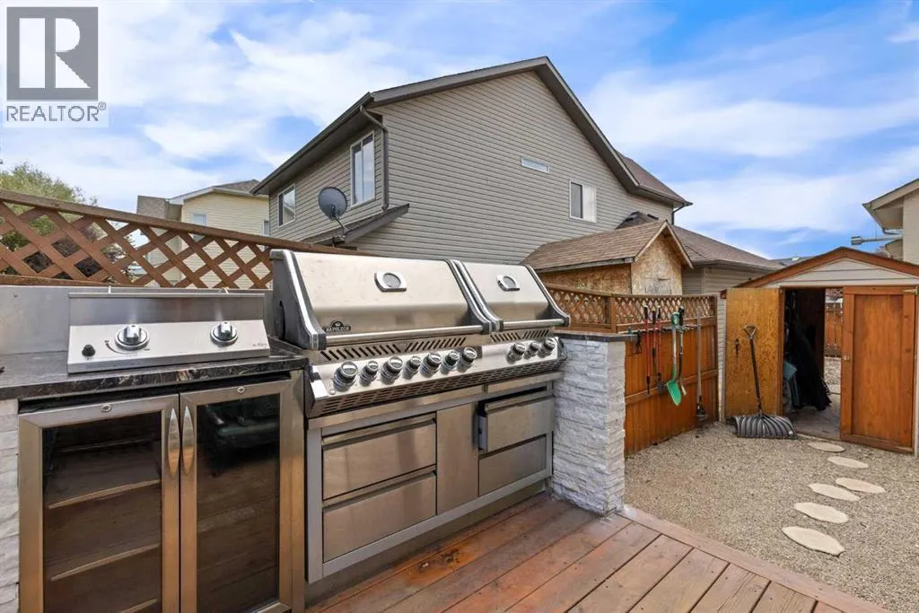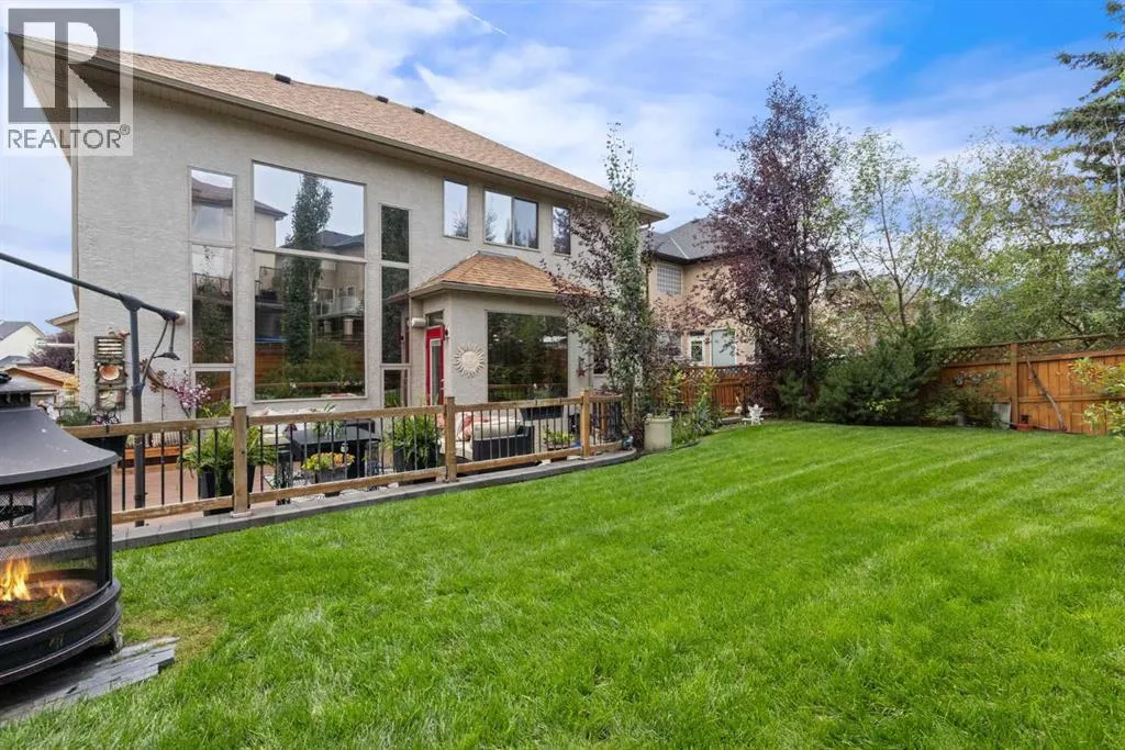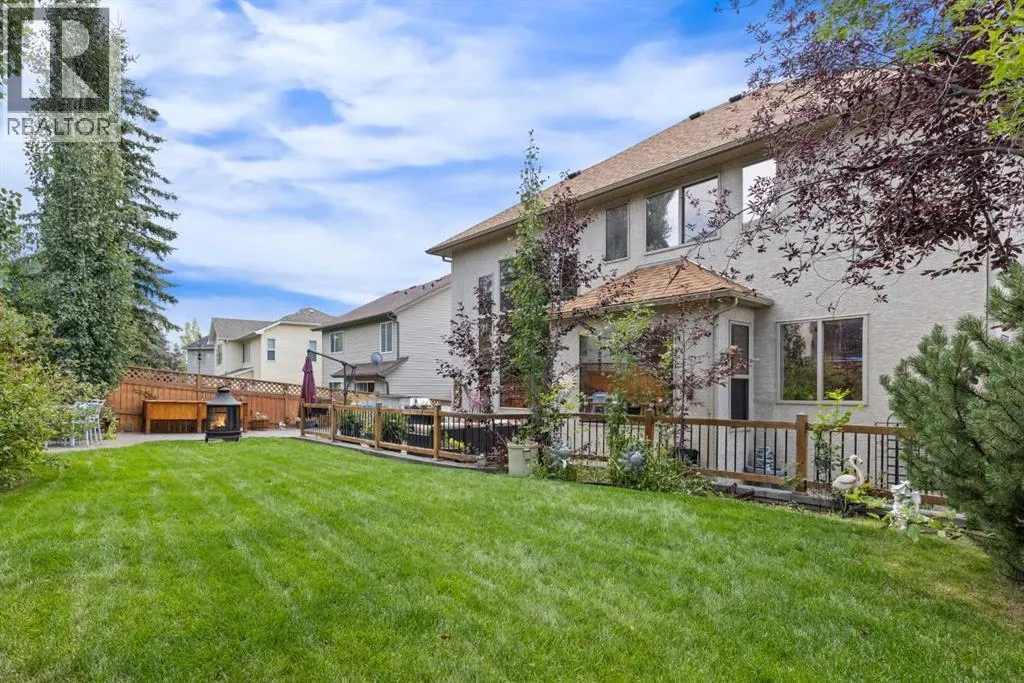 Just what you've been waiting for, this former show home is just steps to the Crystal Shores Lake and has custom features everywhere you look throughout the property! Located just half a block from the lake entry, you'll notice the beautiful stucco & stone curb appeal and a extended stamped and exposed driveway that leads into the heated garage with epoxy flooring and access door to back yard. Inside the front door is a grand entry with soaring ceilings. The formal sitting room has vaulted ceilings and large south facing window that fills the room with light. The kitchen is gorgeous with 2 tone cabinetry, large island with built in microwave & beverage fridge & hanging pot rack, gas range with tiled arch surround, window cabinets, stainless steel appliances, bright quartz countertops, corner pantry, sink looking out onto the back yard, and ample cabinetry. The living room has high coffered ceilings, massive windows, floor to ceiling stone fireplace, built ins and cabinetry with display lighting. The dining nook over looks the backyard and is filled with natural light. Through the barreled archway you'll find the formal dining with ample lighting, custom hardwood flooring detail and wooden accent pillars. The main floor also has an office, laundry room with cabinetry, powder room and mud room with built in storage. Take the curved staircase upstairs where you'll find the master suite with french doors, big windows, large walk-in closet and ensuite bathroom with double vanity, large soaker tub and newly renovated tiled shower with bench and glass door. There are 2 generous bedrooms with a jack'n'jill styled bathroom with double vanity and newly renovated walk-in shower. The basement is fully finished with a large family/games room with gas fireplace, 2 good sized bedrooms and another full bathroom. The yard is an oasis, you'll want to spend all your time there! It has underground sprinklers, a large composite deck, retaining wall, concrete patio and pathway around hou se, mature trees, outdoor kitchen with stone sit up bar, BBQ, beverage fridge and smoker, gas line to the fire table, and a storage shed. There is wainscotting throughout most of the home, A/C, drinking water system, custom shutters, and so much more!! (id:27476)