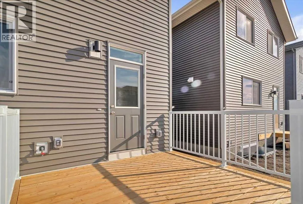 Welcome to this beautiful brand-new property in Okotoks. This house is situated in a new quite community, family-friendly neighborhood. A short walk to DâArcy Ranch Golf Club, and shopping like Safeway, shoppers Drug Mart, Starbucks, Dollarama, Pet value and more. As soon as you step in to this property you will be greeted by nice foyer and coat closet. The main floor offers open layout, great kitchen with stainless steel appliances, Quartz countertops, good size kitchen island, upgraded cabinets with soft closing and under-cabinet lighting. The kitchen also comes with a generous size pantry with wired shelving. As you walk away to the back of the house, you will have access to a two-piece bathroom, a built-bench and a back door that leads you to a good size deck with railing, BBQ gas line to enjoy the summer days on your backyard. As you walk to the second floor you will find three bedrooms, tow and half bathrooms, stackable washer and dryer and a linen closet. Every bedroom comes with walk-in closet. This property also has a side entrance that leads to the basement. The basement has a great layout that offers excellent opportunity for development. 9â foundation walls and two windows and all mechanicals are in one corner. This is an incredible opportunity in Okotoks. Book you showing through showing time. (id:27476)