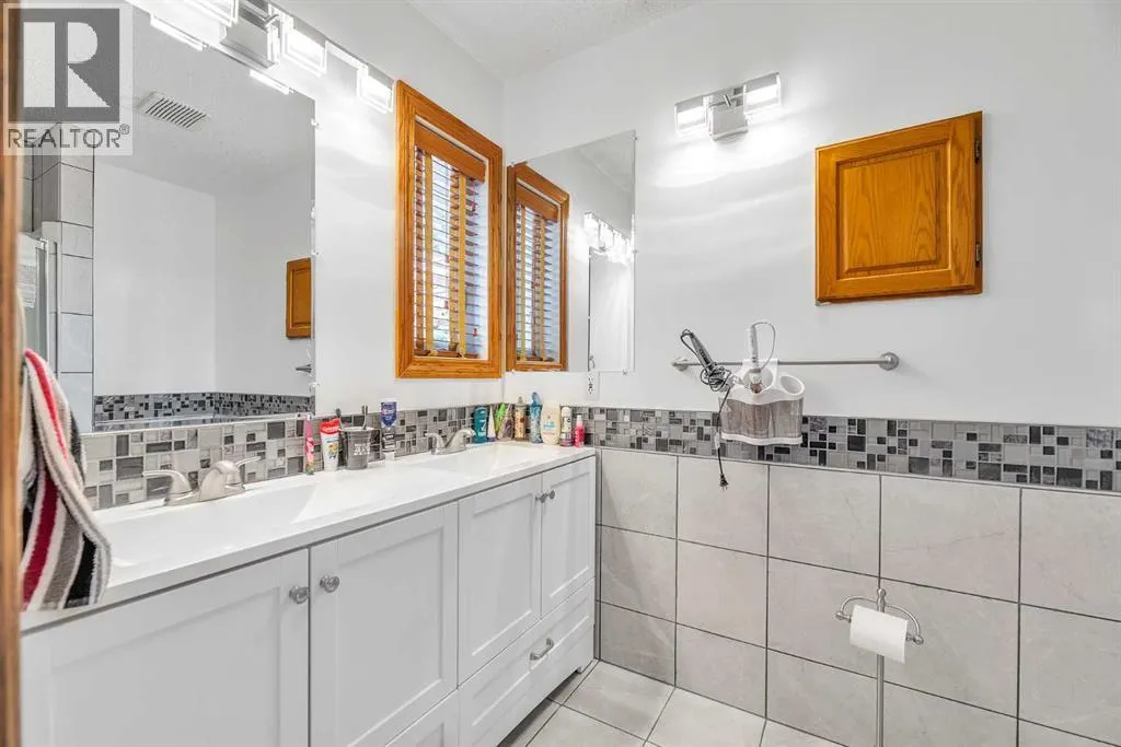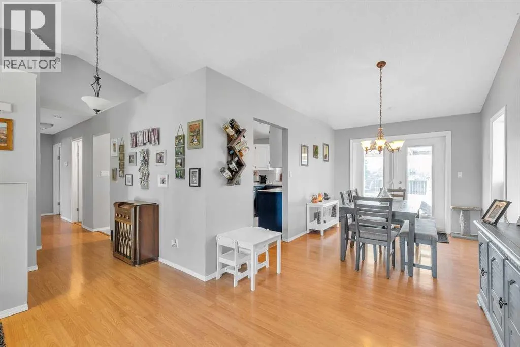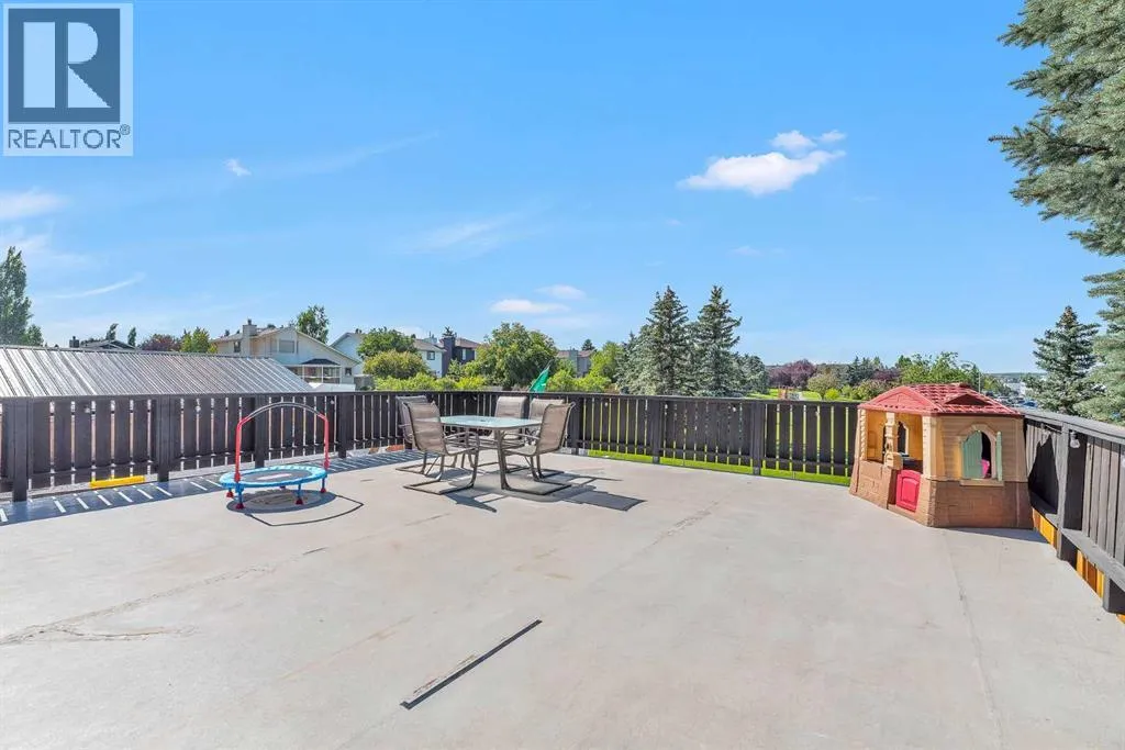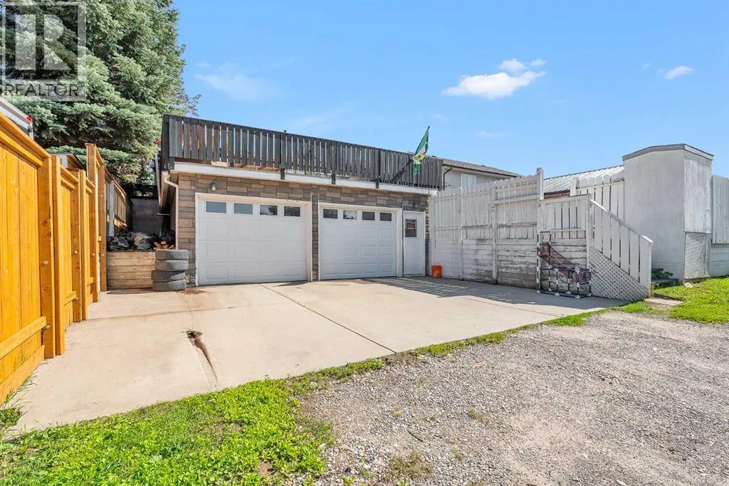 Spacious 5-Bedroom Home with Oversized Garage, Pool & Stunning Views!This exceptional five-bedroom home features an incredible 812 sq. ft. garageâlarge enough to accommodate four vehicles with ease. Above the garage, enjoy a massive rooftop deck with a pergola and panoramic views of the park and the Town of Okotoksâa perfect space for relaxing or entertaining.The newly redesigned backyard is an outdoor oasis, complete with a pool, fresh landscaping, offering the ultimate space for summer fun and family time. Inside, the main level is bright and airy with vaulted ceilings, a wood-burning fireplace, updated flooring and fresh paint, and three bedroomsâincluding a primary suite with ensuite bath.The fully developed lower level boasts brand-new flooring, fresh paint, two additional bedrooms, a den/craft room (currently used as a 6th bedroom), a laundry room with garage access, and a spacious family room with gas fireplace and partial kitchenâideal for extended family or guests.Located within walking distance to shops, parks, and your morning coffee, this home blends lifestyle, location, and functionality. (id:27476)