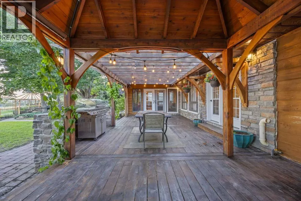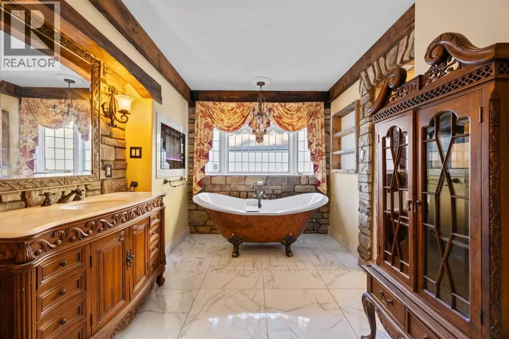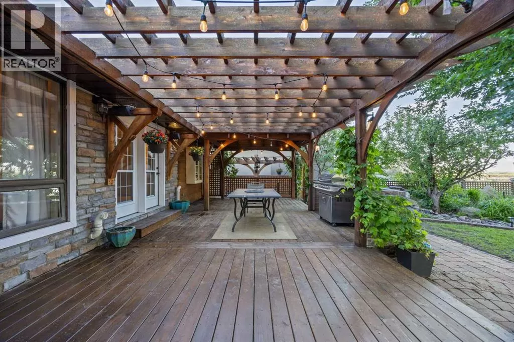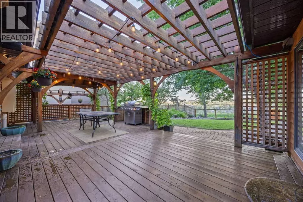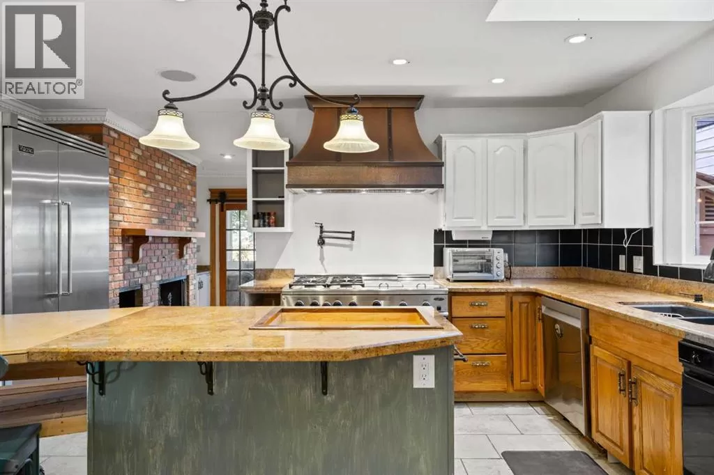 OPEN HOUSE SATURDAY AUGUST 23, 11-1PM**Perched on a coveted ridge in the Downey community, this 2468 sqft. bungalow offers panoramic views of the Town of Okotoks and the Rocky Mountains â plus rare income potential with 1 legal basement suite and 1 illegal basement suite. When you enter the main residence you'll step inside to a warm, expansive main floor featuring a spacious living room with a wood-burning fireplace and log lighter, a bright dining room, large kitchen with large centre island, ample cabinetry, a custom hand hammered copper hood vent, pot filler, trash compactor, garburator, skylight with motorized opener, and high-end appliances including the massive gas stove. There is an office space with a wood burning fireplace that leads out to a massive sunroom perfect for year-round enjoyment and great views. On the other end of the home is the 3 bedrooms, The primary suite boasts an electric fireplace with a stone feature wall, brand new carpet, an ensuite with dual vanity and walk in tiled shower, his and her closet and direct access to the deck through patio doors that fill the room with natural light. The other 2 bedrooms are appropriatley sized, and the full bathroom has been extensivley updated with free standing claw foot tub with stone accent wall, and large walk in shower - a must see to fully appreciate. The lower level features a large theatre room with an 88" TV, sound system, wet bar and wine cellar. Legal suite 1-Bedroom, 1 full bathroom: Private entrance, soundproofed, vinyl plank flooring, full kitchen, stacked laundry. Illegal suite 1-Bedroom, 1 full bathroom (currently tenanted): Private entrance, soundproofed, vinyl plank flooring, full kitchen, stacked laundry. The yard is a showstopper â fully landscaped with mature trees, gorgeous flower beds, underground sprinklers in both front and back, a tranquil trickling brook and a charming gazebo overlooking Okotoks. The large deck (resurfaced July 2025) features a pergola, intricate woodwork, g as lines for a BBQ and outdoor fireplaces, the side yard is equally impressive with stunning wood accents. The oversized, heated double attached garage has 2x 220V outlets, hot water taps, plus a freshly redone (July 2025) driveway along with ample street parking. There is no shortage of space, views, or income potential here. Walking distance to the Okotoks Recreation Centre, multiple elementary and junior high schools, and minutes from parks, pathways, and shopping. Easy 20-minute commute to Calgary.This is more than a home â itâs an investment in lifestyle and opportunity. (id:27476)