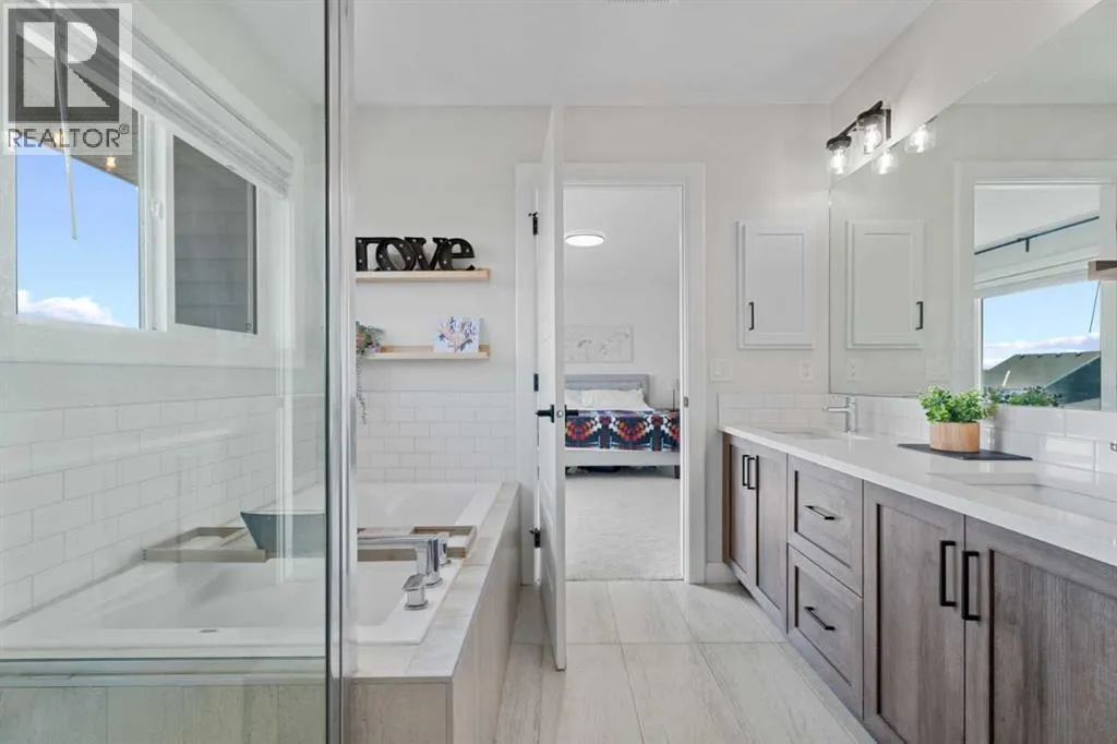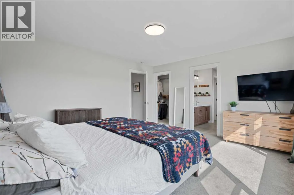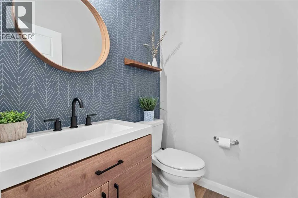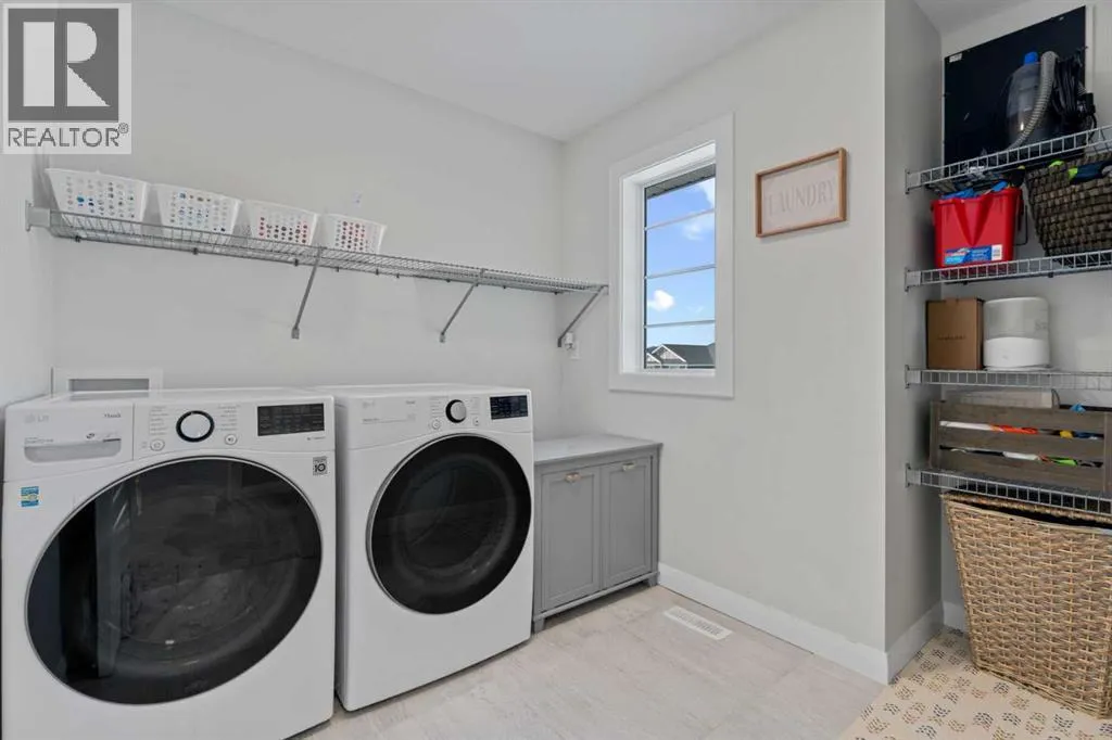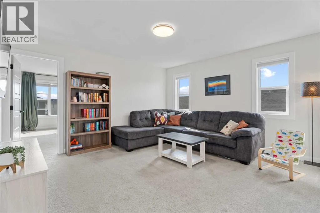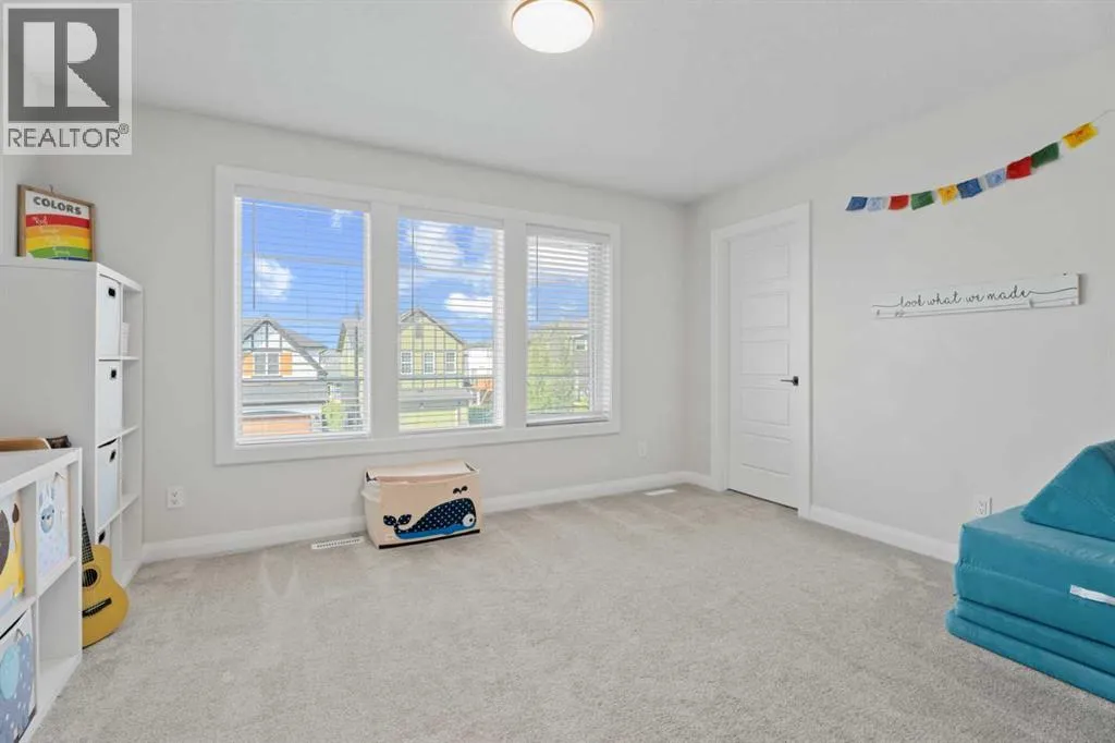 ~~ NEW LOWER PRICE ~~ Welcome home to this stunning, nearly new walkout home that is designed for modern family living and entertaining. At the heart of the home is a gorgeous kitchen with a large island, a separate pantry, and a family-sized walkthrough from the garage for easy everyday flow. The dining room boasts a striking feature wall (you can access the main level balcony from the dining room) and the living room is warmed by a showstopper gas fireplace with an included art frame TV. An office/flex room and a stylish 2-piece powder room complete this level. The upper level offers 4 bedrooms plus a bonus room (that divides the primary suite from the other 3 bedrooms) and is filled with thoughtful upgrades throughout. The primary suite is a true retreat with a luxurious 5-piece ensuite, walk in closet with room for a king sized bedroom set. This floor also features a 5-piece family bath, convenient laundry with a sink rough-in, and two of the bedrooms have walk-in closets. The unfinished walkout basement is bright and open, with a bathroom rough-in,a great utility area complete with a laundry tub. Additional highlights include a 50-gallon hot water tank, dual-zone furnace, main level flooring upgraded to showhome standards and the garage was bumped out an additional 2 feet â so yes, your truck will fit! Outside, enjoy the thoughtfully landscaped backyard with a pergola, a fenced dog run, and a gas line on the back deck for BBQs. Located in beautiful Air Ranch, with access to the walking/biking trails, schools, conveniently accessible main roads for commuting, this home combines style, function, and space for the whole familyâmove-in ready and waiting for you! (id:27476)