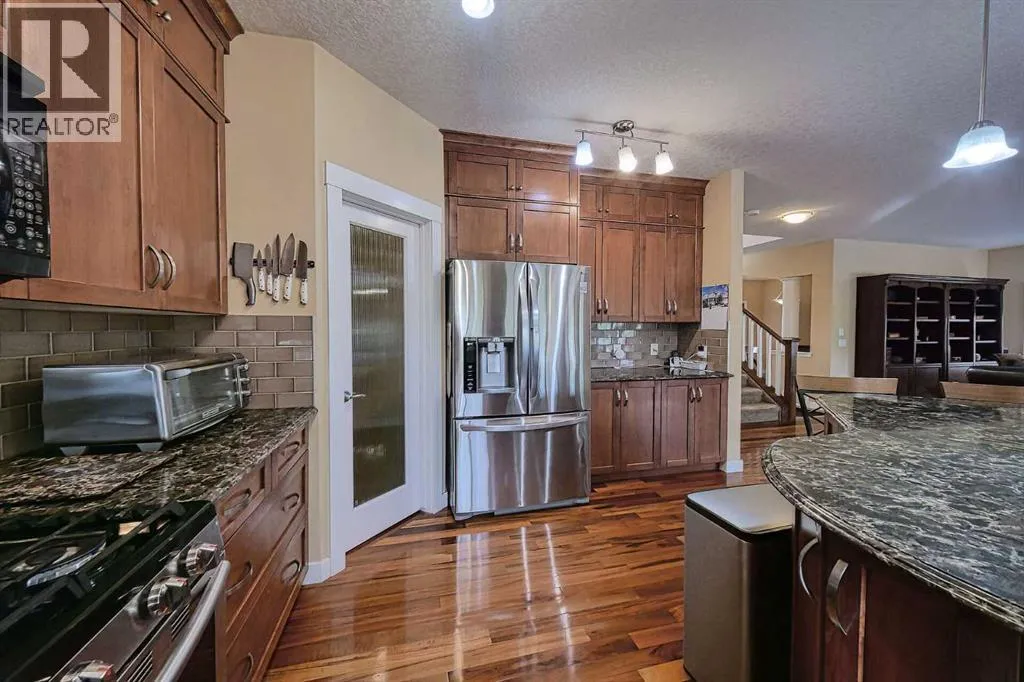 Welcome Home to this well maintained spacious 2 story home that backs on a beautiful pond on the 5th hole of the Crystal Ridge Golf course. This over 2400 square feet home offers 3+1 bedrooms, 3 & 1/2 bathrooms. A cozy Living room with a gas burning fireplace! Gorgeous Brazilian TIGER WOOD hardwood, custom slate-look vinyl flooring; knock-down ceilings, a convenient WALK-THRU pantry, a super-sized laundry room & mud room, tons of large windows through out, an oversize nook w/wrap around windows to enjoy the VIEWS of the golf course, an incredible kitchen w/ extra tall MAPLE cabinets, large center island, and upgraded appliances & Granite Counter tops, a wonderful dining room or den w/stately COLUMNS,...! There's the "MASTER Bedroom TO LIVE FOR"....w/the double REED-GLASS doors, a two-sided gas burning fireplace, a separate retreat/office area, and an exceptional en-suite w/ double sinks, 6" jetted tub, 4' shower and a huge walk-in closet. The fully finished basement offers a huge recreation room with built-ins, a good size bedroom and an office as well as a full washroom with steam shower. The 17' wide front porch and a 14 'x 12' rear deck...All this and LAKE PRIVILEGES too!! There is an Irrigation system, a wood burning fireplace in the backyard with an interlocking brick patio, the 220 power charger for electric vehicles, instant hot water, solar panels,..................! TRULY an excellent home for a growing family. (id:27476)