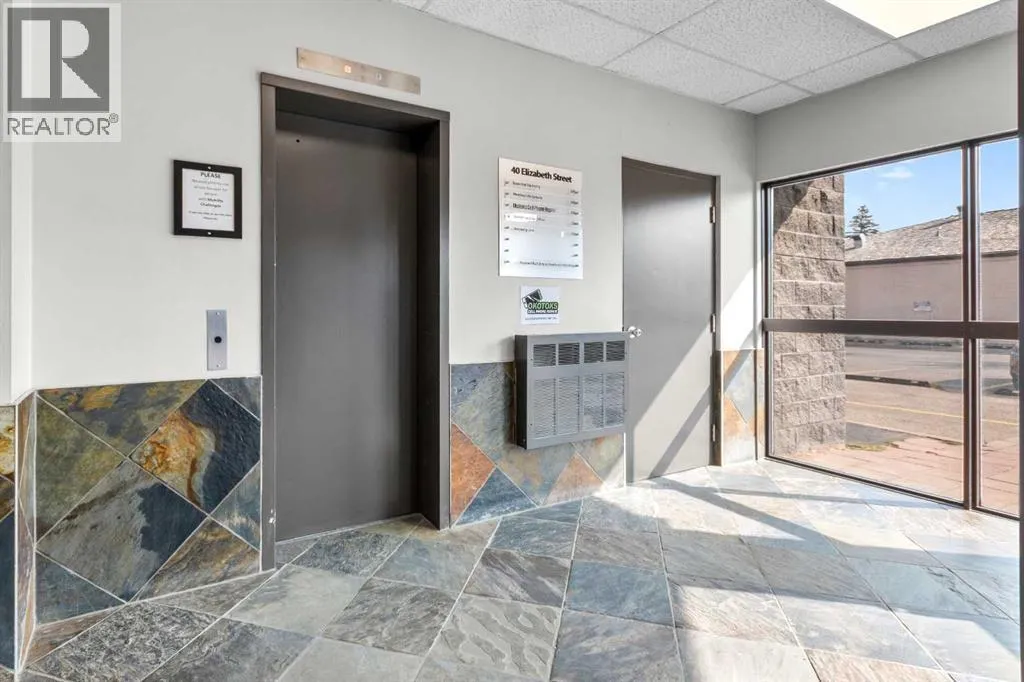 Looking for great office space in downtown Okotoks then look no further. The front of the building is on Elizabeth street and there is a parking lot belonging to the building too - great for your customers. The building has an elevator so no concerns about access to the 2nd floor. There are shared washrooms just steps away from the space. The space includes a reception area, a meeting room, kichenette area, a large central space and 4 offices. The space is a total of 1297 sq ft with rent being $15 per sq ft + op costs of $13.38 per sq ft (heat, water and electric are included). This is a great space with lots of natural light. A great opportunity in downtown Okotoks! See 3D tour. (id:27476)