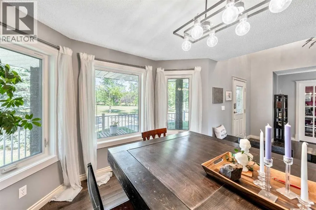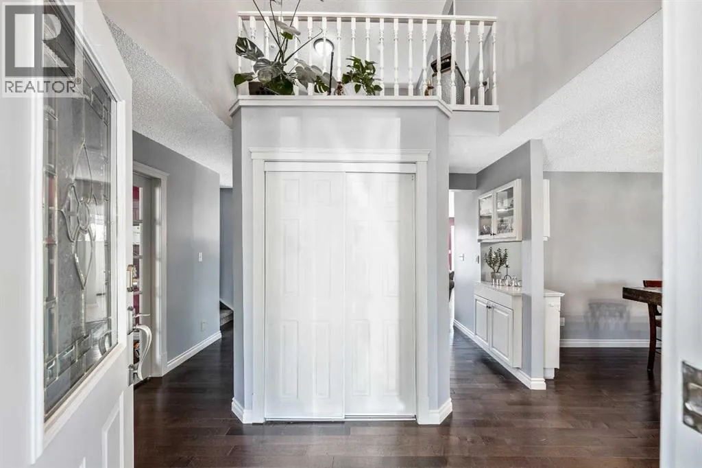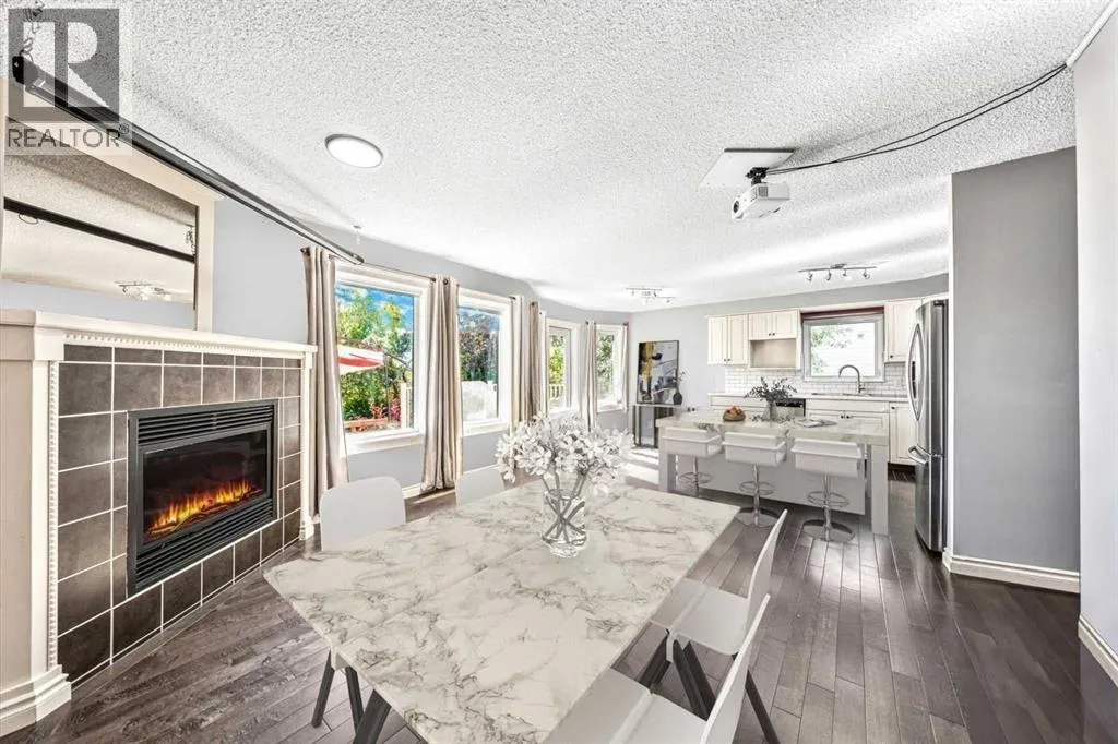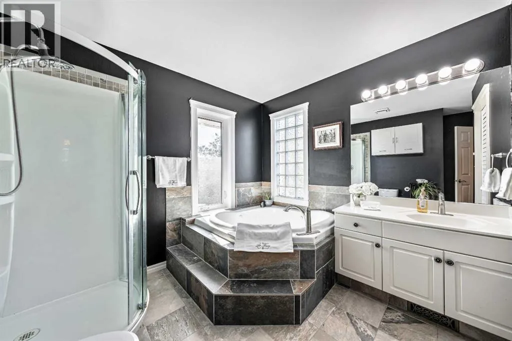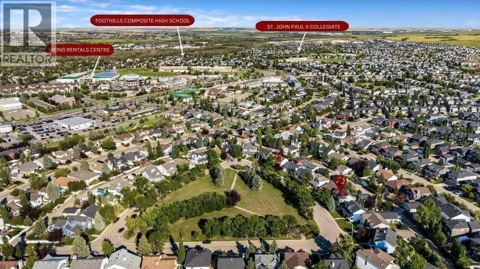 Donât Miss Out on the Opportunity to Make This Character Home Your Own! Situated in one of Okotoksâ most coveted cul-de-sacs, this Westridge gem faces a picturesque parkâperfect for family fun or a relaxing evening stroll. Designed with storybook charm, it captures the essence of a fairytale with steeply pitched roofs, a majestic turret, & a front porch that wraps to the side of the home, completing its timeless appeal. Flooded with character & natural light, this 2-storey residence offers over 2,930 sq. ft. of living space with 5 spacious bdrms, 3.5 bthrms, AIR CONDITIONING, & a SOUTH-facing backyard retreat featuring a 3-tiered deck. Step inside to a soaring, light-filled foyer.At the front of the home, an expansive formal dining room with a large bay window overlooks the park, while a versatile office/denâideal for the inspired artist or home professionalâalso enjoys views of the majestic park.At the back of the home, the open-concept design seamlessly connects the kitchen & living area, where a cozy fireplace creates the perfect gathering place for family & friends. The kitchen is framed by its own bay windows overlooking the sun-drenched backyard, mirroring the front dining room bay window & filling both spaces with charm & natural light. It also features stainless steel appliances, ample cabinetry, & generous counter space. A powder room & main-floor laundry are also conveniently located near the back entry. Upstairs, youâll find 3 generous bedrooms, a 4-piece bath, & a bonus room. Primary suite is a true retreat, highlighted by vaulted ceilings, elegant turret bay windows overlooking the park, & a 4-piece ensuite featuring HEATED FLOORINGâperfectly toasty for winter-a large soaking tub, separate shower, & walk-in closet. The fully finished bsmt expands the living space with 2 additional bedrooms, a recreation rm, a newly renovated 3-piece bath, a family rm, & plenty of storage. Step outside to your private oasis: a spacious, south-facing yard with a 3-tiered deck, gas hook-up, & mature treesâperfect for summer entertaining. Set on a LARGE SOUTH-facing lot, the home is complemented by an OVERSIZED, HEATED DOUBLE GARAGE with 220V power, its own furnace, and dedicated workshop space. **Noteworthy Upgrades**: Every detail of this home reflects thoughtful care and quality. All windows, including the basement, were replaced in Mar 2025 w/ PlyGem triple-pane units (transferable warranty). New stove & microwave (Aug 2025) plus 2023 washer & dryer w/remaining warranty. New 2024 hot water tank (10-yr warranty) + 2023 water filtration system. Updated plumbing â NO Poly-B! Radon mitigation system (Oct 2024) for peace of mind where radon levels can run high. Furnace serviced annually for added efficiency. Perfectly positioned just minutes from top-rated schools, excellent amenities, & the scenic river pathway system, this home presents a rare opportunity to experience the very best of Okotoks living! (id:27476)