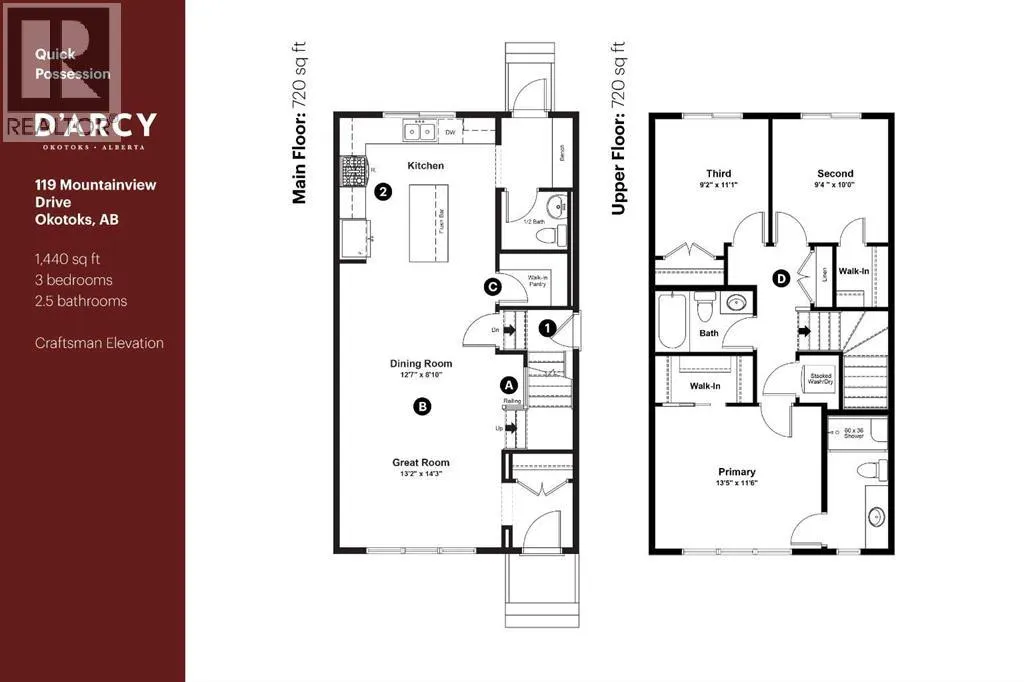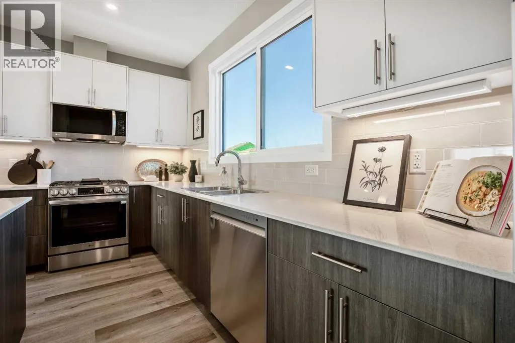 Move into a brand new home by Anthem Properties and enjoy life in the growing community of DâARCY, Okotoks. This 3-bedroom, 2.5-bath laned home offers 1,440 sq. ft. of living space with 9â ceilings, luxury vinyl plank flooring, and a bright great room that connects to the dining area and kitchen. The kitchen features quartz countertops, a silgranit sink, stainless steel appliances with gas range, a walk-in pantry, and a flush eating bar. Upstairs includes a spacious primary suite with walk-in closet and ensuite, along with two additional bedrooms, a full bath, and laundry. Built with triple-pane windows, a high-efficiency furnace with HRV, and a 9â basement foundation with side entry for future suite potential (subject to city approval). DâARCY offers pathways, parks, and golf right at your doorstep, plus a future town centre and quick access to Calgary. (Exterior render and interior photos are representative) (id:27476)