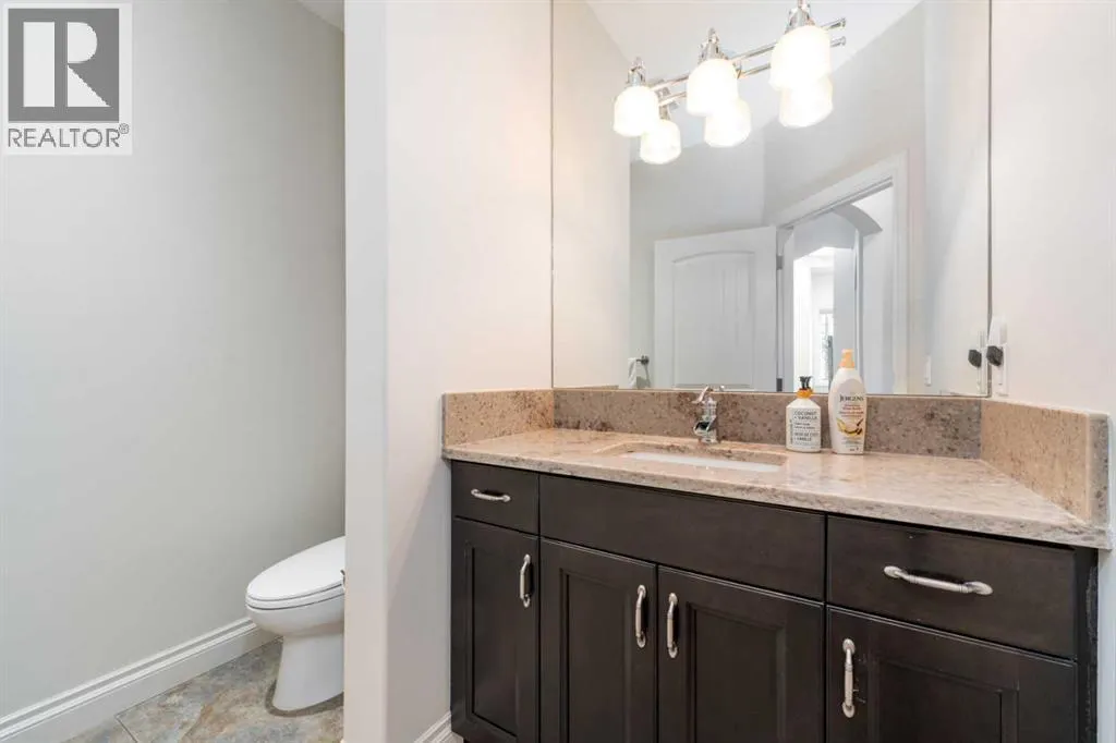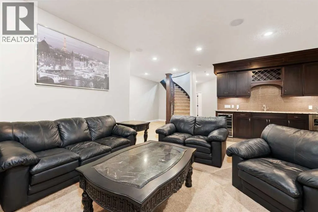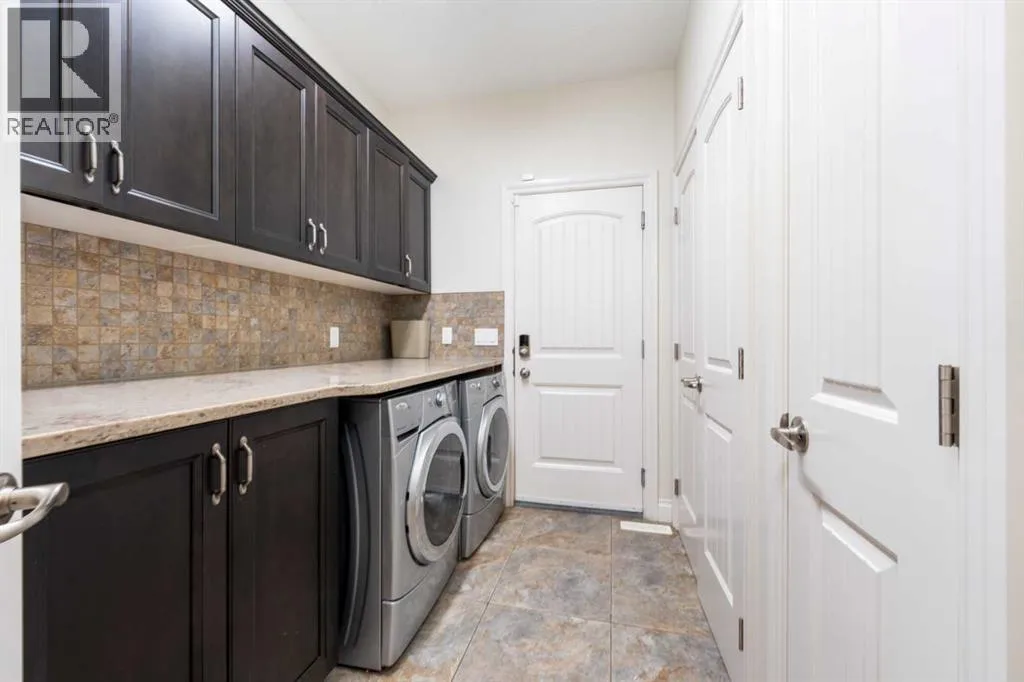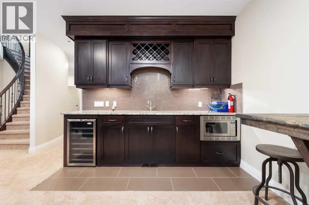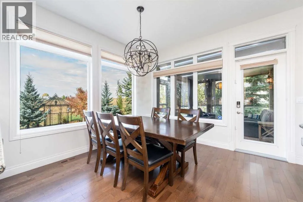 Looking for a home that has the âwowâ factor the moment you step inside? This former show home in Okotoksâ highly desirable Air Ranch community delivers exactly thatâand so much more. With 5 bedrooms, 3.5 bathrooms, and nearly every upgrade you could ask for, this property backs directly onto greenspace, offering a unique setting you wonât find anywhere else. Itâs a rare combination of refined design and everyday comfort, all wrapped up in one incredible package. From the moment you walk in, the grand foyer makes an impression with 18â ceilings, a sweeping spiral staircase, and natural light that fills the main floor. The layout is built for both entertaining and family living. The kitchen is every chefâs dreamâfeaturing a Wolf gas range, Viking fridge, custom Hammersmith hood fan, and a convenient water filtration/softener system. Rich cabinetry runs floor-to-ceiling, paired with granite counters, a large island, and a walk-in pantry to keep everything organized. Throughout the main level, youâll notice thoughtful details that set this home apart. A built-in audio system lets you enjoy music in every room. The office, tucked behind distinctive arched French doors, provides a quiet space for work or study. Even the laundry room has been elevated with granite counters to match the homeâs cohesive, upscale feel. Upstairs, three generously sized bedrooms and two full bathrooms provide plenty of space for family and guests. The primary suite is the highlightâa true retreat with room for a king-sized bed and private seating area. The 5-piece ensuite feels like a spa with a granite double vanity, corner soaker tub, walk-in tiled shower, and expansive walk-in closet. The fully finished lower level is where this home really shines. With two additional bedrooms, a 3-piece bath featuring a steam shower, and a large family room complete with a cozy gas fireplace and built-in entertainment centre, thereâs space for everyone. A granite-topped wet bar with sink, wine fridge, and microwave makes it easy to entertain or kick back for movie nights. Youâll also find a large finished storage area to keep everything neatly tucked away. Car enthusiasts or families with multiple vehicles will appreciate the massive heated garage, designed with both function and space in mind. Outdoors, the lifestyle continues with a screened-in covered sunroom off the kitchen eating nook, leading to a stone patio with a built-in fireplace and additional gas lines ready for your BBQ & sunroom. Surrounded by mature trees, Gemstone lights for year-round curb appeal, and serviced by an underground sprinkler system, the yard is both private and low-maintenance. Central AC adds comfort through the summer months, so youâll enjoy this home year-round. Air Ranch is one of Okotoksâ most distinctive communities, known for its quiet streets, beautiful homes, and unique aviation history. If youâre after a property that checks every boxâstyle, function, and locationâthis home has it all. Come take a look for yourself! (id:27476)