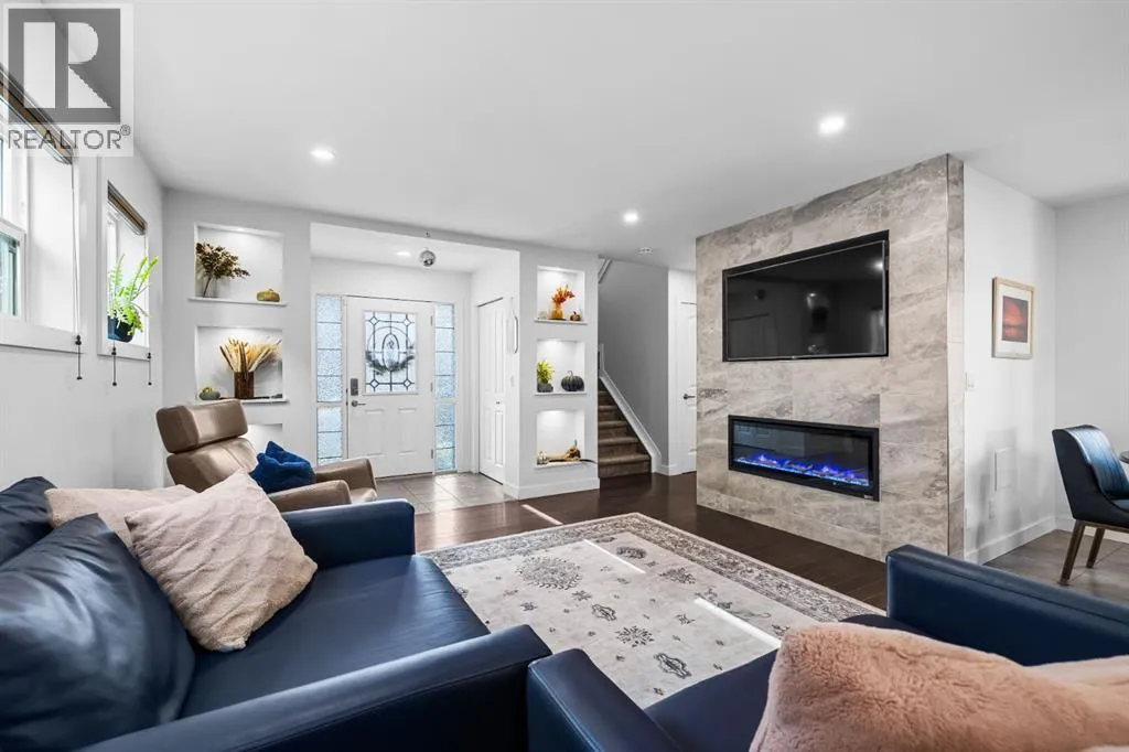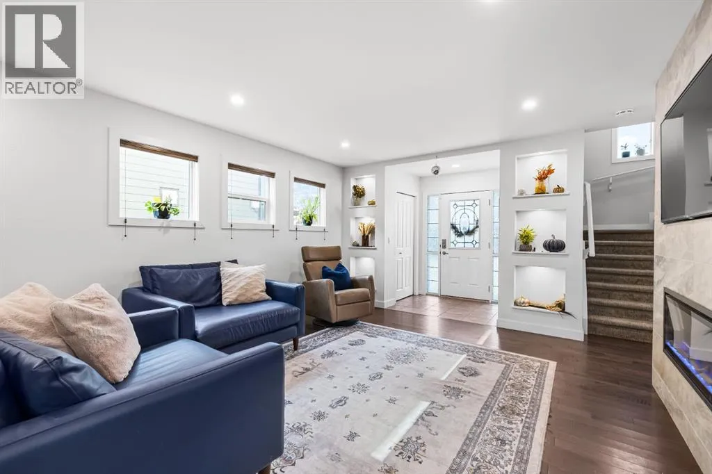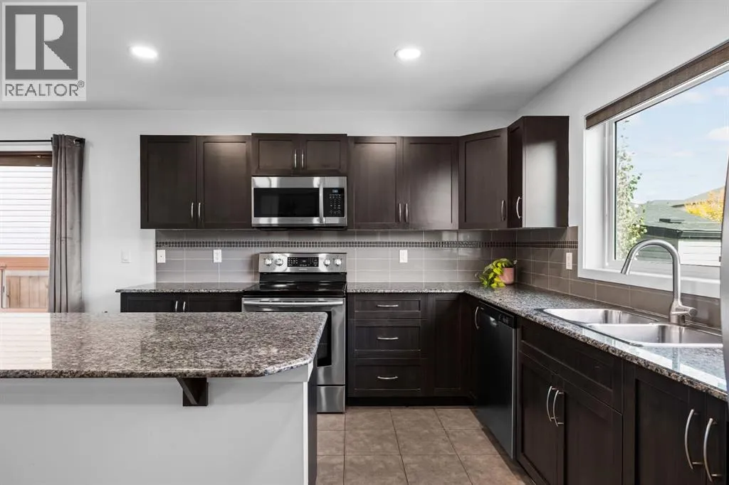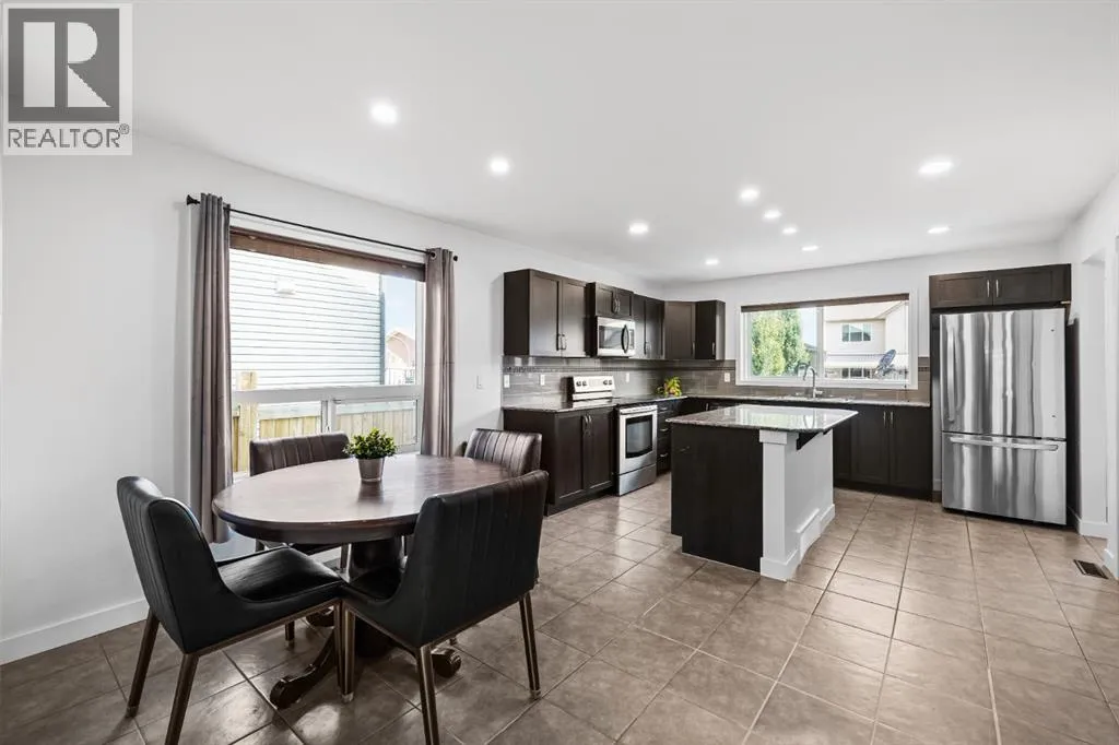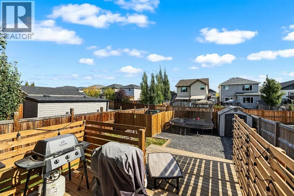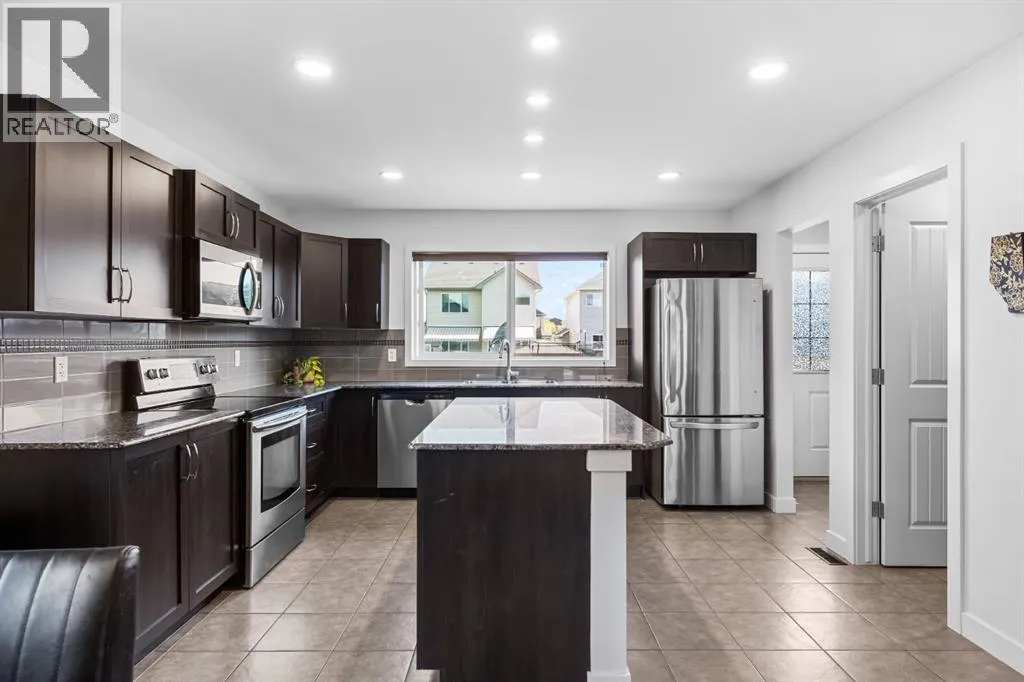 This beautifully maintained 3+1-bedroom home offers over 2,000 sq. ft. of comfortable living space, thoughtfully designed with families in mind and loaded with upgrades inside and out. From the moment you step inside, the spacious front entry with dual closets sets the tone-plenty of room for coats, shoes, and backpacks. The open main floor is warm and welcoming with hardwood floors, a cozy electric fireplace, and an abundance of natural light. The kitchen is both functional and impressive, featuring granite counters, a large island, stainless steel appliances (including a new microwave and dishwasher), and a walk-in pantry that keeps everything neat and organized. A large window overlooks the private backyard, where youâll find new landscaping with grass, gravel, fencing, and a two-tiered deck - perfect for family barbecues or quiet evenings outside. A generous mudroom off the back entrance adds extra convenience for busy households. Upstairs, the primary suite is a true retreat with a large walk-in closet and 3-piece ensuite. Two additional bedrooms, a 4-piece bath, and convenient upper-level laundry complete the space. The fully finished basement extends the living area with a spacious rec room and wet bar, plus a fourth bedroom and a versatile den. This home has benefitted from many thoughtful updates, including flat-finish ceilings, pot lighting, upgraded fixtures, new baseboards and casings, upgraded carpet and underlay, improved attic insulation, and a new hot water tank. Additionally, central A/C and the two-tiered deck have been added, making it even more comfortable and enjoyable year-round. Located in family-friendly Drake Landing, this home is just steps from playgrounds, schools, and green spaces. With its thoughtful updates, bright and functional layout, and a backyard ready to enjoy, itâs the perfect place to settle in and call home! (id:27476)