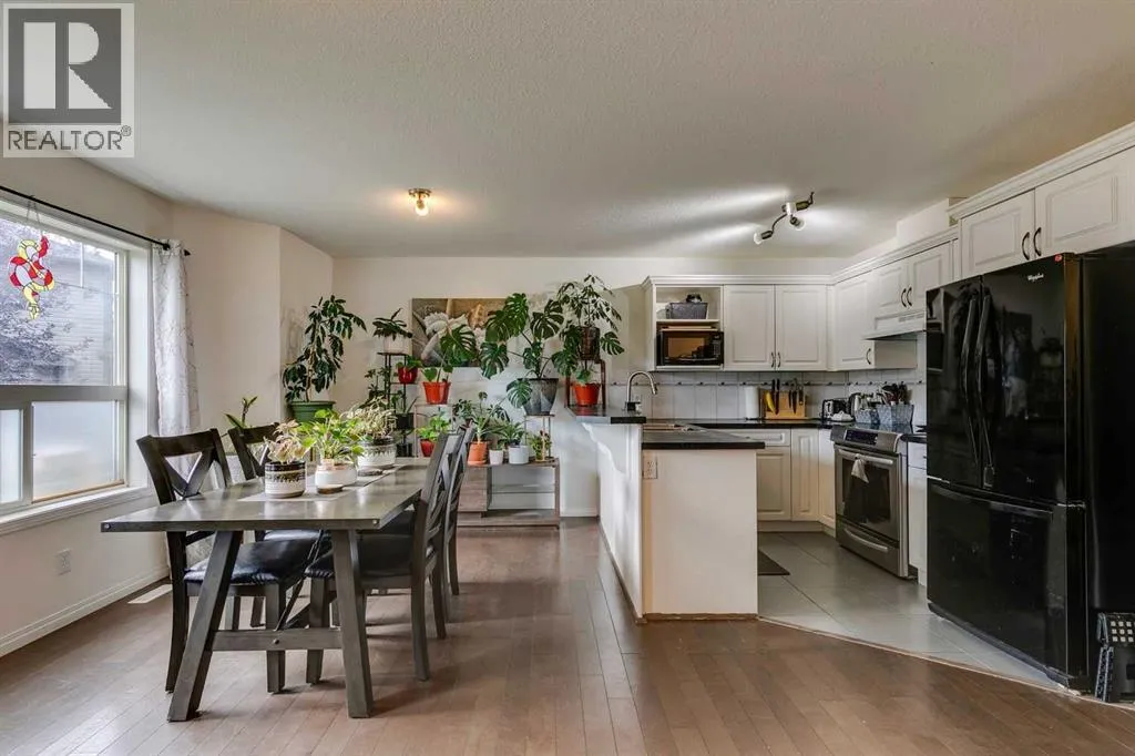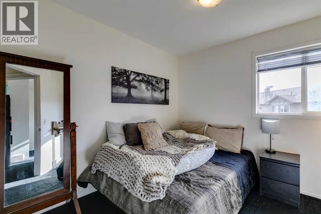 Ideally located close to schools and shopping, this 4 bedroom 3.5 bathroom townhouse is a great option for young families, first time buyers, or investors. The monthly fees are among the lowest of any townhome project in town, and the complex is well managed with a healthy reserve fund. The main floor has an open concept design with lots of natural light, and the kitchen features white cabinets and a raised breakfast bar with seating. Off the dining area is access to a small patio and BBQ space with a patch of grass that provides separation from the neighbors. The home is tucked into a quiet cul de sac with no through traffic, making it an excellent setting for kids. Upstairs are 3 bedrooms and 2 full bathrooms including a primary with double closets and a 3 piece ensuite. The fully finished lower level offers a large recreation room or TV area, a 4th bedroom with a good sized window, and another 4 piece bathroom with tile flooring. A single attached garage adds convenience and is especially welcome in the winter. (id:27476)