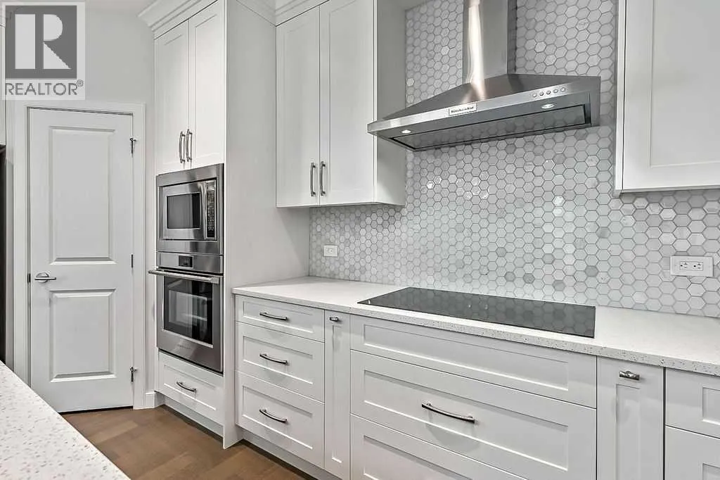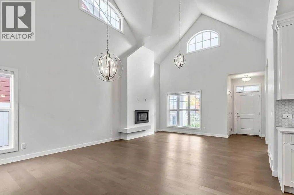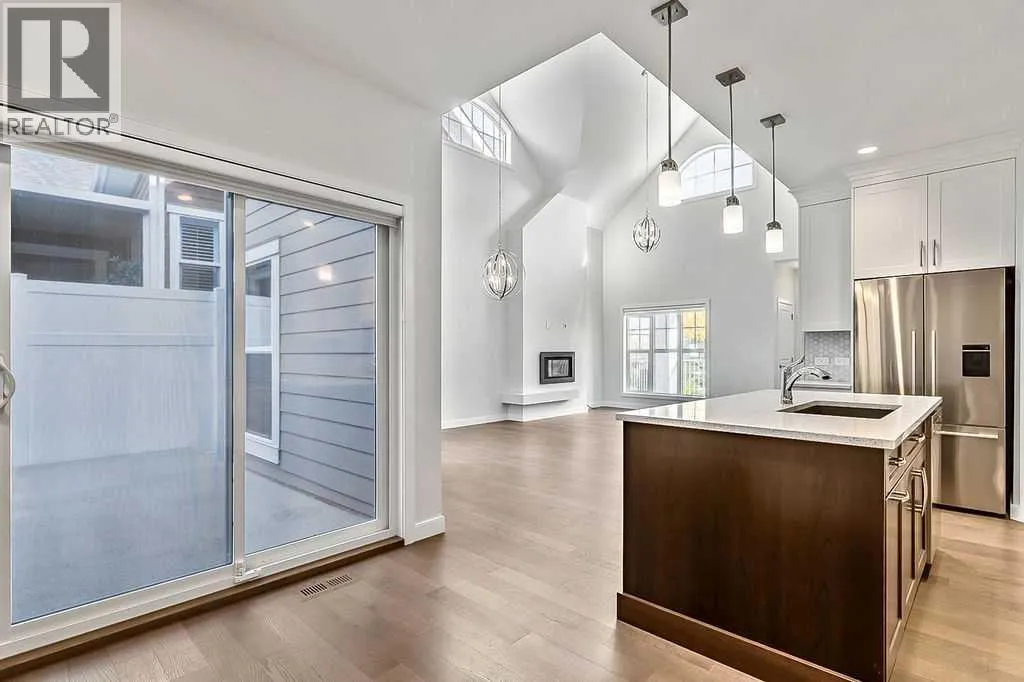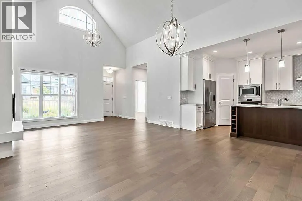 Looking for that perfect bungalow villa? Look no further! Located in the Parkhouses of Drake Landing, this is a stunning home built in the original phase of this complex by Lifestyle Homes. Although built in 2019, the home was not sold and occupied until September of 2022 after the project had gone into receivership. The complex is now complete and this is your chance to get into a stunning unit which shows like new way below the asking price of the new units which start at $715,900. Enter this immaculate home to beautiful hardwood, freshly painted walls, soaring vaulted ceiling, Hunter Douglas Silhouette blinds throughout, and you will think it is brand new! Extremely well taken care of with pride of ownership throughout. Beautiful location looking onto the courtyard with no houses behind. Open layout showcasing a stunning floor to ceiling feature gas fireplace in the living room, large windows with incredible natural light, dining room with access to the huge deck (17'x11') and access to the side yard with an apple tree, shrub, & plenty of space for you to add your personal touches. The chefs dream kitchen is unbelievable! Appliances include the very high end Fisher & Paykel built-in oven, refrigerator, microwave with convection, & cooktop. Rounding out that is the Miele dishwasher plus quartz countertops. Two spice pullouts on each side of the cooktop add to the functionality for the cook in the family! A corner pantry, breakfast nook & large island complete this stunning kitchen. The primary bedroom features a large ensuite with gorgeous o/s shower, 2 sinks, & walk-in closet. Another bedroom is at the front and could be used as an office if desired. The laundry room is large with Samsung appliances and leads to the double attached insulated garage. Lots of storage space & linen closet on the main floor as well. The basement has been left unspoiled for whatever the buyer desires and does include a rough-in bath. The vinyl front porch (15'9"x8'8") overlooks the courtyard and all the wild life that wander through including deer & rabbits. There is also a front garden just below the porch to enjoy and personalize. This is truly a community minded project with a gathering place where residents come together every Friday to visit around the firepit. This is also a great area to enjoy with visiting family & friends. Lots of visitor parking provided throughout the complex. A perfect lock & leave if you like to travel with landscaping & snow removal taken care of. Emergency ladders & escape hatches have been added for protection around the window wells and certified safety equipment is in place for safety of the occupants in the shower, etc. All the details taken care of so you can just move in and enjoy this friendly community spirited villa complex. A great opportunity to get in this area at a desirable price point. Close to all amenities including shopping, parks, golf, the incredible pathway system throughout Okotoks, and more. Come view today! (id:27476)