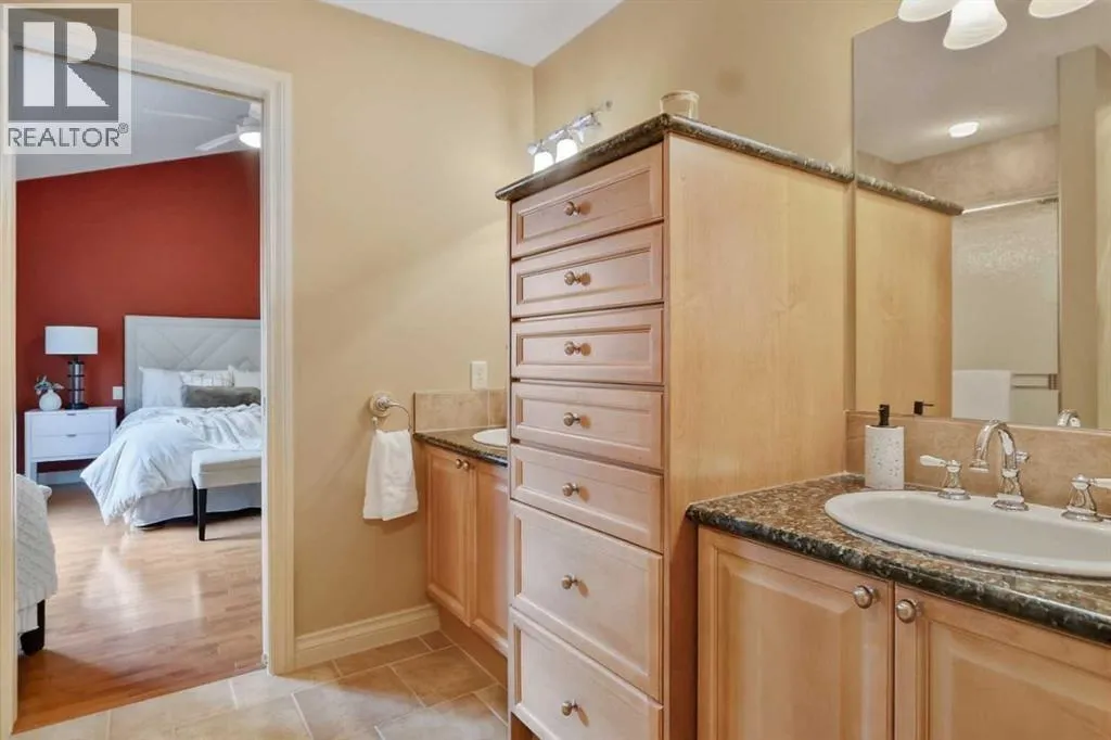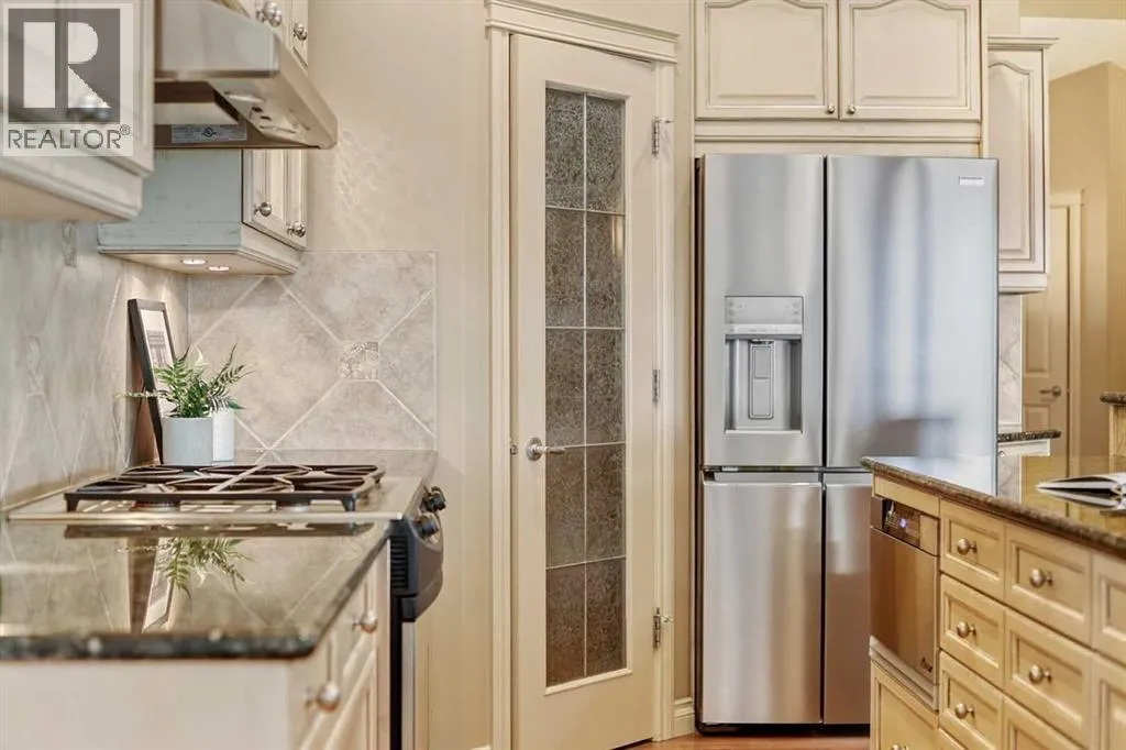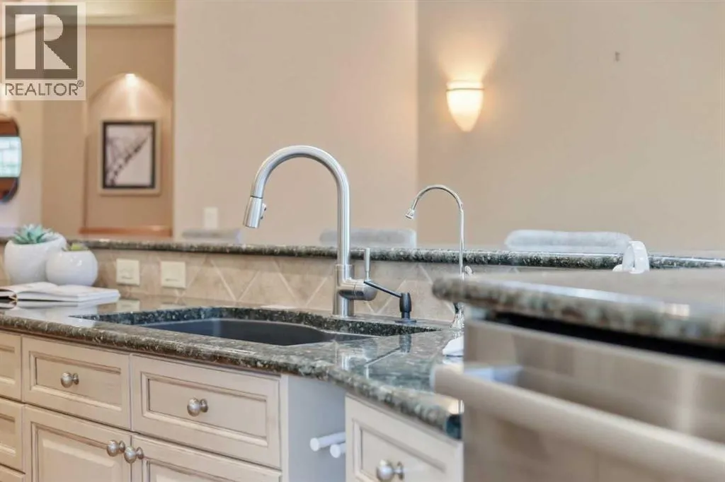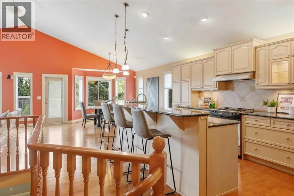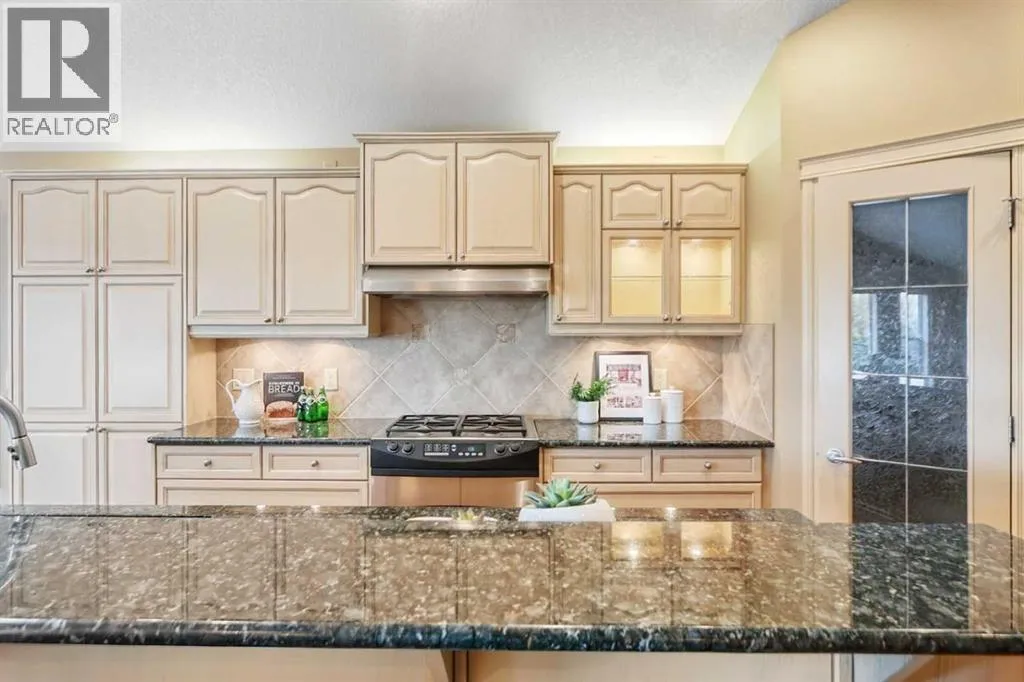 ** EXECUTIVE bungalow in Okotoks â âAir Ranchâ - with STUNNING mountain, lake and natural environmental reserve views! â AMAZING sunsets!! ** QUIET cul-de-sac location, beautiful south-west facing backyard with low maintenance landscaping and perimeter fencing. ** OVERSIZED, heated double garage with ceiling-mounted storage racks, several storage lockers, and closets. ** COZY front porch with poured concrete walks & patio stone accents. ** BRIGHT, spacious open foyer with direct access to garage and the 2 pce powder room. â- OFFICE/den at front door with vaulted ceilings & lots of natural light (could be a second bedroom â with adding a wardrobe or closet). ** PRIMARY bedroom & ensuite â an oversized room with vaulted ceilings, scenic views from the window â and featuring a 4 pce ensuite with double sinks, custom vanity and stand-up shower. -- PLUS, a large walk-in closet â PLUS a separate ensuite laundry room with extra shelving and washer / dryer. ** OPEN concept floor plan â SPACIOUS kitchen with loads of custom cabinets, QUARTZ counter tops, a corner pantry and a full complement of Stainless-steel appliances. ** an EXPANSIVE formal dining area with great flow into the living room that features VAULTED ceilings tons of natural light (GREAT views) a gas fireplace and patio door to the massive back deck. AMAZING views of the mountains, lake, and natural reserve areas. ** DEVELOPED walk-out basement with expansive family room / games room area â with direct access to large, covered patio area and private landscaped backyard. ** LARGE lower-level bedroom, a full 4 pce bathroom with tub/shower. ** ADDITIONAL hobby/storage//utility room â PLUS a massive storage utility room with loads of shelving. (GOOD potential to add another large bedroom if needed) ** A very functional & meticulously maintained Executive bungalow featuring hardwood floors, vaulted ceilings, Quartz counter tops, Stainless Steel appliances and so much more!! ** TRULY a rare property that needs to be seen!! ** CALL your favorite REALTOR â or come by our OPEN House â both Saturday & Sunday from 1:00 pm -to- 4:30 pm. ** COME and CHECK-it-OUT! *** NOTE: this is a âstand aloneâ â single family âBareland Condoâ *** (id:27476)