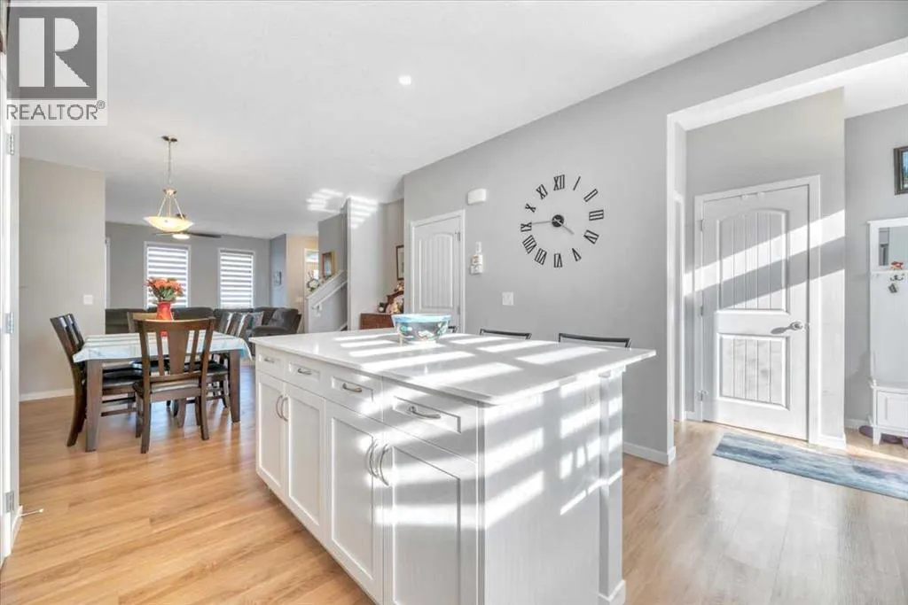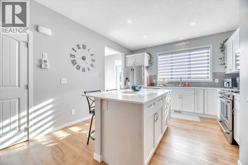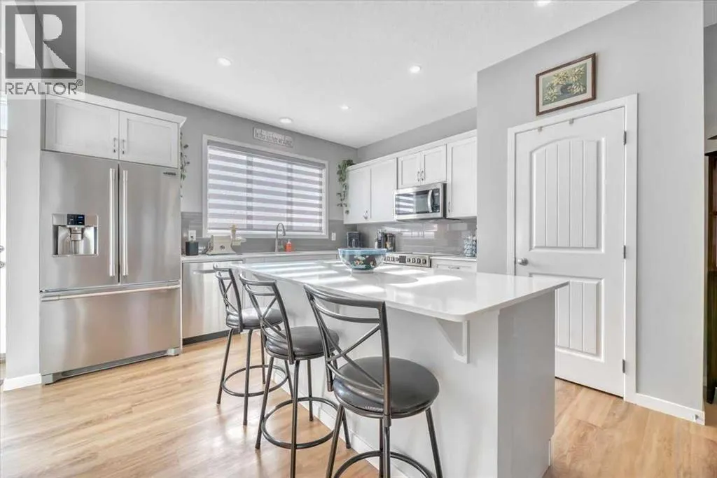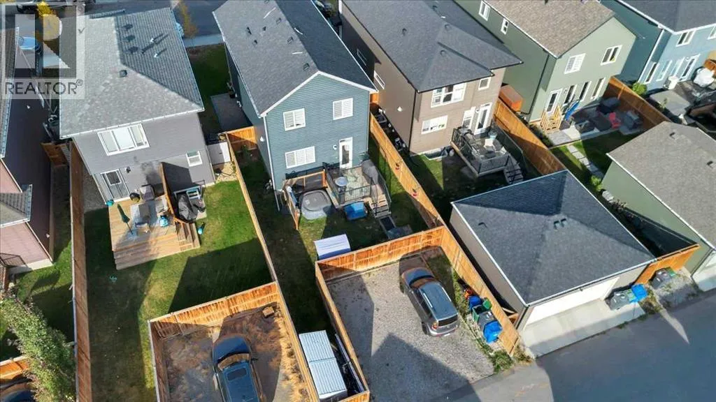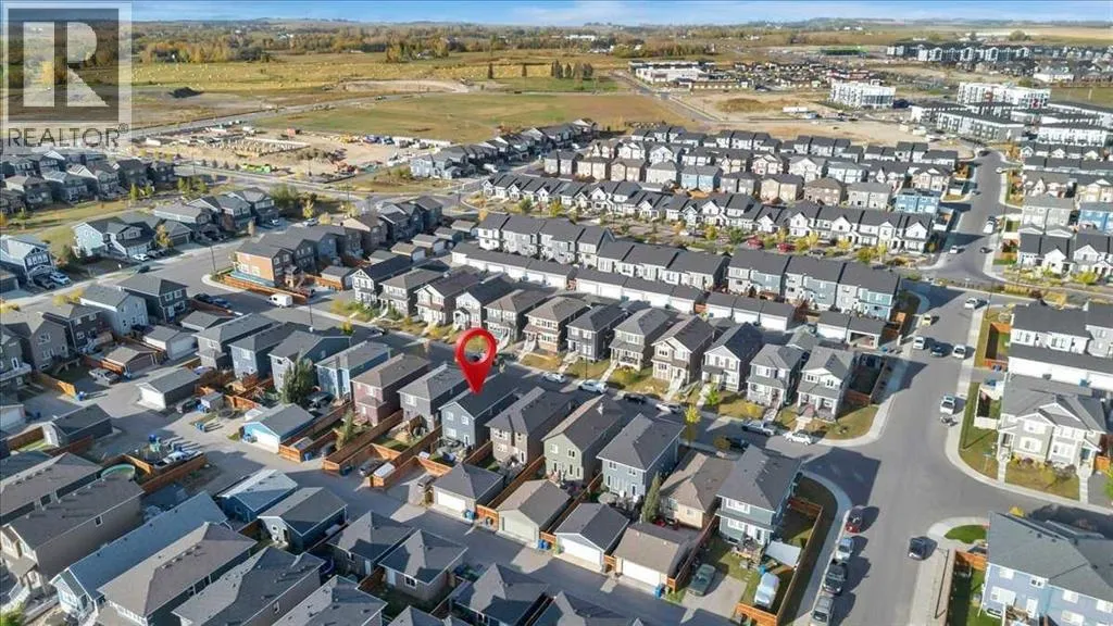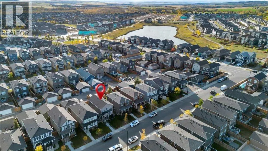 This is a warm and bright home at the doorstep of the Rockies in the sought-after Dâarcy Ranch community. The open but sectioned layout allows you to maximize and personalize the space. Situated on a wide lot with mountain views from the two bedrooms. The south-facing backyard and large windows provide all-day sun and natural light throughout.You are invited in by the cozy, covered porch and foyer, to the big and open main floor with 9-foot ceilings, living space, dining room, kitchen with a pantry, front and back closets, and tucked-away half-bath and mudroom. Sparkling quartz countertops, modern cabinets, and high-end stainless steel appliances create a clean and attractive kitchen space with a central oversized island. Upstairs is a large primary bedroom with a double-vanity ensuite and walk-in closet. The convenient upstairs laundry space and 4-piece bath separate the primary from well-sized second and third bedrooms. The basement features 9-foot ceilings, bathroom rough-in, egress window, and out of the way utility space. At the back of the home you will find a nice-sized deck, private yard, and large double parking space accessed from a paved alley. Upgrades include kitchen appliances, window coverings (blackout in bedrooms), luxury vinyl flooring, and fencing.D'arcy Ranch offers more than a better lifestyle. This community is the first to have a safe-route network separating pedestrian travel from main roads. Nearby are multiple highly rated schools, including a private school now taking applications, and a high school with well-recognized French, arts, and trades programs. There is direct access to HWY 2A to beat the rush to Calgary. The new and expansive shopping district is within walking distance. The scenic walking trail around the pond, free seasonal ice rink, multiple playgrounds, fitness parks, and new pickle-ball courts are sure to keep you busy. Not to mention the 18-hole D'acry Ranch Golf Club out your back door. (id:27476)