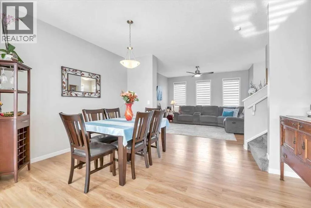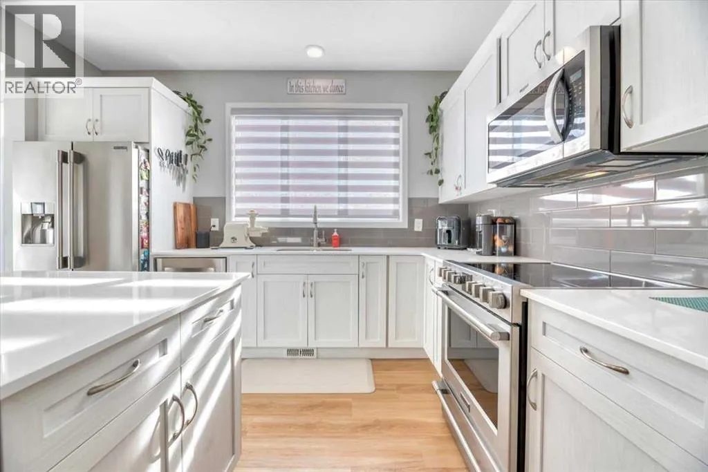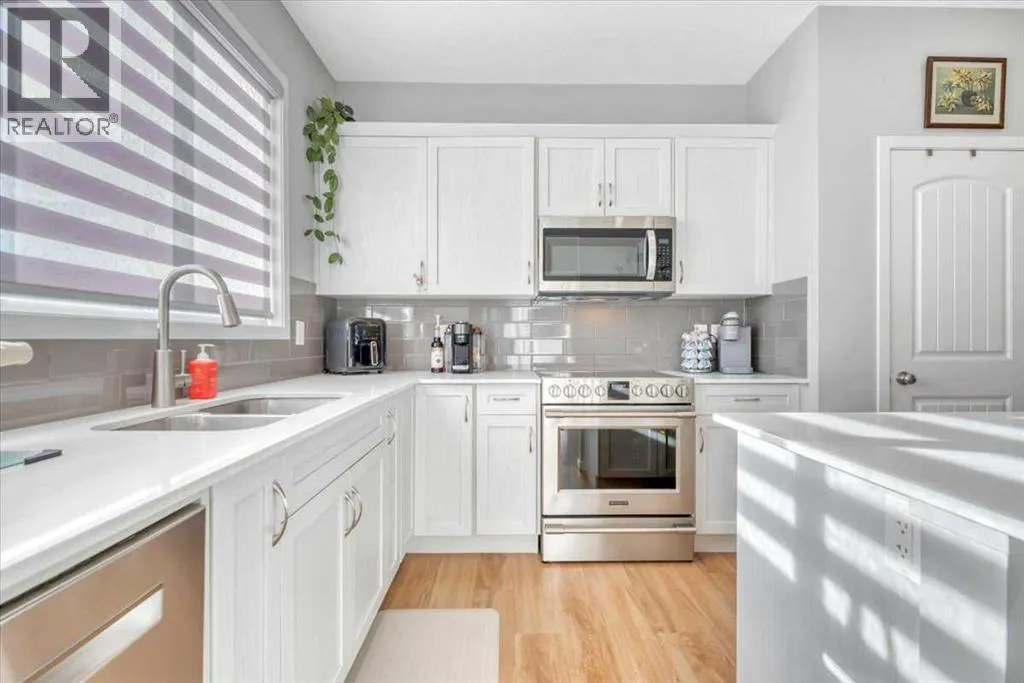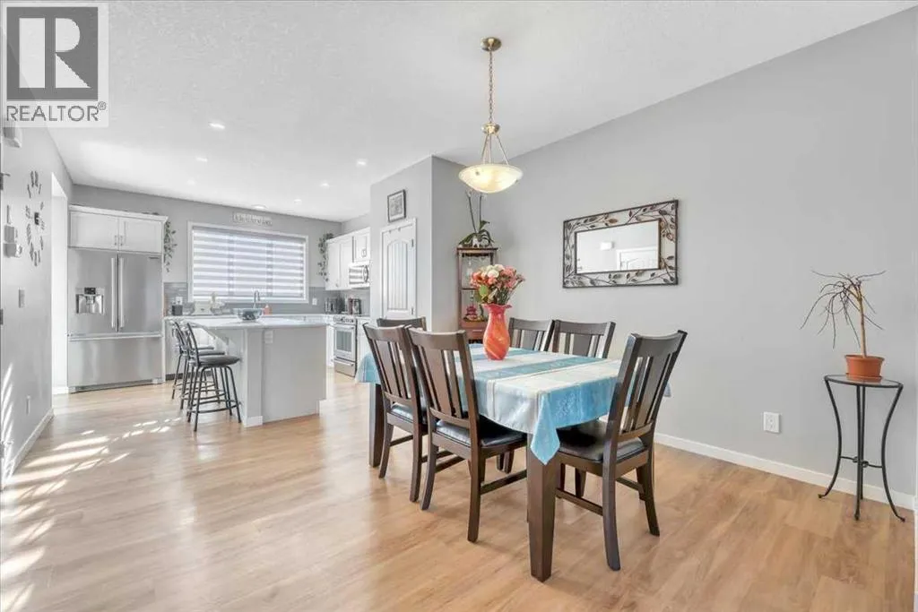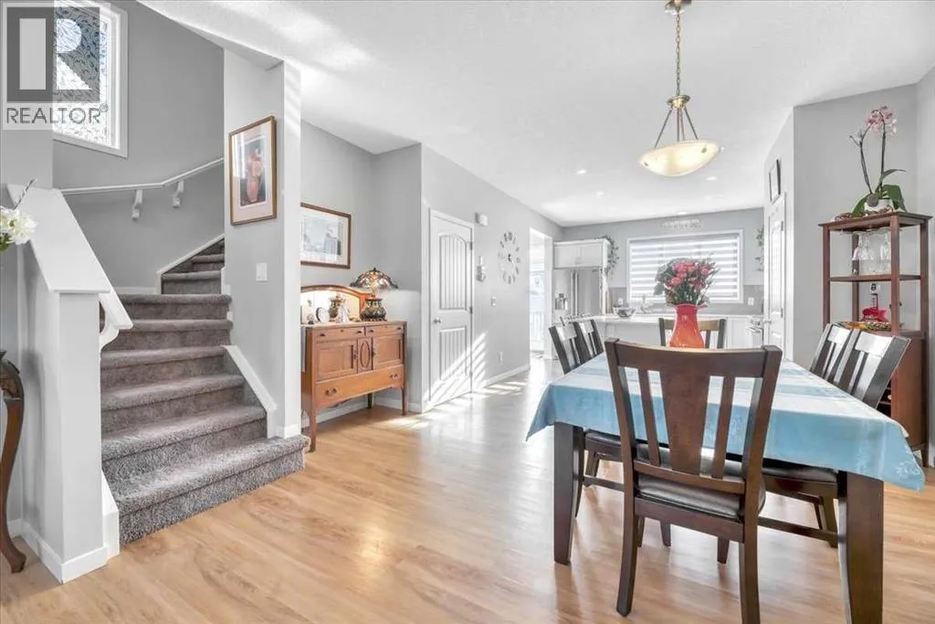 This is a warm and bright home at the doorstep of the Rockies in the sought-after Dâarcy Ranch community. The open but sectioned layout allows you to maximize and personalize the space. Situated on a wide lot with mountain views from the two bedrooms. The south-facing backyard and large windows provide all-day sun and natural light throughout.You are invited in by the cozy, covered porch and foyer, to the big and open main floor with 9-foot ceilings, living space, dining room, kitchen with a pantry, front and back closets, and tucked-away half-bath and mudroom. Sparkling quartz countertops, modern cabinets, and high-end stainless steel appliances create a clean and attractive kitchen space with a central oversized island. Upstairs is a large primary bedroom with a double-vanity ensuite and walk-in closet. The convenient upstairs laundry space and 4-piece bath separate the primary from well-sized second and third bedrooms. The basement features 9-foot ceilings, bathroom rough-in, egress window, and out of the way utility space. At the back of the home you will find a nice-sized deck, private yard, and large double parking space accessed from a paved alley. Upgrades include kitchen appliances, window coverings (blackout in bedrooms), luxury vinyl flooring, and fencing.D'arcy Ranch offers more than a better lifestyle. This community is the first to have a safe-route network separating pedestrian travel from main roads. Nearby are multiple highly rated schools, including a private school now taking applications, and a high school with well-recognized French, arts, and trades programs. There is direct access to HWY 2A to beat the rush to Calgary. The new and expansive shopping district is within walking distance. The scenic walking trail around the pond, free seasonal ice rink, multiple playgrounds, fitness parks, and new pickle-ball courts are sure to keep you busy. Not to mention the 18-hole D'acry Ranch Golf Club out your back door. (id:27476)