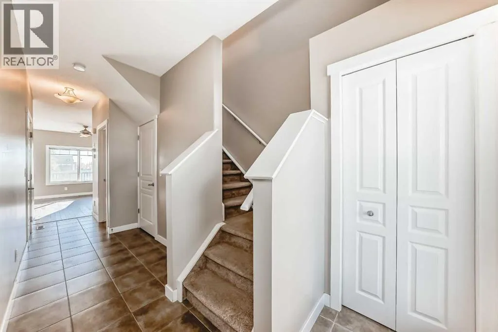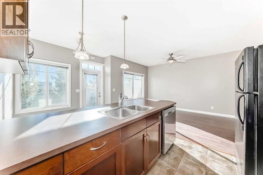 Amazing location â walk to Costco, GoodLife, Home Depot, Winners, schools, restaurants, and scenic walking paths, with easy highway access! This FRESHLY PAINTED this townhouse features NEW FLOORING throughout. The bright, open-concept main floor offers a spacious living room, kitchen with eating bar, dining area, and a convenient 2-piece bath. Step out to the east-facing deck with a gas BBQ hookup, perfect for morning coffee or evening relaxation. Upstairs includes a large primary bedroom with walk-in closet and 4-piece ensuite, plus two additional bedrooms, upper laundry, and a 4-piece main bath. The undeveloped basement has a bathroom rough-in and room to grow. Complete with an oversized single attached garage, driveway parking, and visitor stalls nearby, this home is perfect for first-time buyers or downsizers alike! (id:27476)