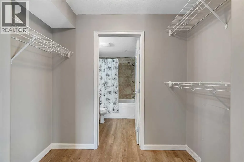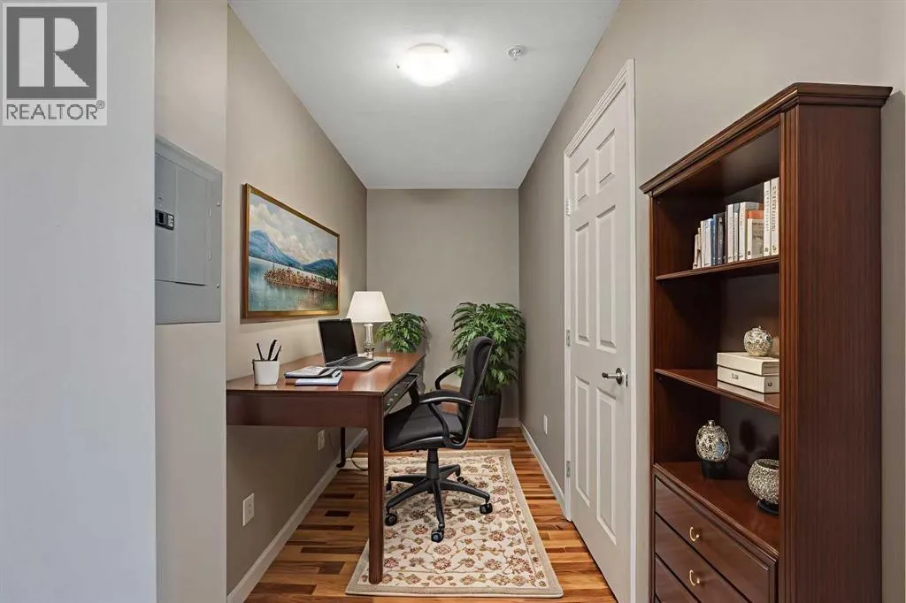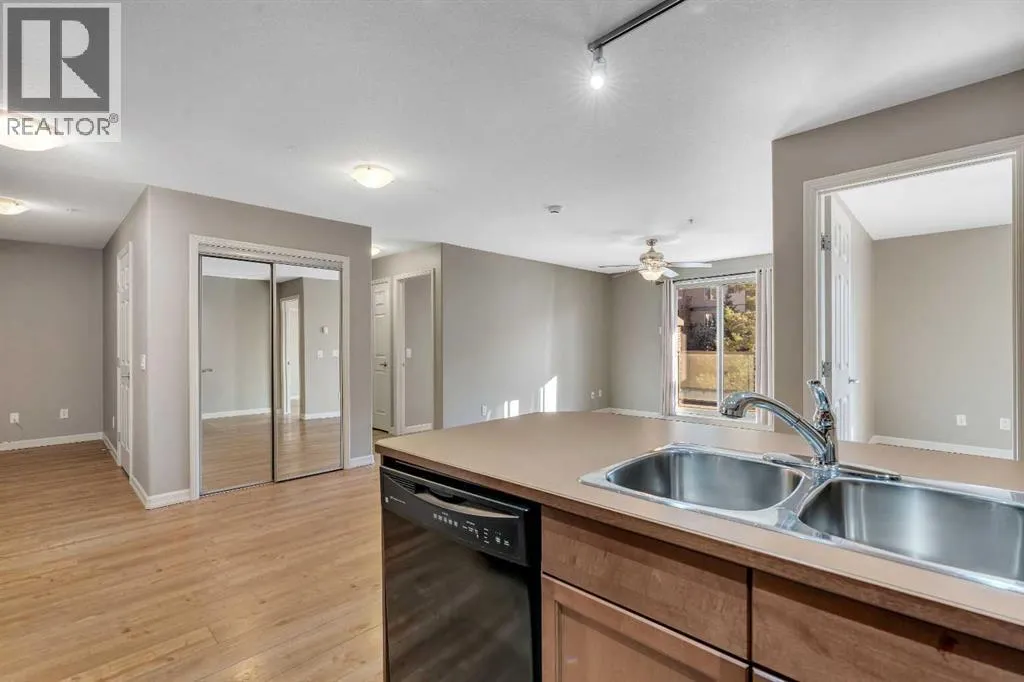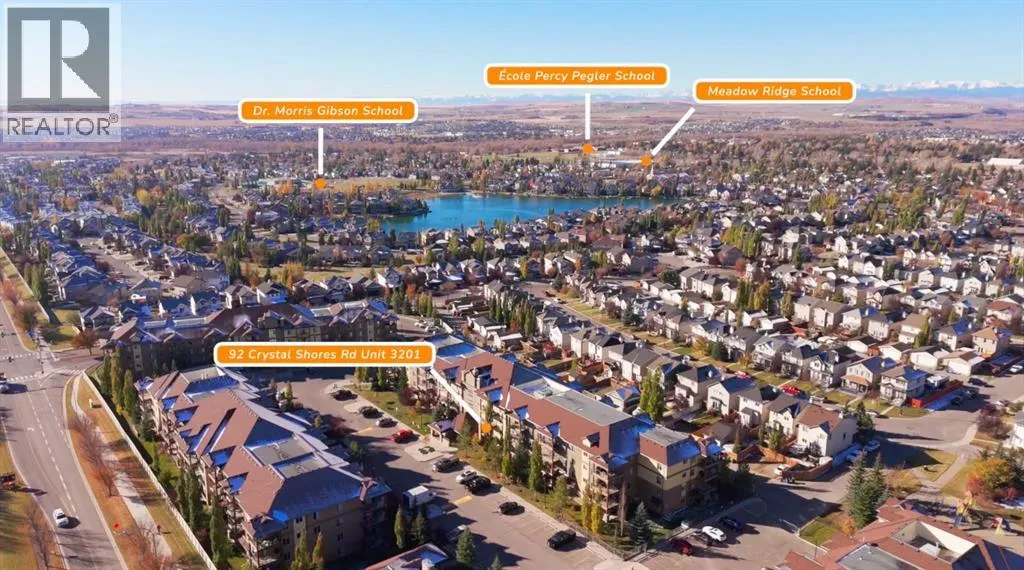 LAKE ACCESS | RESORT-STYLE AMENITIES | TWO PARKING STALLS | MOVE-IN READY | 2 BED/BATH + DEN | Welcome to the Mesa condos in Crystal Shores, where low-maintenance living meets year-round lake access and resort-style amenities. This beautifully updated second-floor end unit offers 908 square feet of thoughtfully designed living space with a bright, open layout and plenty of natural light throughout. This ideal floorplan was created for both privacy and functionality, featuring two spacious bedrooms, two full bathrooms, a den, and in-suite laundry â making it an excellent fit for almost anyone. The kitchen offers ample counter space with loads of cabinetry, a large pantry, sleek black appliances, and a sizable breakfast bar. The open layout allows plenty of room for large living room furniture and a full-sized dining set. A convenient den or flex space nearby makes an ideal home office or reading nook, while the dining and living area flows seamlessly onto a large covered balcony with a gas BBQ hookup, perfect for enjoying a morning coffee or glass of wine. The large primary suite features a walk-through closet, a private 4-piece ensuite, and a large east-facing window. The second bedroom is equally generous and has access to a full bathroom and ample closet space. Additional features include updated lighting, two linen closets, and window coverings throughout. All flooring was replaced in 2023 with luxury vinyl plank, and the home has been very well maintained since, offering a truly move-in-ready experience. This unit comes with two titled parking stalls: one surface stall just steps from the entrance and one heated underground stall that includes an adjacent storage cage. Living at Mesa means enjoying more than just your home â itâs a lifestyle. Residents have access to a private fitness centre, hot tub, sauna, games room with a pool table, and a large social space with a kitchen for hosting gatherings, as well as an on-site car wash bay. As part of the Crystal Sho res community, youâll also enjoy exclusive lake privileges with swimming, paddleboarding, beach volleyball, skating in the winter and a community golf course. Perfectly situated on the north side of Okotoks, this location offers quick access to Calgary while providing the peaceful, lakeside atmosphere that makes Crystal Shores one of the most desirable communities in town. Book your private showing today! (id:27476)