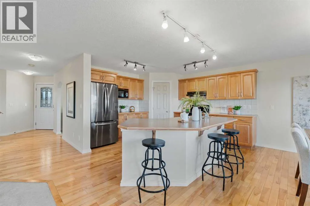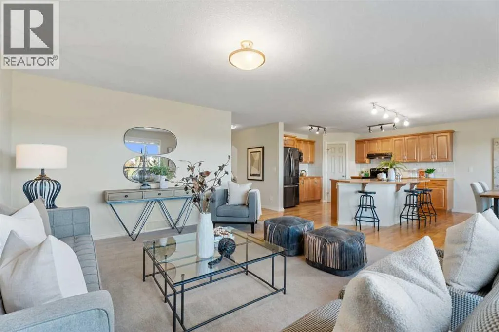 Nestled in the quiet, mature community of Cimarron Park, this beautiful five-bedroom walkout home sits on a peaceful cul-de-sac backing onto open fields with a playground in the distance. The location is ideal â you can watch your kids play from the kitchen window while enjoying the tranquility of your surroundings.Inside, the home offers an abundance of space and comfort. The main floor features a dedicated office, a laundry room/powder room, and a bright, open kitchen perfect for entertaining. Large windows capture stunning views of north Okotoks and the nearby park and creek bridge. Upstairs are three generous bedrooms, including a primary suite with a 4-piece ensuite, plus another full bathroom. At the top of the stairs, youâll find a versatile bonus space â perfect for kids to do homework, enjoy quiet reading time, or set up a cozy study nook.The walkout basement adds two more spacious bedrooms, a third full 4-piece bath, and plenty of room for family activities or guests.The heated double garage provides year-round convenience, while the meticulously landscaped yard is truly a private retreat. Extensive retaining walls in both the front and back yards add function and beauty, and the backyard offers space for kids to play or adults to unwind.Located close to two Catholic schools (elementary and junior high), the public high school, and excellent shopping and dining, this home combines the best of convenience and serenity. Lots like this are rare in Okotoksâa spacious walkout with incredible views, privacy, and room for the whole family.Whether youâre relaxing on the deck, entertaining in the kitchen, or watching the sunset over the fields, youâll love calling 35 Cimarron Park Green home. (id:27476)
