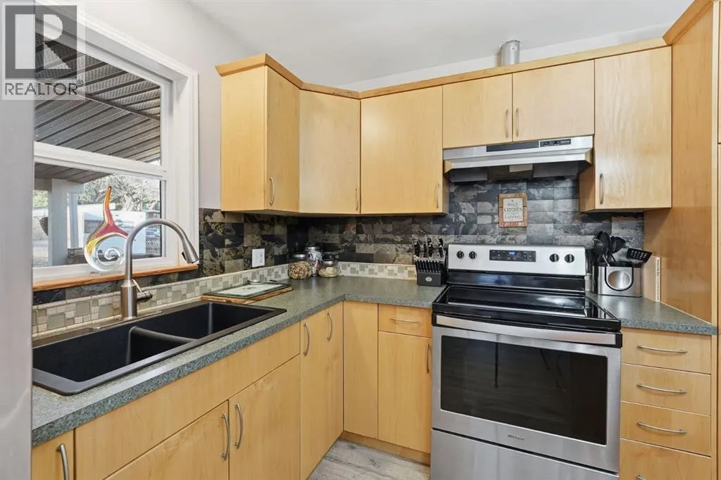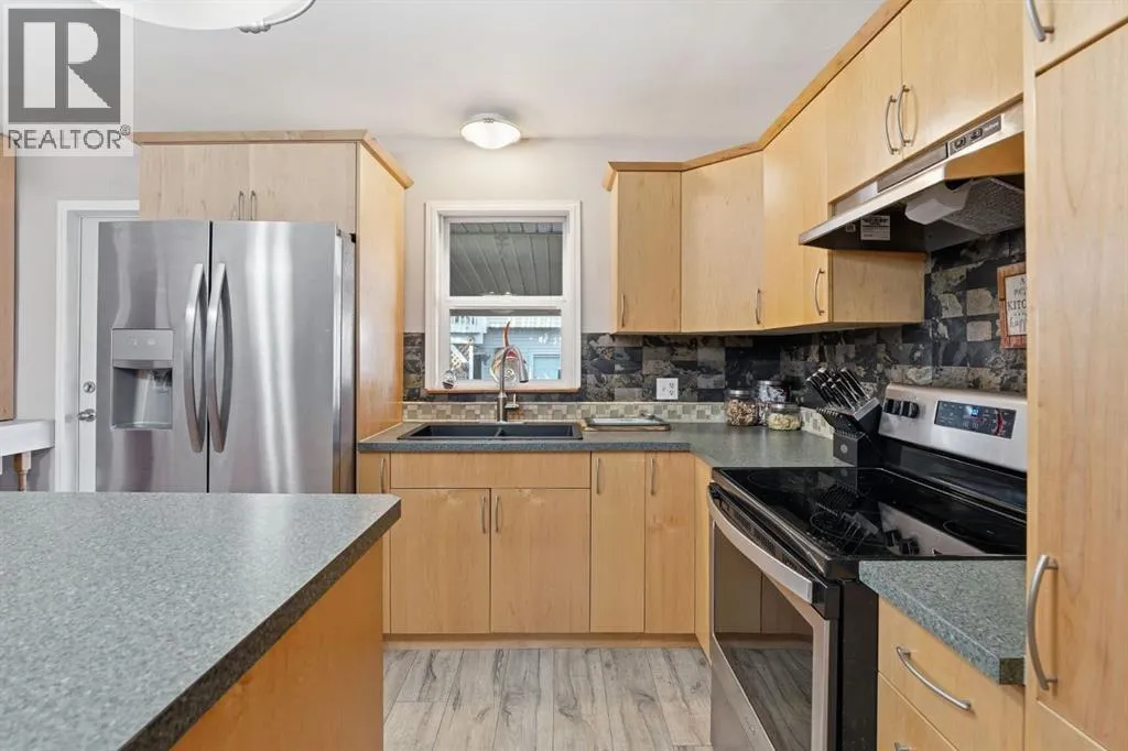 Welcome to 74 McRae Street in the heart of downtown Okotoks! This rare property offers exceptional flexibility with Downtown District zoning and a fully legal suite above the detached garage. The main home features on main floor, 2 bedrooms and 1 bath with a bright open-concept layout, a functional kitchen, and plenty of natural light throughout. The fully finished basement adds 2 more bedrooms and full bath plus a cozy wood stove to keep you toasty all winter, with potential for a separate entrance allowing for a future suite (subject to approvals). Enjoy the covered rear deck overlooking a spacious yard with room for an RV or extra parking. Above the heated oversized detached garage sits a fully legal secondary suite, complete with its own private entrance, full kitchen, and living area, laundry and a lovely balcony overlooking to the South to enjoy the sunshine year round. Perfect for extended family, guests, or as a reliable mortgage helper, this suite adds exceptional versatility to the property.The Downtown District zoning offers even more opportunity, giving homeowners the flexibility to live, rent, or operate a small home-based business. Enjoy the walkable lifestyle that comes with being steps away from Okotoksâ vibrant shops, restaurants, and local amenities. This is THE street to be buying on as we are seeing more and more businesses popping up along here! (id:27476)