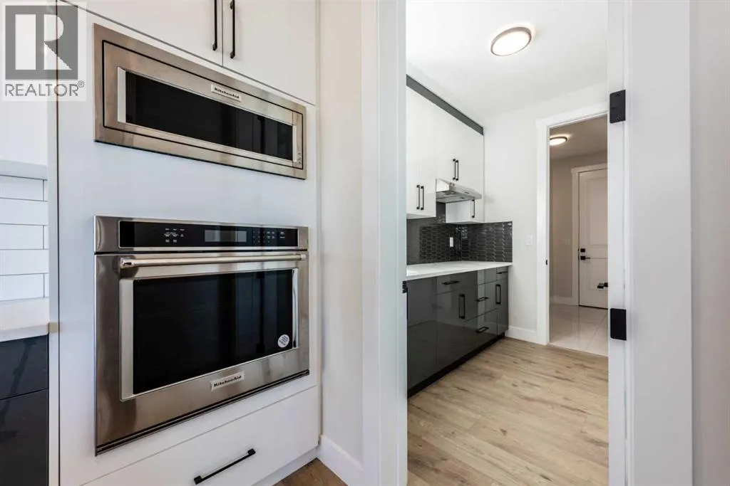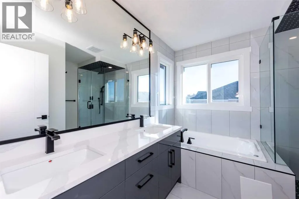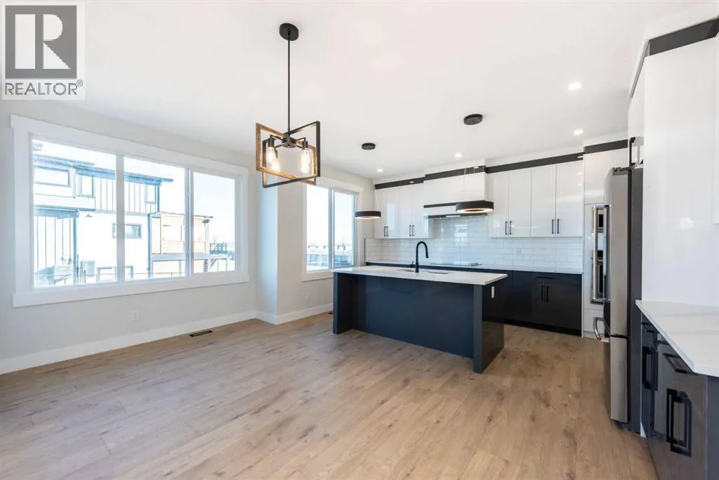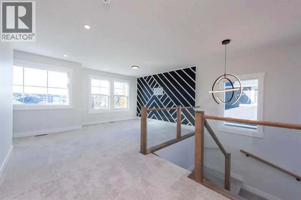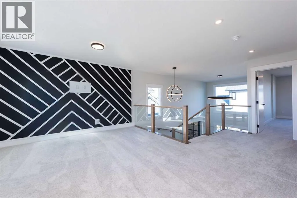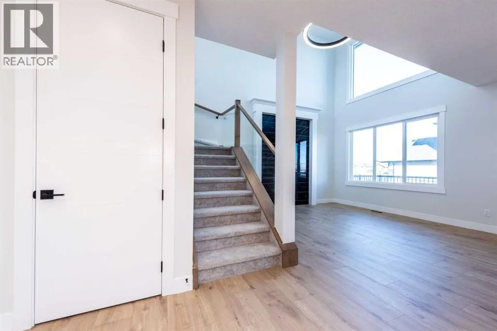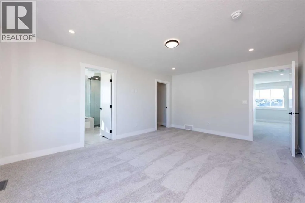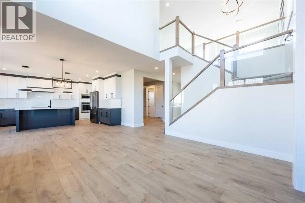 Welcome to this stunning brand-new detached home in Okotoks, ideally located near Costco and other amenities. This beautifully upgraded residence features a grand foyer with elegant tiles, a formal dining room, a den, and 8-foot doors throughout the main floor. The high ceiling living room enhances the spacious feel with cozy fireplace and media niche, while the engineered hardwood flooring adds a luxurious touch. A well-designed mudroom with closets provides ample storage, and a full washroom with a standing shower is conveniently located on the main floor. The highly upgraded kitchen is a chefâs dream, featuring a large island, an ice and water fridge, an electric cooktop, a built-in microwave, and a built-in oven with upgraded backsplash. A walkthrough pantry with addition cabinetry. Upstairs, you will find four spacious bedrooms, including two primary bedrooms, one with a four-piece ensuite and the other with a five-piece ensuite, along with an additional main bathroom. A loft provides extra living space, and the laundry room adds convenience. The upgraded carpet and sleek glass railings throughout enhance the modern aesthetic. Outside, the home boasts a stucco exterior, a huge backyard, and a big deck with BBQ Gas line perfect for outdoor entertaining. A separate side entry leads to the unfinished basement, offering endless possibilities for customization. This home is an incredible value in a prime location. (id:27476)
