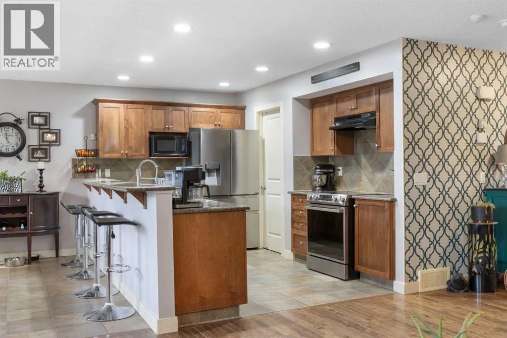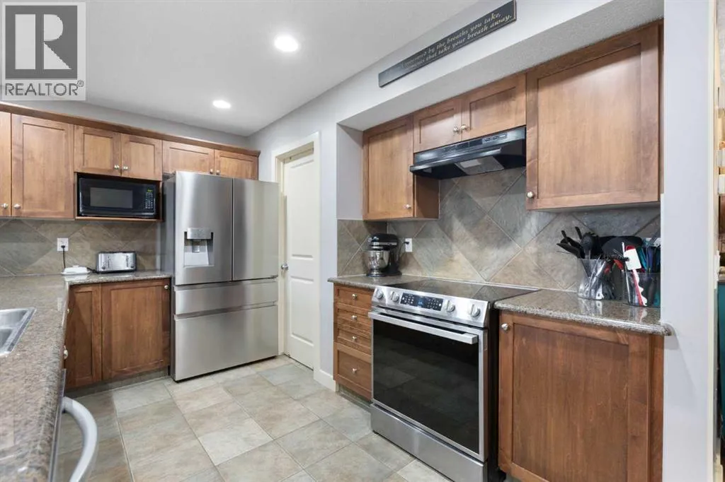 Discover this charming 5-bedroom family home, a perfect blend of character, style, and warmth. Not your typical white-walled house, it exudes personality with moody tones and unique details that make it stand out. Boasting almost 2,200 sqft above grade, this spacious residence offers plenty of room for the whole family. The beautifully appointed kitchen seamlessly connects to the dining and living areas, creating an ideal space for gatherings. Featuring 3.5 bathrooms, there's comfort and convenience throughout. The fantastic backyard backs onto a serene green space, providing a private outdoor retreat. Located in a family-friendly neighbourhood, this home is within walking distance of a school, a strip mall, and shopping, and offers easy access to the main road in Okotoks. Original owners have cared for this special propertyâschedule your viewing today! (id:27476)