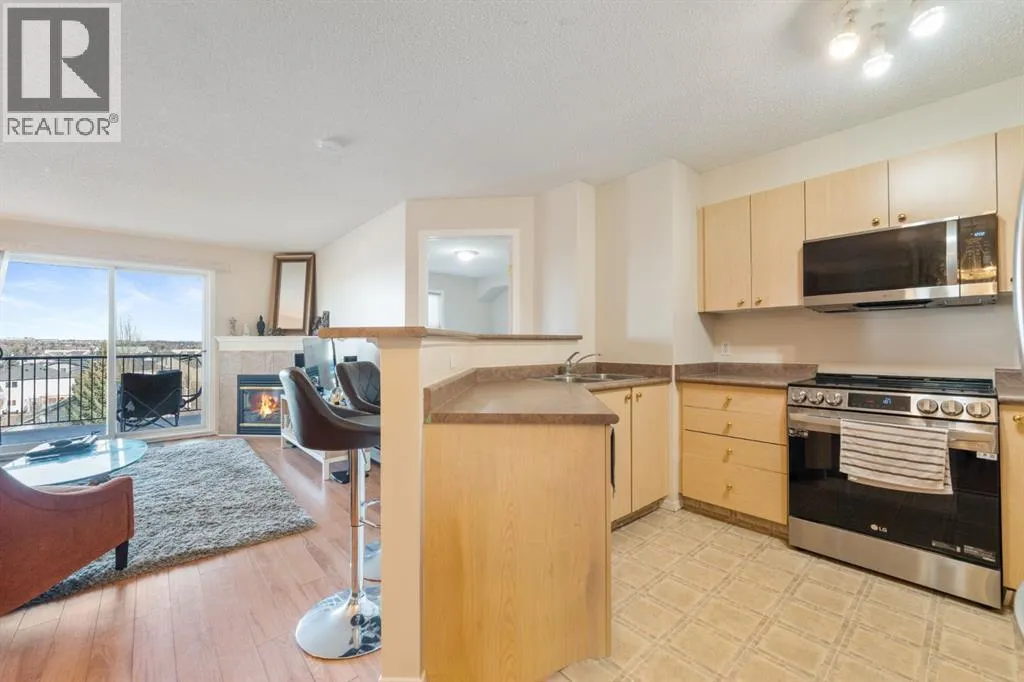 Condo fees that include EVERYTHINGâheat, water, electricity, âplus brand new appliances (including washer, dryer, and all kitchen appliances) and fresh premium paint done just 6 months ago⦠all at a price that is simply unbeatable!Welcome to this beautifully maintained 2-bedroom, 846 sq. ft. top-floor suiteâa perfect choice for first-time buyers, down sizers, or investors. Located in the highly desirable community of Cimarron Common, youâre just steps away from shops, restaurants, health and wellness services, parks, and pathways. Truly, you wonât even need a car.Inside, youâre greeted by a bright and spacious living room featuring a cozy corner gas fireplace and sliding patio doors leading to a large private deckâperfect for BBQs, morning coffee, or entertaining. The open-concept kitchen flows seamlessly into the living and dining areas and includes a convenient breakfast bar for casual seating and hosting.The primary bedroom offers a walk-through closet that connects to its own private 4-piece ensuite. The second bedroom and an additional 4-piece bathroom are ideally positioned near the entrance, providing great privacy for guests or family members.Enjoy the convenience of in-suite laundry and extra storage, making day-to-day living incredibly practical.Cimarron Common is known for its welcoming community feel, unbeatable walkability, and low-maintenance lifestyle. With all utilities included and major upgrades already taken care of, this home offers exceptional value in a vibrant locationâat a price thatâs hard to beat. (id:27476)