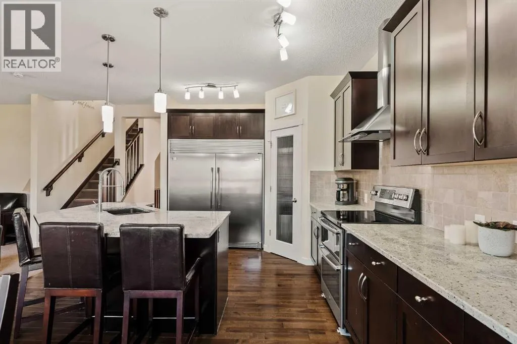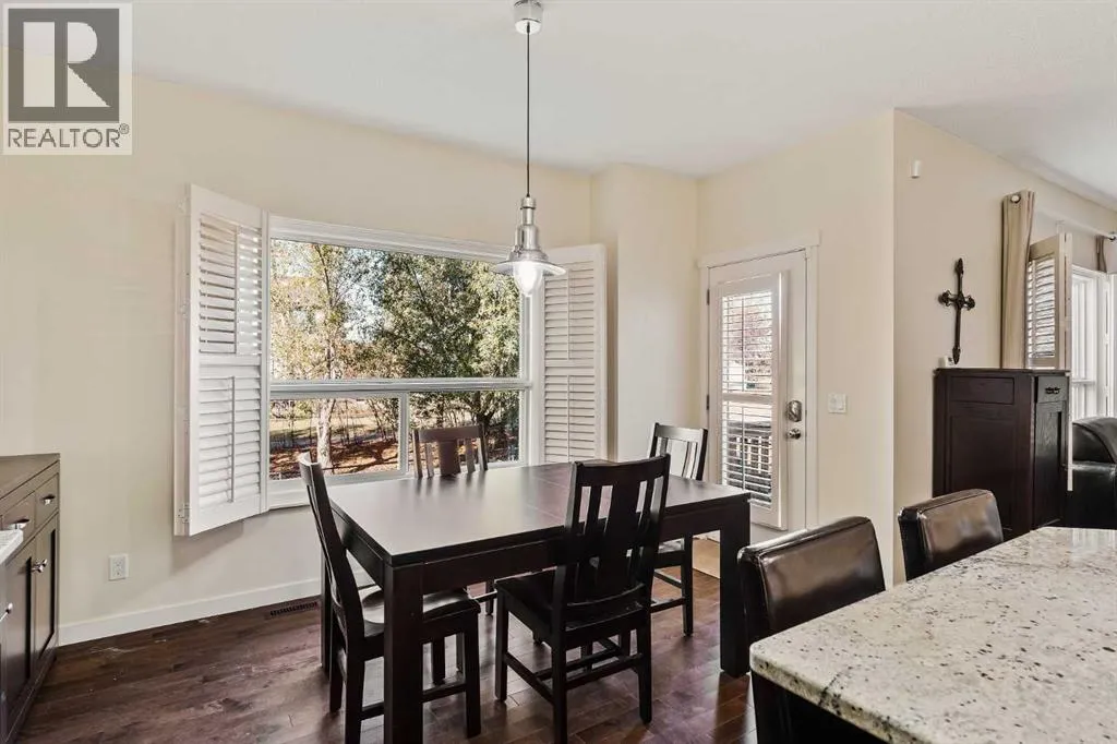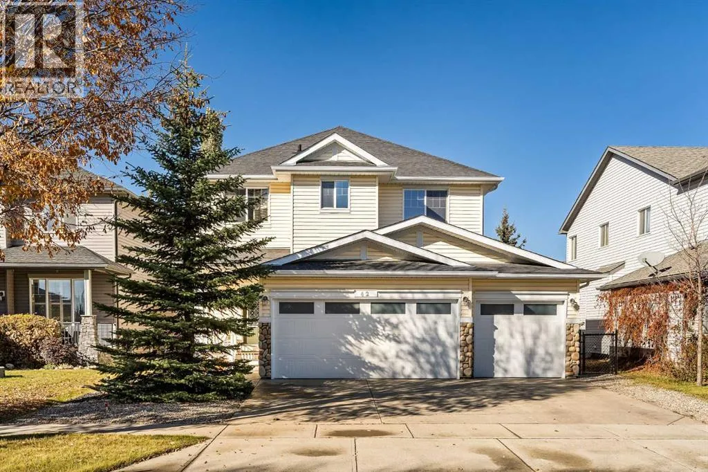 Proudly presenting 42 Drake Landing Drive. Perfectly situated on a peaceful green space, this SOLID AND EXCEPTIONALLY WELL MAINTAINED FAMILY HOME with 4-bedrooms up offers over 3680 SF of living space blending thoughtful design, quality upgrades, and everyday comfort. The spacious foyer and lovely dining room with coffered ceiling delivers an impressive introduction to the inviting main floor. Rich maple flooring adds warmth while large windows fill the home with natural light. The kitchen is both stylish and functional featuring maple cabinetry, granite countertops, an expansive island with seating for 4, walk-in pantry, upgraded stainless steel appliances (including an integrated side-by-side refrigerator / freezer, and a stove with upper and lower ovens), and an eating nook overlooking the pretty park-like setting. A charming fireplace, plantation shutters, and year-round views of the green space elevate the ambiance of the relaxed living area. Completing the pristine main floor is a dedicated home office with built-in bookcases, convenient powder room, and a full-size mudroom. The bright upper level boasts 4 spacious bedrooms. The quiet primary suite overlooks the treetops and includes a large walk-in closet and ensuite with deep jetted tub, separate shower, and over-sized vanity. The 3 secondary bedrooms boast excellent storage and large windows with custom shutters while a family bathroom features an extended vanity with double sinks, additional storage, and sought-after 2nd floor laundry - further enhancing these comfortable retreats. Rounding off the upper level is a enjoyable bonus room perfect for spending family time together. The lower levelâs open-concept design offers flexible space for a family room, home gym, games area with bar, or a teenage hangout. A 4th bathroom and large utility room complete this 1150 SF of developed space. The homeâs charming front porch and low-maintenance landscaping add to the exterior curb appeal while the back deck and y ard offer a tranquil sanctuary for family barbecues, watching the kids at play or simply unwinding while overlooking the green space oasis. Other notable highlights and upgrades of this family gem include 1) TRIPLE Attached Garage with upgraded garage doors and garage door openers (2021), 2) Air Conditioning, 3) Custom Shed with Marine-rated Floors (2023), 4) R50 Insulation, 5) Inground Sprinklers), 6) Worf 1.5â composite board front porch with commercial rated Fortress railing (2023), and 7) New Washer and Dryer (2023). Please see the full list of upgrades and improvements in the supplements. Exceptionally located across from the Drake Landing soccer field, pathways, and playground - and close to schools, shopping, transit, and the off-leash dog park, this special property truly offers it all â an enviable green space location, pride of ownership, and a connection to family. (id:27476)
