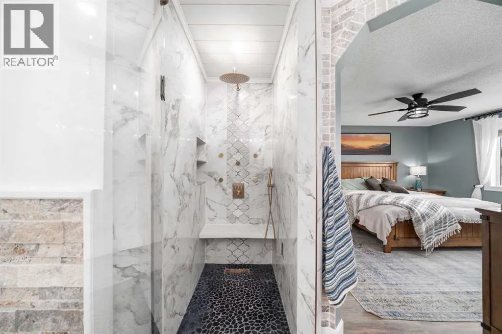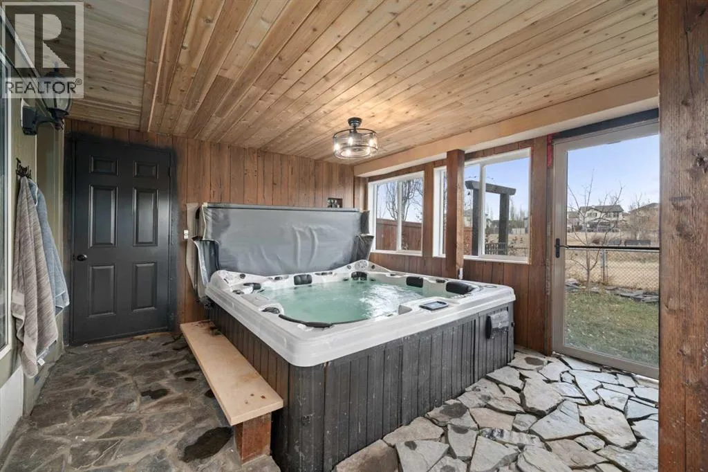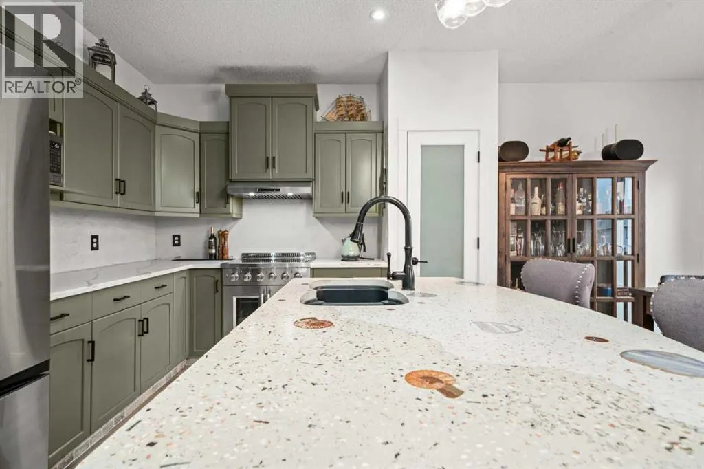 Stunning walkout home with the kind of upgrades that would normally only be in $1 million+ homes. This is not your cookie cutter type of upgrades, they include custom countertop on the island, gorgeous travertine in ensuite, micro cement bathroom with custom bench, Forno gas stove, Lincoln solid doors and the list continues.....You need to view to appreciate! This 5 bedroom home really wows from the moment you walk in with beautiful flooring, 6" baseboards, gorgeous light fixtures, solid doors etc. Relax in the spacious living room with its gorgeous stacked stone fireplace, prepare a meal in the stunning kitchen with custom waterfall island with gorgeous inlaid shells and fossils. Entertain in the dining room or step out onto the large low maintenance deck and enjoy the view over your yard and the greenspace beyond! Upstairs you will find 5 bedrooms. The spacious master has a walk in closet with built in shelving and benefits from a spa like ensuite with Travertine tile, a stunning tiled shower with body jets, soaker tub, custom mirrors, you will be impressed! The 5 piece family bathroom has quartz counters and has been renovated. Completing this level is a laundry. In the fully finished walkout basement is a huge family room with electric fireplace, a beautiful micro cement bathroom (fully waterproofed) with custom beach and feature sink. Step out into your enclosed cedar hot tub room and relax in the 10 person hot tub whilst enjoying your views to the yard. The large yard has 17ft x 8ft 6" shed, raised garden beds, fruit bushes and overlooks the greenspace. Step out of your gate onto the greenspace and walking path system and head either towards shopping or the river. Did I mention that the garage is heated...Great for the coming winter! The words in this write up do not do this home justice and you should book a showing and come and see for yourself! View 3D/Multi Media/Virtual Tour! (id:27476)