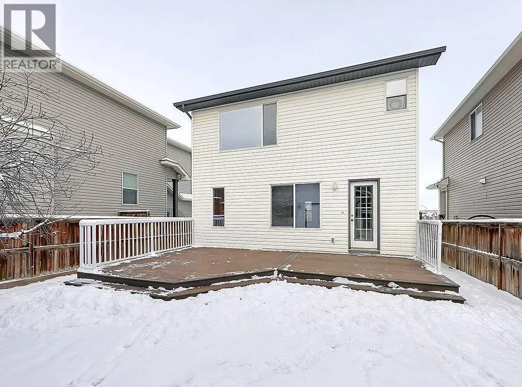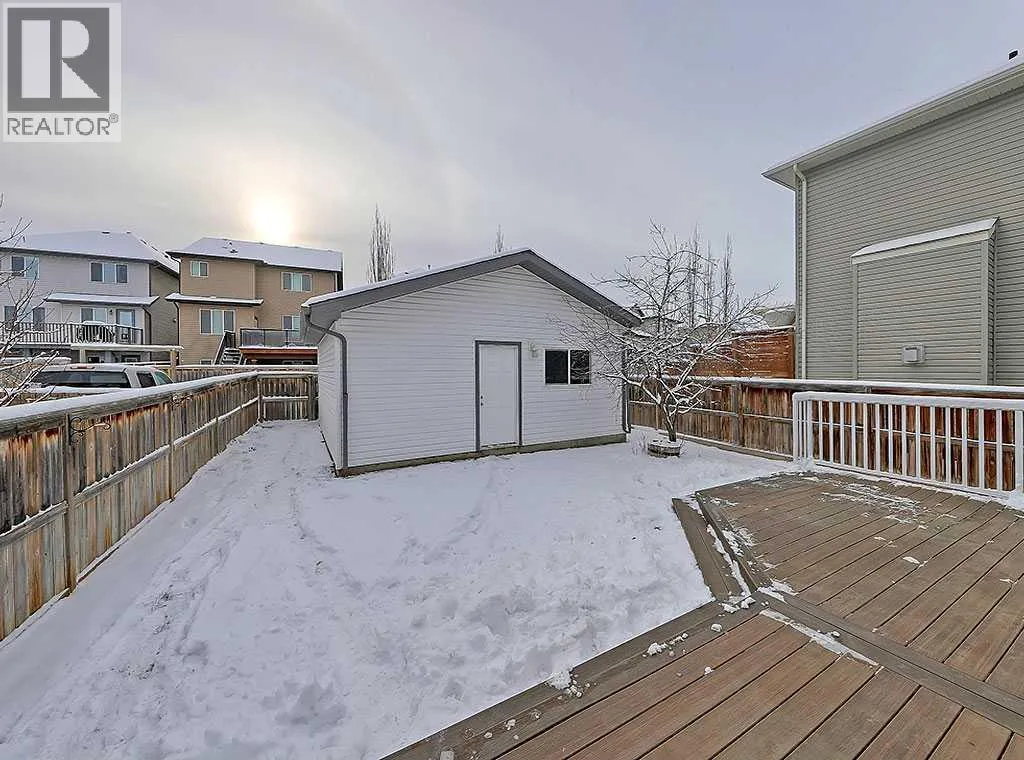 Welcome to this spacious 4 bedroom, 3 1/2 bathroom family home in Cimarron. This home features 1,504 sq ft above grade with a fully finished basement. Parking and storage is no problem with an oversized double detached garage with room for storage AND a workbench all located off the back alley. The main floor has tons of natural light and space, with a large family room and a cozy fireplace, adjacent to the kitchen and massive dining nook. Â Big kitchen island overlooks the backyard with spots at the lunch counter. The backyard is fully fenced with a new composite deck for the BBQ. On the second level you will find a big open landing and 3 large bedrooms with 2 bathrooms. The master suite includes an attached 4 piece ensuite that features a soaker tub and separate shower. All the bedrooms have upgraded closet built-ins that make storing the extra stuff a breeze. The basement is fully developed with a 4th bedroom and bathroom. Also featuring and additional family room that is set up perfectly for family time or an escape for the teenagers with a built in speaker system and built in wall units. Immediate possession is possible. (id:27476)
