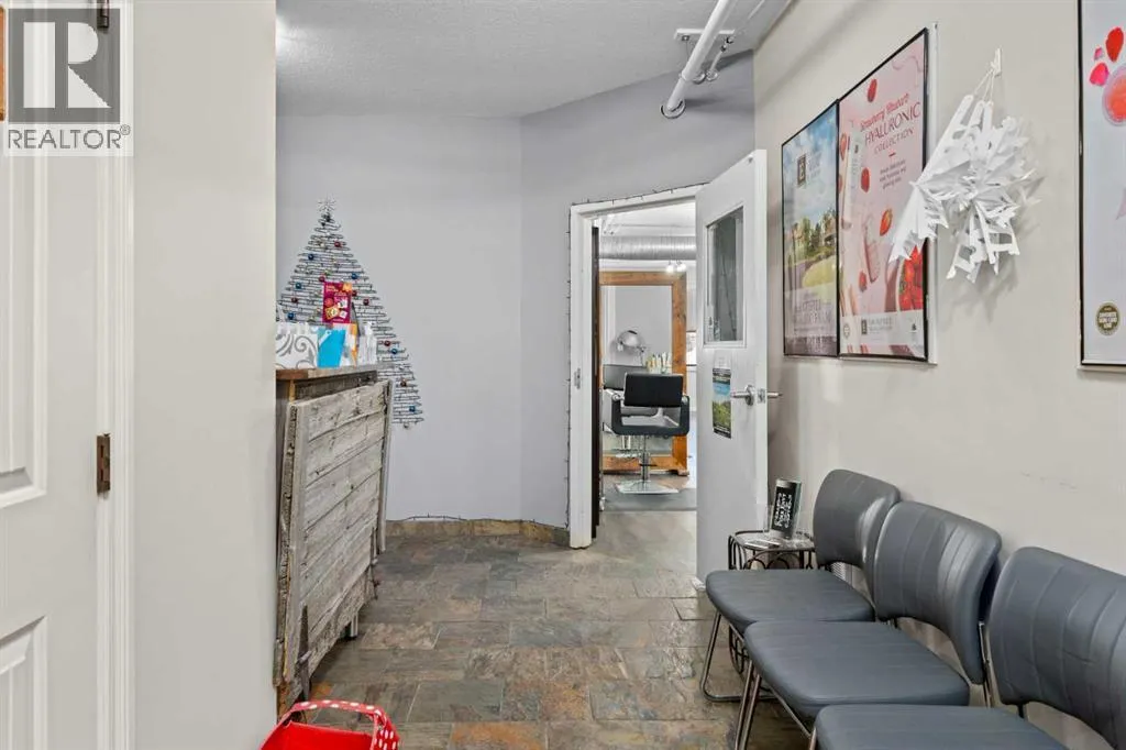 Fantastic opportunity to own half of the 2nd floor of this great commercial unit. This unit has lots of potential for a multitude of uses, at one time it was split into 2 tenants and could easily be split again if you wanted to have a smaller space for your business and rent out the other side. This unit is currently being used a spa and salon, please note the fixtures belong to the tenant and will be removed. This is a great location with lots of natural light, your own heating and cooling controls. There is a reception with a kitchen area and a washroom with tiled flooring (there is potential for a 2nd washroom but it is currently being used as the laundry). There is a huge room with large windows (this is currently used for the hairdressing stations), there are 3 private rooms and another area that would make a great shared space. The unit has modern paint colours and gorgeous flooring. There is additional storage space and an entrance to the back staircase. The building is well maintained and there is lots of parking for your customers. This is a great unit in a fabulous location! View 3D Tour. (id:27476)