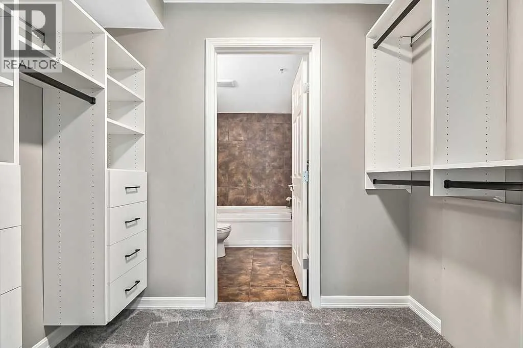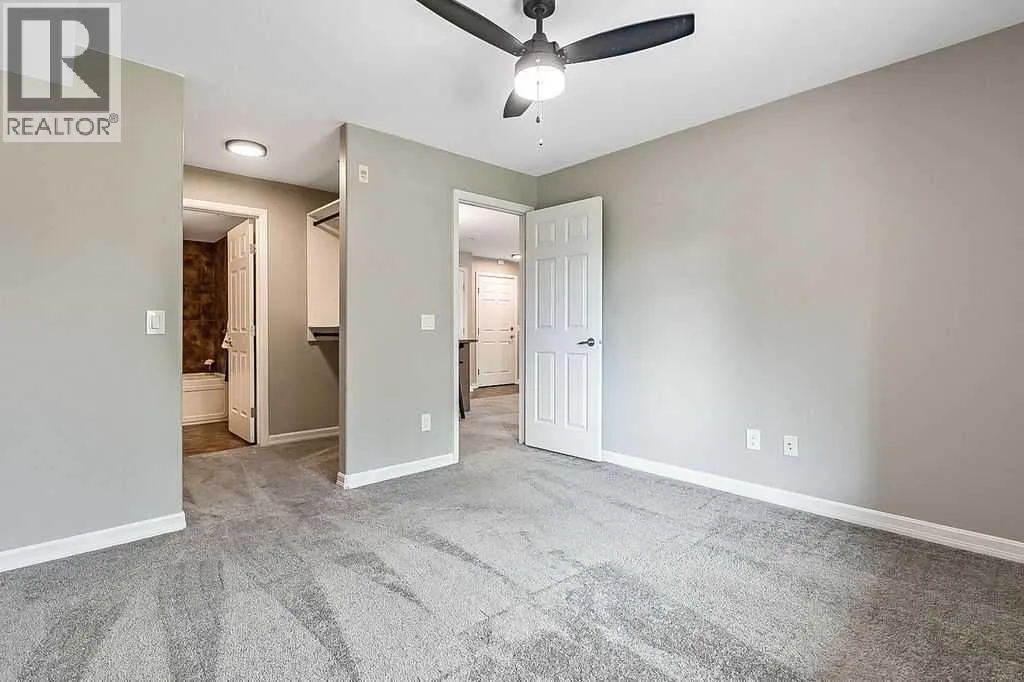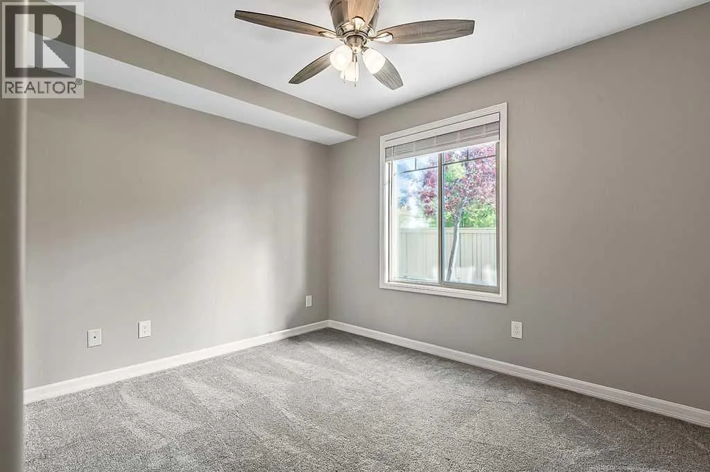 INCREDIBEL VALUE FOR 2 BEDROOMS, PLUS A DEN, 2 FULL BATHROOMS & 2 TITLED PARKING SPOTS. Welcome all Pickleball fans, you are just a short walk away from the new Okotoks Pickleball & Tennis Centre. This beautiful property is an end unit that has thoughtful updates and a smart floorplan designed for comfort and privacy. Each bedroom and bathroom are located on opposite sides of the unit, making it ideal for roommates or guests. This home comes with two parking stalls, one interior and one exterior, along with both in-suite storage and an additional storage cage. Inside, you will love the long list of upgrades, including a new washer & dryer, refrigerator, stove, and range hood, a reverse osmosis water system, and a stainless Chef sink with custom attachments. Added features like California Closets, LED counter lighting and LED lighting throughout, window coverings, ceiling fans in both bedrooms, and a rustic ceiling beam bring character and style throughout. The unit has been freshly painted (walls and ceilings), the carpet was replaced in 2023, and the home is completely clean, tidy, and move-in ready. The floorplan is enhanced by a clever flex space which is perfect for a home office, yoga nook, playroom, or extra storage. The laundry is neatly tucked away in its own closet, adding to the smart design. Step out onto your private east facing patio to enjoy your morning coffee in peace. As an end unit, youâll appreciate having only one neighbor beside you, adding to the quiet and private feel. Beyond the unit, the community itself is second to none, offering lake access and a welcoming neighborhood environment. If youâve been searching for a stylish, upgraded condo with parking, storage, privacy, and community amenities, this is the one to see. Ensure you allow yourself enough time to enjoy the complex. Have a stroll through the gym, hot tub and sauna area, social room and games room. When you are in the parkade ensure you look at your parking stall, storage cage and the resident's car wash. It would be hard to not enjoy living in this environment. (id:27476)