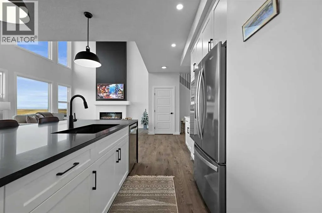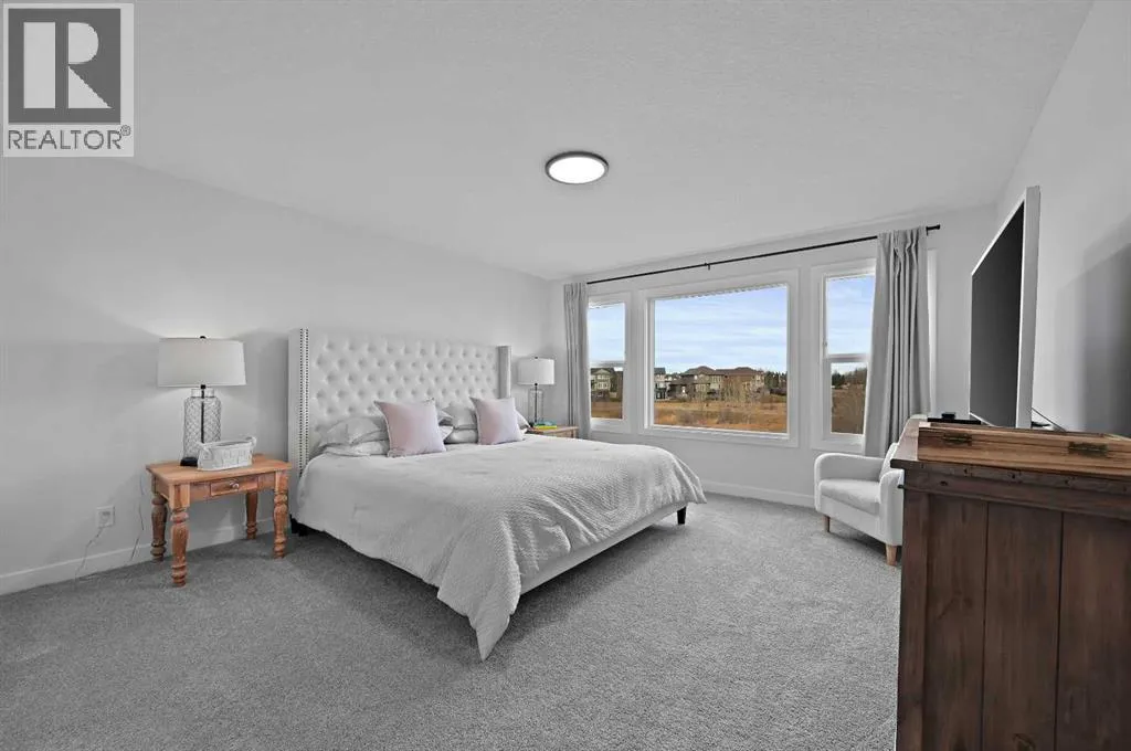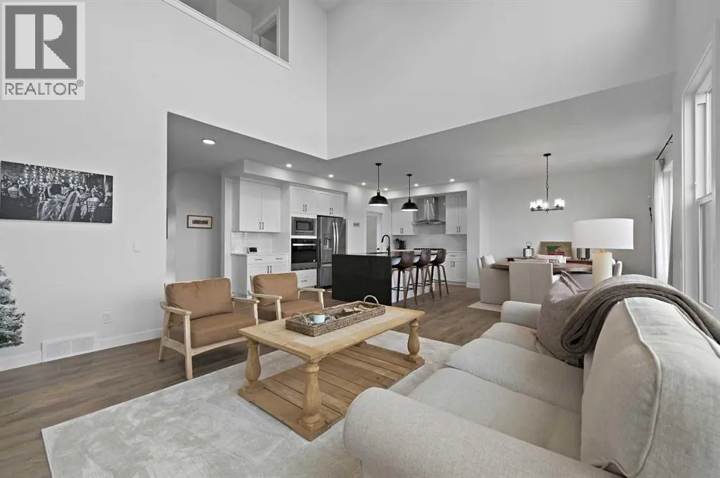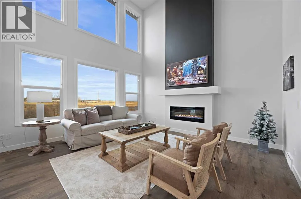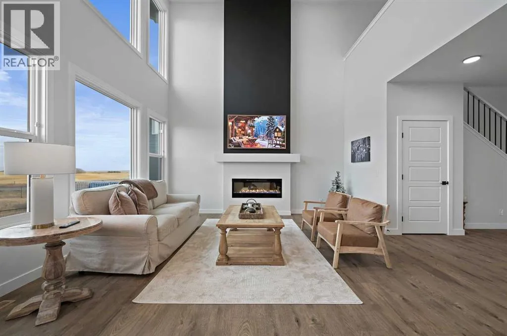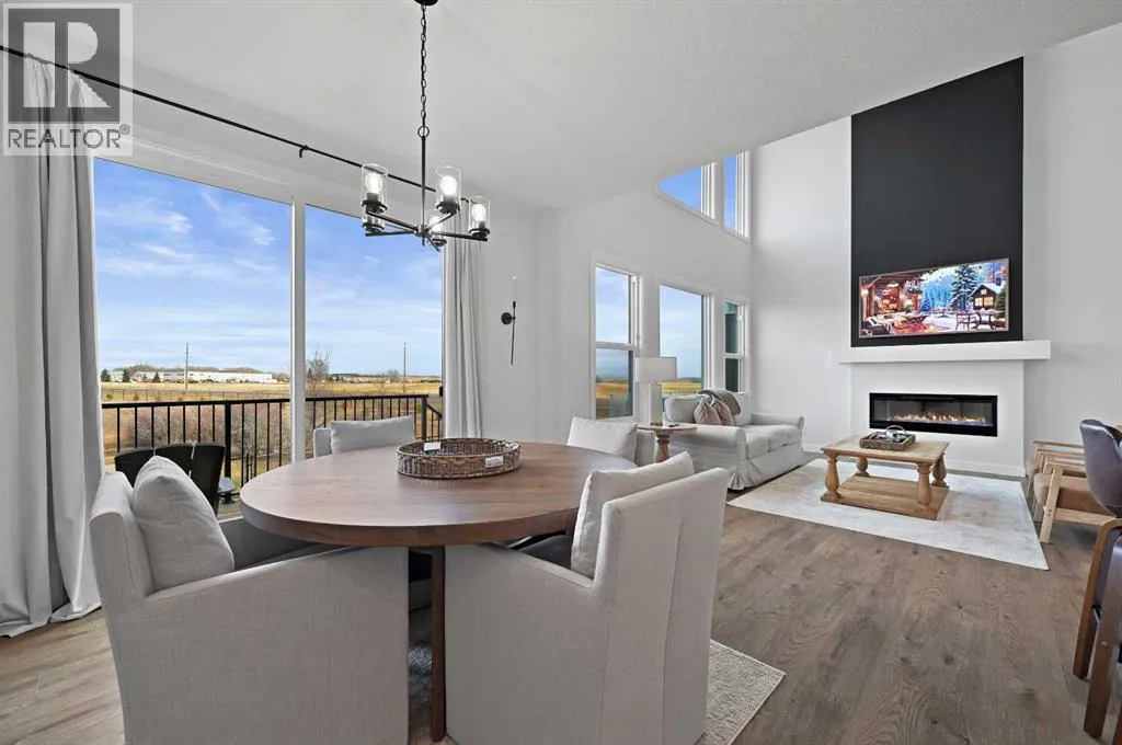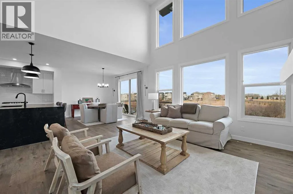 Welcome to 34 Ranchers View. This Sterling home was completed in early March 2025, boasting 4 bedrooms on the upper level which is a commodity nowadays, accompanied with 2 bathrooms and a half bath.Upon entry, first thing you will notice is the open space and natural light basking the home. From afar you could see the nature preserve the home backs onto. 9â ceilings carry throughout the main floor opening up to an eye opening 18â4â high in the grand living room. Matching Stainless steel kitchen appliances for those mouth watering home cooked meals could be served on the big waterfall kitchen island. For Family gatherings, the open flow from the dining room to the living room creates the coziness everyones yearns in a home. Continue outside to the oversized deck in the backyard overlooking a pond and walking paths for serenity. No neighbours in the rear leaves for peace and privacy year round. Head upstairs to the Primary retreat with views of the nature preserve from your bedroom then bask in the spa like ensuite to end the day. This community is a close proximity to the crystal ridge golf club and your own private airstrip for the aviation enthusiasts. Surrounded by playgrounds and walking paths, do not miss out on this opportunity to attain one of Air Ranchâs best lot location with a great builder reputation behind the build. (id:27476)