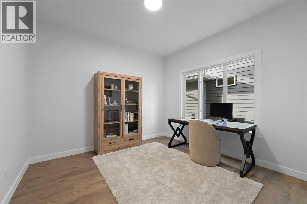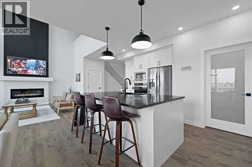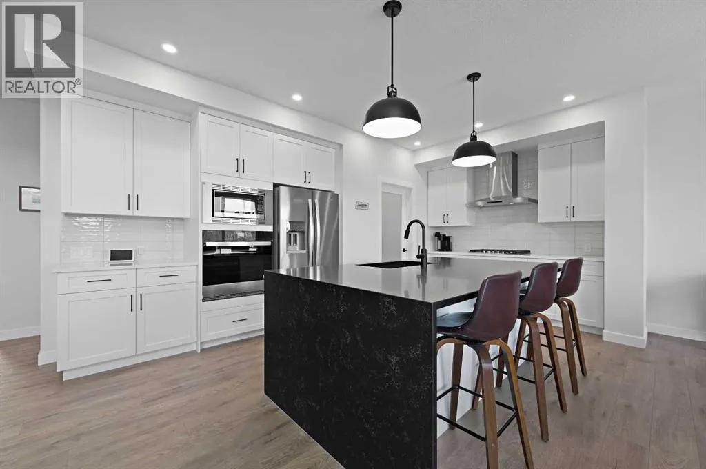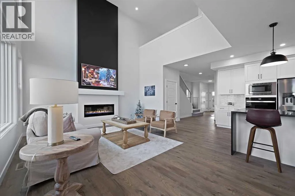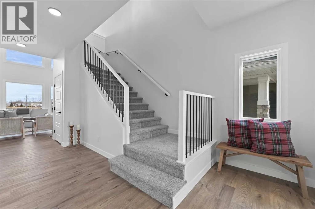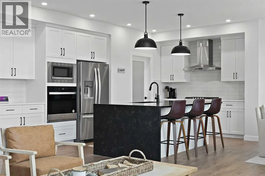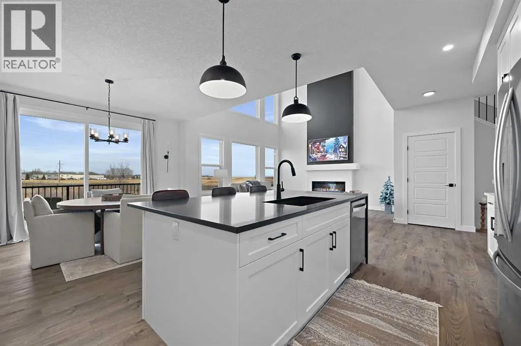 Welcome to 34 Ranchers View. This Sterling home was completed in early March 2025, boasting 4 bedrooms on the upper level which is a commodity nowadays, accompanied with 2 bathrooms and a half bath.Upon entry, first thing you will notice is the open space and natural light basking the home. From afar you could see the nature preserve the home backs onto. 9â ceilings carry throughout the main floor opening up to an eye opening 18â4â high in the grand living room. Matching Stainless steel kitchen appliances for those mouth watering home cooked meals could be served on the big waterfall kitchen island. For Family gatherings, the open flow from the dining room to the living room creates the coziness everyones yearns in a home. Continue outside to the oversized deck in the backyard overlooking a pond and walking paths for serenity. No neighbours in the rear leaves for peace and privacy year round. Head upstairs to the Primary retreat with views of the nature preserve from your bedroom then bask in the spa like ensuite to end the day. This community is a close proximity to the crystal ridge golf club and your own private airstrip for the aviation enthusiasts. Surrounded by playgrounds and walking paths, do not miss out on this opportunity to attain one of Air Ranchâs best lot location with a great builder reputation behind the build. (id:27476)