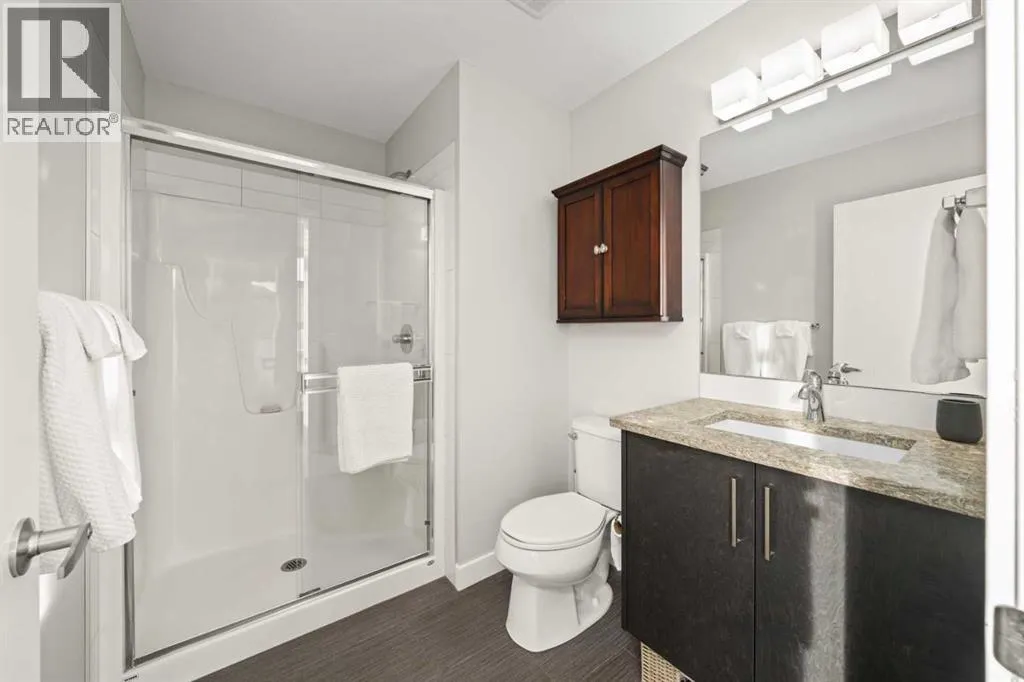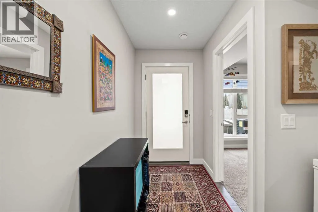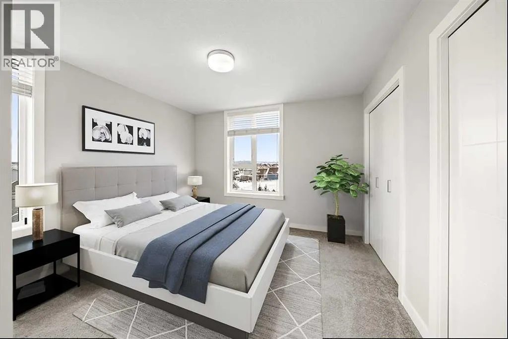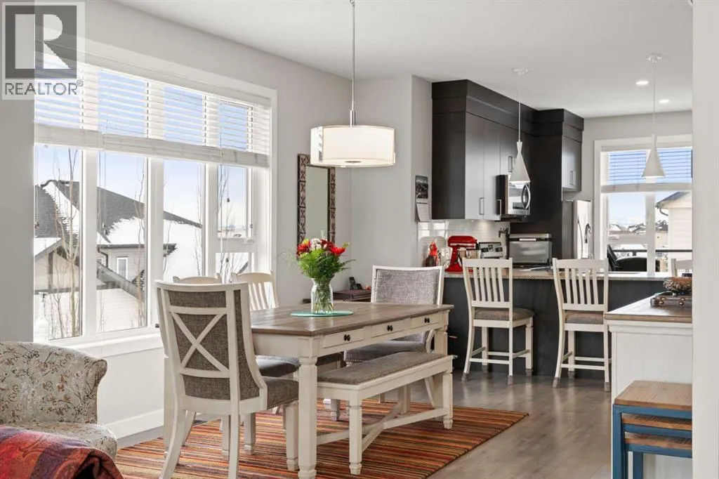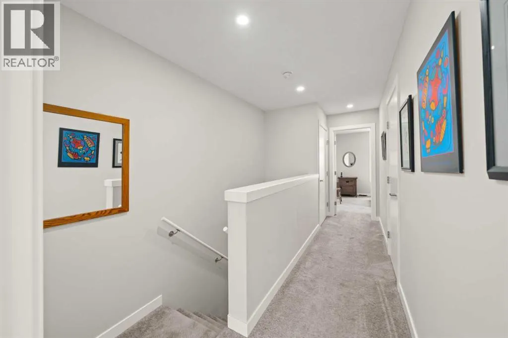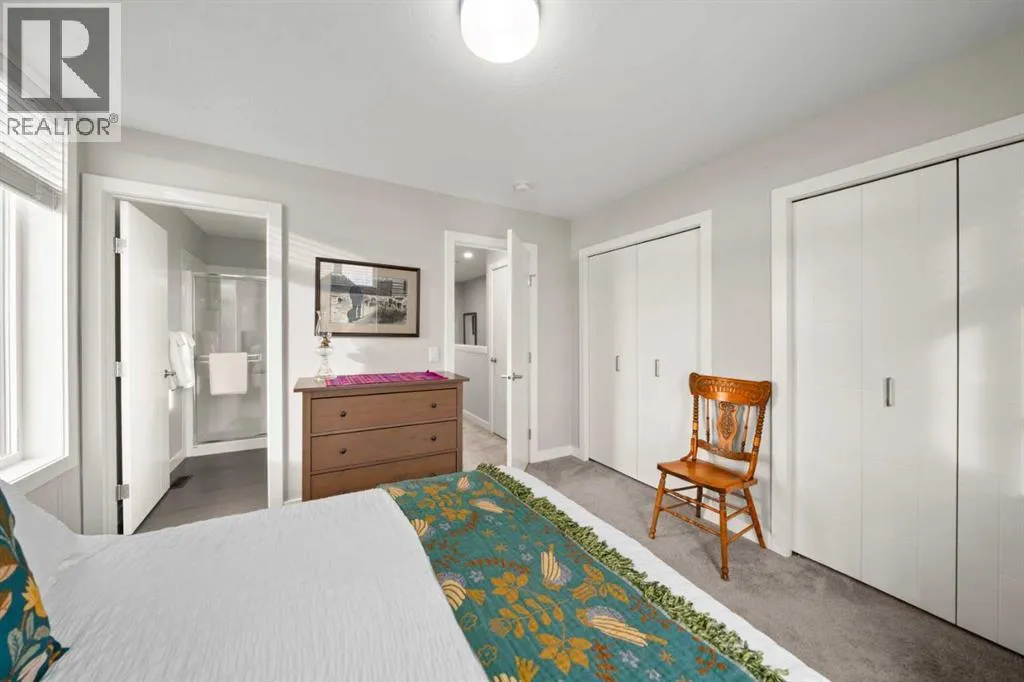 Welcome to this beautifully appointed, air-conditioned end-unit townhouse showcasing stunning west-facing mountain views. Lovingly maintained by its original owner, this home reflects true pride of ownership throughout.From the moment you arrive, youâll appreciate the convenience of a private driveway, ease of parking for visitors, impeccably maintained common areas, and the welcoming front patio. The entry level features durable tile flooring, a versatile den ideal for a home office or flex space, a convenient half bath, and direct access to the oversized single attached garage with additional storage.The main living level offers an open-concept layout enhanced by luxury vinyl plank flooring. The contemporary kitchen is both stylish and functional, featuring quartz countertops, cabinets extended to the ceiling, generous counter space, a pantry, and stainless steel appliances. Step onto the west-facing balcony to enjoy breathtaking mountain views and unforgettable sunsets. This level is completed by a spacious dining area and a bright, inviting living room filled with natural light from the abundance of windowsâperfect for entertaining or relaxing!Upstairs, two generously sized primary bedrooms each feature their own ensuite bathrooms and dual closets. The west-facing primary suite boasts spectacular mountain views and a four-piece ensuite, while the east-facing suite offers a three-piece ensuite with a large walk-in shower. Convenient upper-floor laundry completes this level.Ideally located close to a park, walking paths, a nearby school, and a variety of shopping and everyday amenities, this exceptional end unit seamlessly combines thoughtful design, modern finishes, and a highly desirable locationâtruly a place youâll be proud to call home.View 3D/Multimedia/Virtual Tour. (id:27476)