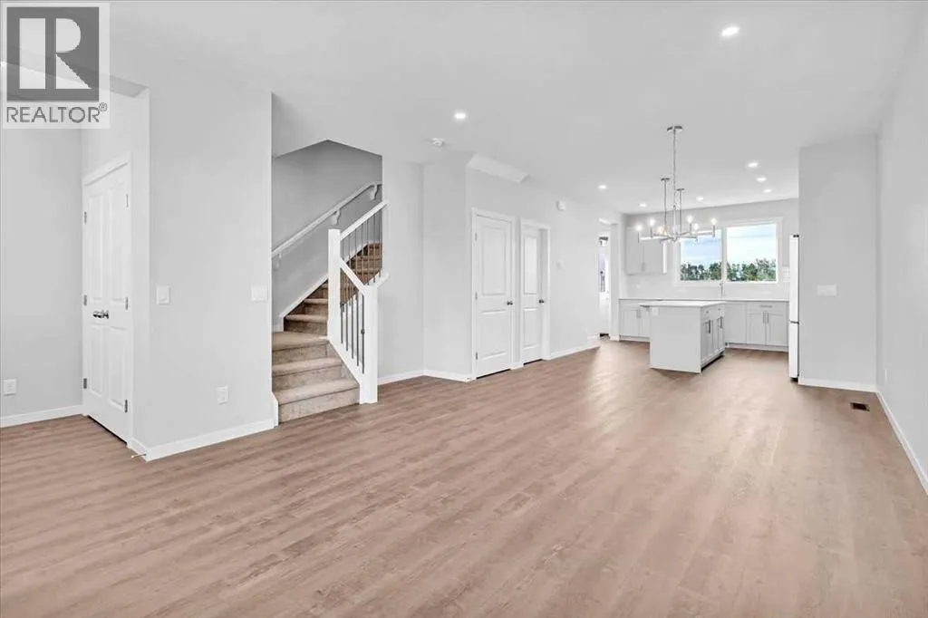 Welcome to this beautiful brand-new property in Okotoks. This house is situated in a new quite community, family-friendly neighborhood. A short walk to DâArcy Ranch Golf Club, and shopping like Safeway, shoppers Drug Mart, Starbucks, Dollarama, Pet value and more. As soon as you step in to this property you will be greeted by nice foyer and coat closet. The main floor offers open layout, great kitchen with stainless steel appliances, Quartz countertops, good size kitchen island, upgraded cabinets with soft closing and under-cabinet lighting. The kitchen also comes with a generous size pantry with wired shelving. As you walk away to the back of the house, you will have access to a two-piece bathroom, a built-bench and a back door that leads you to a good size deck with railing, BBQ gas line to enjoy the summer days on your backyard. As you walk to the second floor you will find three bedrooms, tow and half bathrooms, stackable washer and dryer and a linen closet. Every bedroom comes with walk-in closet. This property also has a side entrance that leads to the basement. The basement has a great layout that offers excellent opportunity for development. 9â foundation walls and two windows and all mechanicals are in one corner. This is an incredible opportunity in Okotoks. Book you showing through showing time. (id:27476)