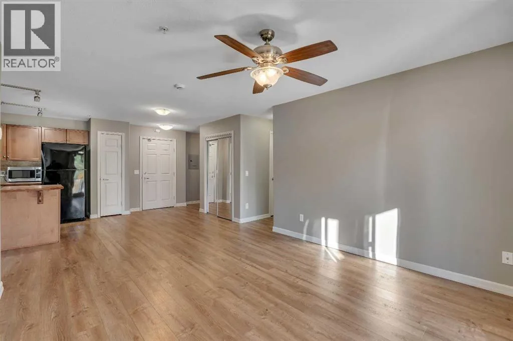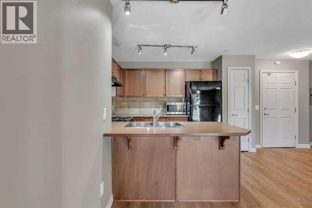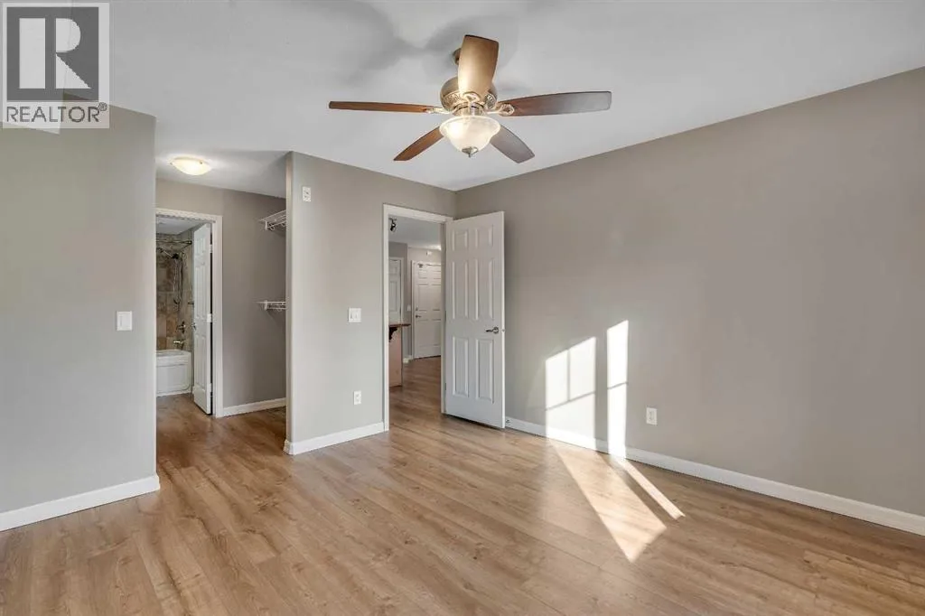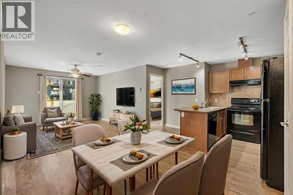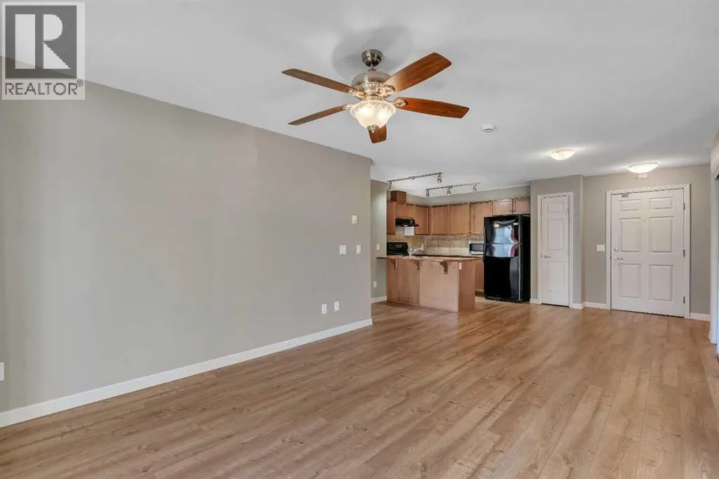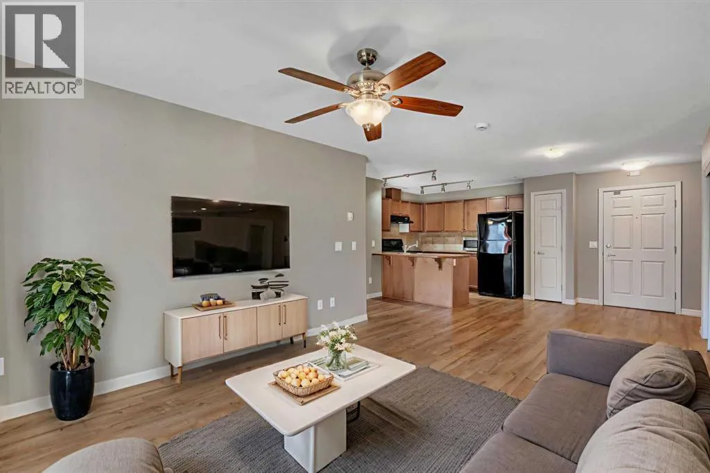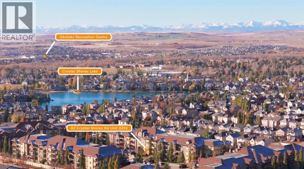 LAKE ACCESS | RESORT-STYLE AMENITIES | TWO PARKING STALLS | MOVE-IN READY | 2 BED/BATH + DEN | Welcome to the Mesa condos in Crystal Shores, where low-maintenance living meets year-round lake access and resort-style amenities. This beautifully updated second-floor end unit offers 908 square feet of thoughtfully designed living space with a bright, open layout and plenty of natural light throughout. This ideal floorplan was created for both privacy and functionality, featuring two spacious bedrooms, two full bathrooms, a den, and in-suite laundry â making it an excellent fit for almost anyone. The kitchen offers ample counter space with loads of cabinetry, a large pantry, sleek black appliances, and a sizable breakfast bar. The open layout allows plenty of room for large living room furniture and a full-sized dining set. A convenient den or flex space nearby makes an ideal home office or reading nook, while the dining and living area flows seamlessly onto a large covered balcony with a gas BBQ hookup, perfect for enjoying a morning coffee or glass of wine. The large primary suite features a walk-through closet, a private 4-piece ensuite, and a large east-facing window. The second bedroom is equally generous and has access to a full bathroom and ample closet space. Additional features include updated lighting, two linen closets, and window coverings throughout. All flooring was replaced in 2023 with luxury vinyl plank, and the home has been very well maintained since, offering a truly move-in-ready experience. This unit comes with two titled parking stalls: one surface stall just steps from the entrance and one heated underground stall that includes an adjacent storage cage. Living at Mesa means enjoying more than just your home â itâs a lifestyle. Residents have access to a private fitness centre, hot tub, sauna, games room with a pool table, and a large social space with a kitchen for hosting gatherings, as well as an on-site car wash bay. As part of the Crystal Sho res community, youâll also enjoy exclusive lake privileges with swimming, paddleboarding, beach volleyball, skating in the winter and a community golf course. Perfectly situated on the north side of Okotoks, this location offers quick access to Calgary while providing the peaceful, lakeside atmosphere that makes Crystal Shores one of the most desirable communities in town. Book your private showing today! (id:27476)