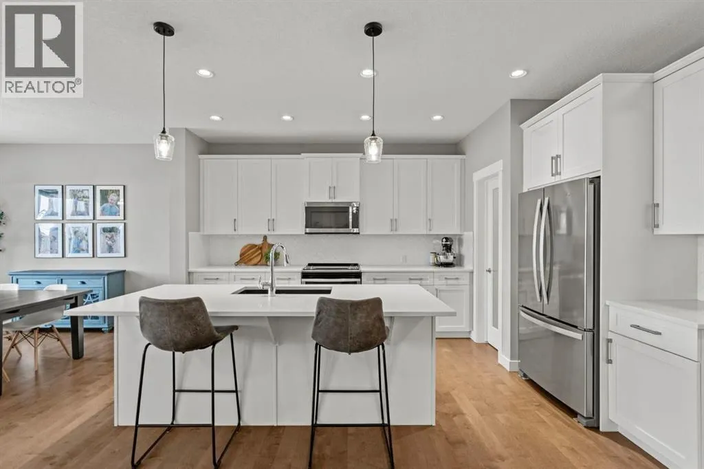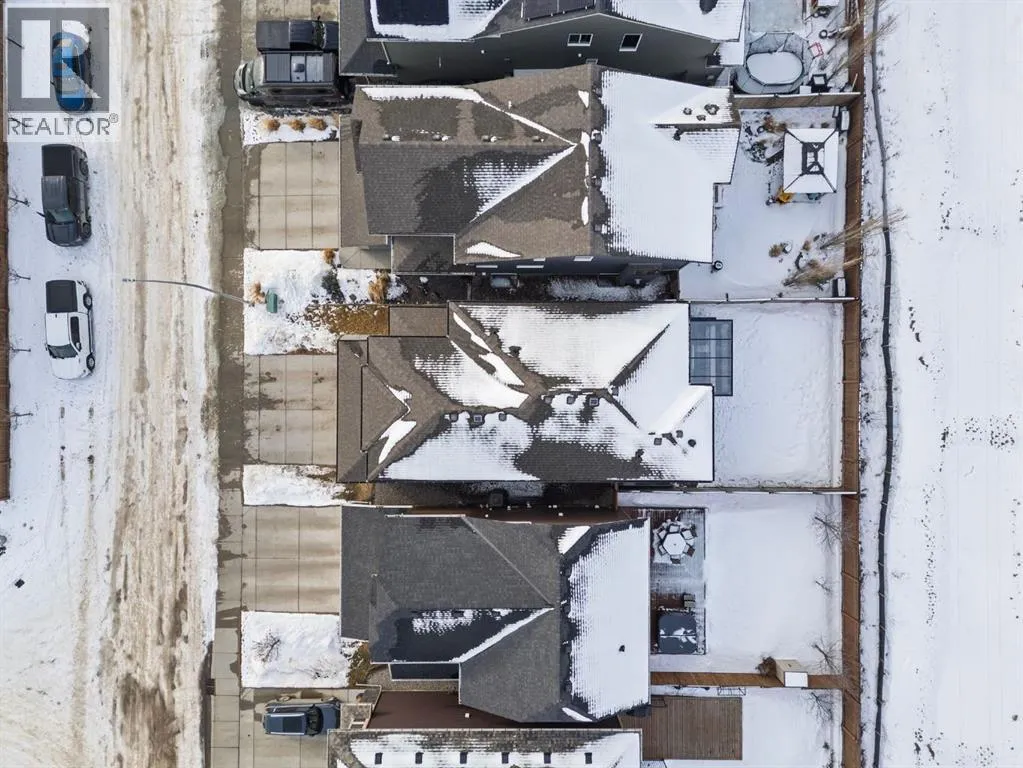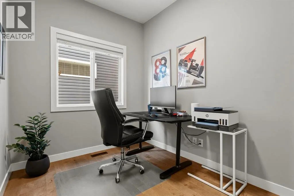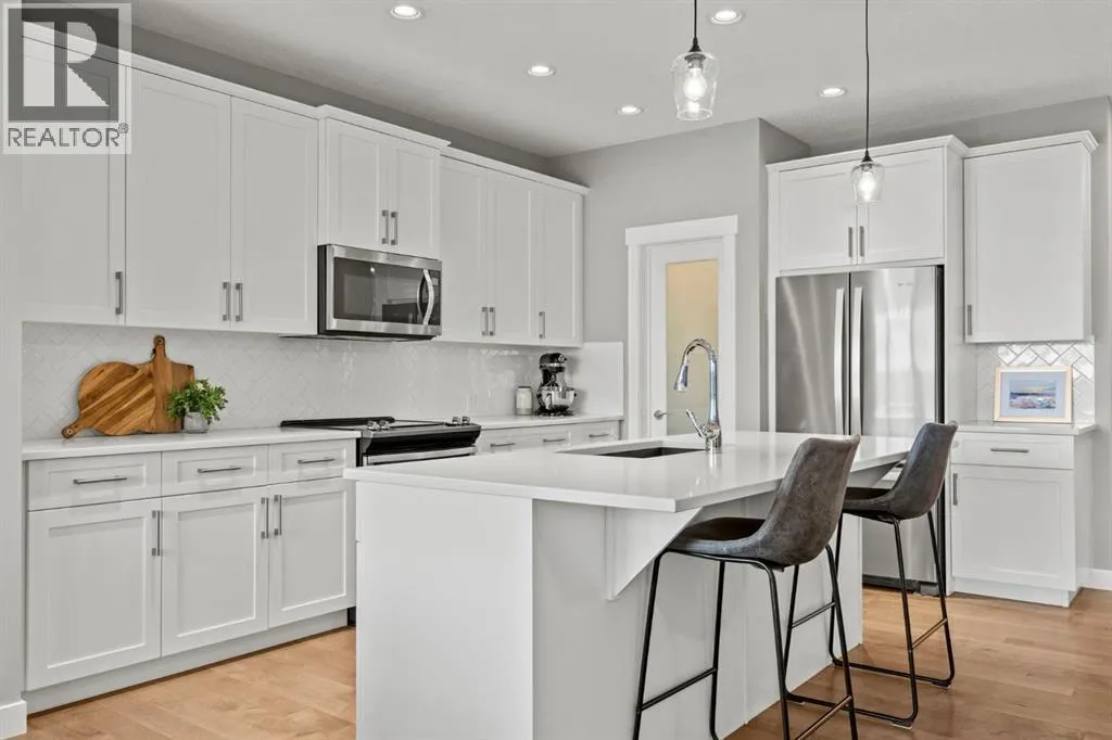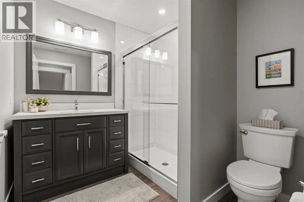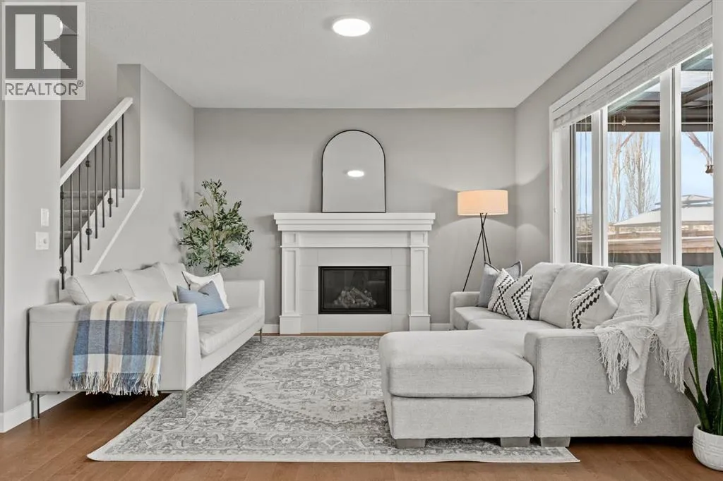 Located in the highly sought-after community of Mountview in Okotoks, where opportunities are rare due to limited supply, this beautifully built Sterling Home offers over 3,000 square feet of thoughtfully designed living space and is fully air conditioned for year-round comfort. The exterior makes a strong first impression with durable hardiboard front siding and a tasteful, timeless design. Inside, the home offers 2,268 square feet above grade with a fully finished basement, four bedrooms, a main floor office, and three and a half bathrooms, making it ideal for growing families or those who need flexible space. The main floor features gorgeous hardwood flooring, quartz countertops throughout, and stainless steel appliances. The kitchen is anchored by a large sit-up island with an integrated sink and flows seamlessly into the dining area and living room, where a beautiful fireplace and custom mantle create a warm and inviting focal point. A walk-through pantry connects the kitchen to the back entrance, complete with built-in coat hooks for everyday convenience. One of the standout features of this home is the heated screened room with retractable screens, allowing you to enjoy the outdoors comfortably through all seasons. Upstairs, the primary bedroom is filled with natural light from a stunning window and features a tasteful feature wall. The ensuite includes dual sinks with a quartz vanity, a soaker tub, a separate shower, and a large walk-in closet. Down the hall are two additional bedrooms and a well-designed laundry room with its own sink and excellent storage. At the end of the hall, the south-facing bonus room is flooded with light thanks to its abundance of windows, creating a bright and versatile family space. The fully finished basement includes a massive bedroom, a large open play or recreation area, and a full bathroom with a tiled shower extending to the ceiling. The mechanical room is equally impressive, featuring a recently serviced hot water tank and furnace, freshly cleaned ductwork, a full water softening system, an HRV system, and yes, air conditioning. Rounding out this exceptional home is the garage, which includes custom storage solutions and an epoxy-coated floor, creating a clean, functional, and truly standout space. Homes like this in Mountview do not come along often. This is a rare opportunity to secure a move-in-ready home in one of Okotoksâ most desirable communities. (id:27476)
