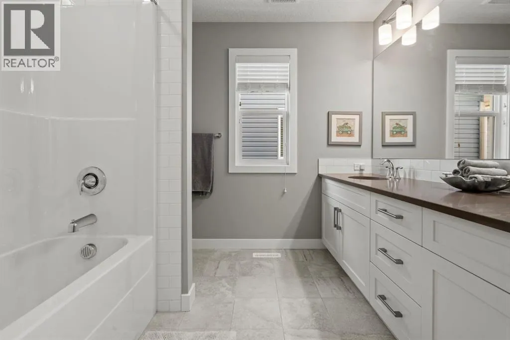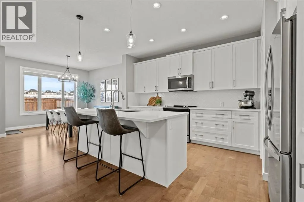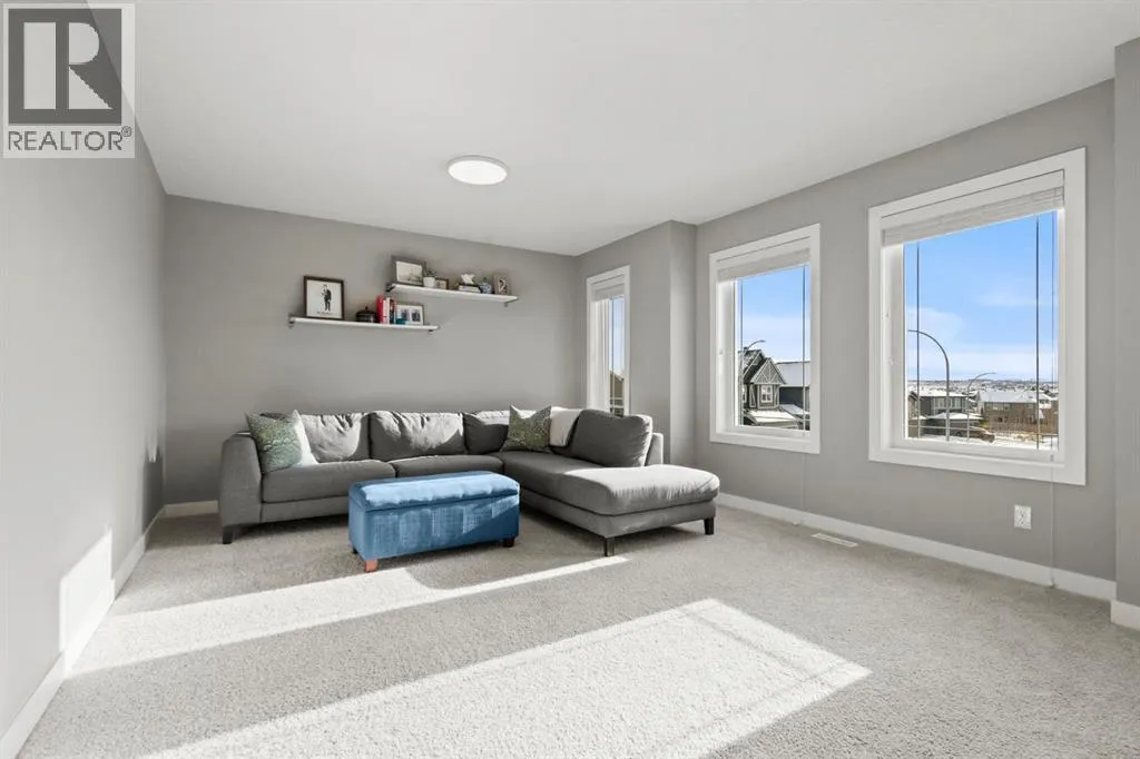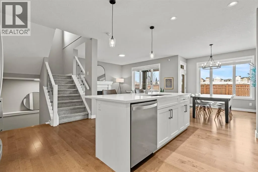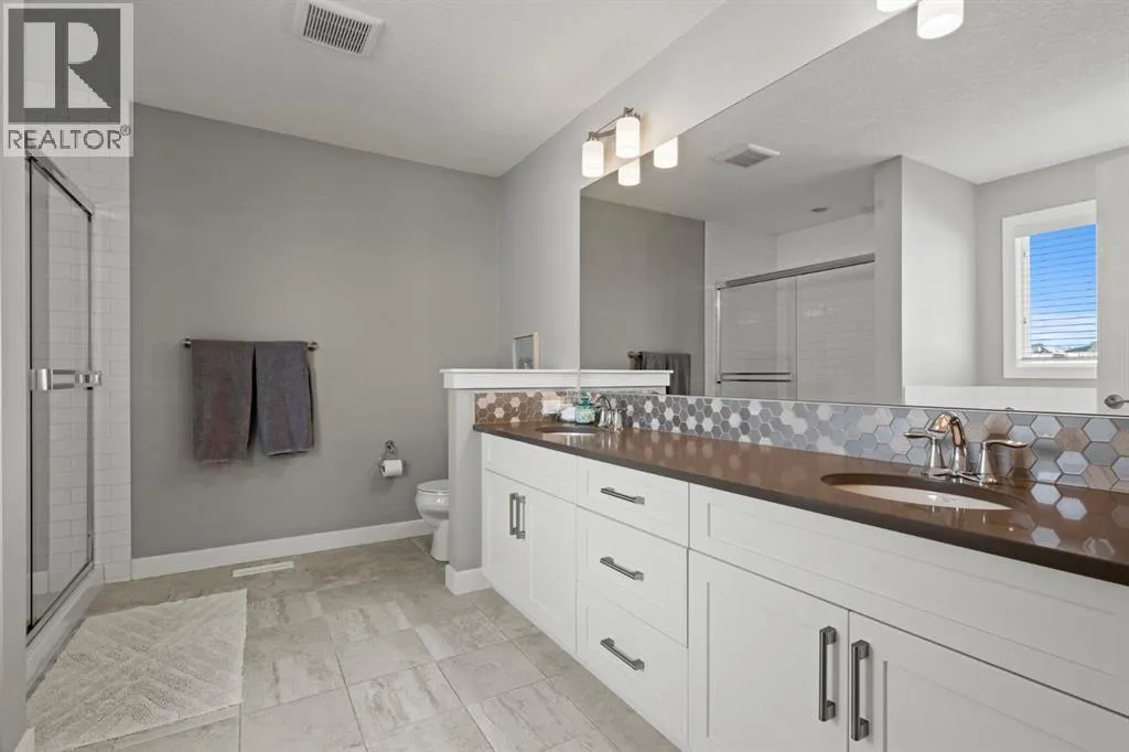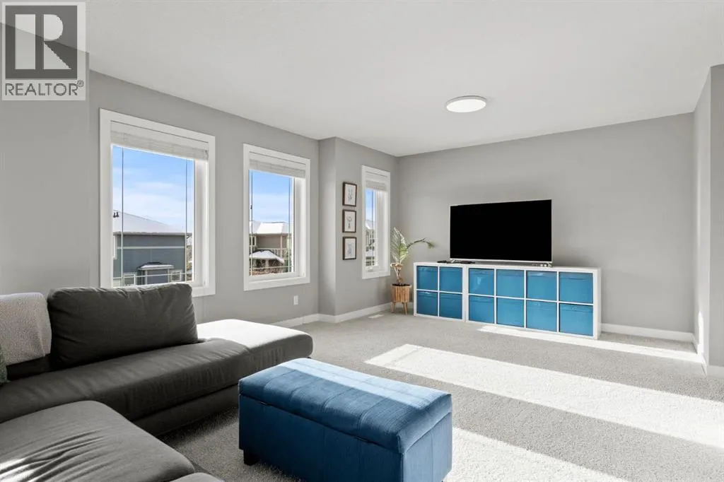 Located in the highly sought-after community of Mountview in Okotoks, where opportunities are rare due to limited supply, this beautifully built Sterling Home offers over 3,000 square feet of thoughtfully designed living space and is fully air conditioned for year-round comfort. The exterior makes a strong first impression with durable hardiboard front siding and a tasteful, timeless design. Inside, the home offers 2,268 square feet above grade with a fully finished basement, four bedrooms, a main floor office, and three and a half bathrooms, making it ideal for growing families or those who need flexible space. The main floor features gorgeous hardwood flooring, quartz countertops throughout, and stainless steel appliances. The kitchen is anchored by a large sit-up island with an integrated sink and flows seamlessly into the dining area and living room, where a beautiful fireplace and custom mantle create a warm and inviting focal point. A walk-through pantry connects the kitchen to the back entrance, complete with built-in coat hooks for everyday convenience. One of the standout features of this home is the heated screened room with retractable screens, allowing you to enjoy the outdoors comfortably through all seasons. Upstairs, the primary bedroom is filled with natural light from a stunning window and features a tasteful feature wall. The ensuite includes dual sinks with a quartz vanity, a soaker tub, a separate shower, and a large walk-in closet. Down the hall are two additional bedrooms and a well-designed laundry room with its own sink and excellent storage. At the end of the hall, the south-facing bonus room is flooded with light thanks to its abundance of windows, creating a bright and versatile family space. The fully finished basement includes a massive bedroom, a large open play or recreation area, and a full bathroom with a tiled shower extending to the ceiling. The mechanical room is equally impressive, featuring a recently serviced hot water tank and furnace, freshly cleaned ductwork, a full water softening system, an HRV system, and yes, air conditioning. Rounding out this exceptional home is the garage, which includes custom storage solutions and an epoxy-coated floor, creating a clean, functional, and truly standout space. Homes like this in Mountview do not come along often. This is a rare opportunity to secure a move-in-ready home in one of Okotoksâ most desirable communities. (id:27476)