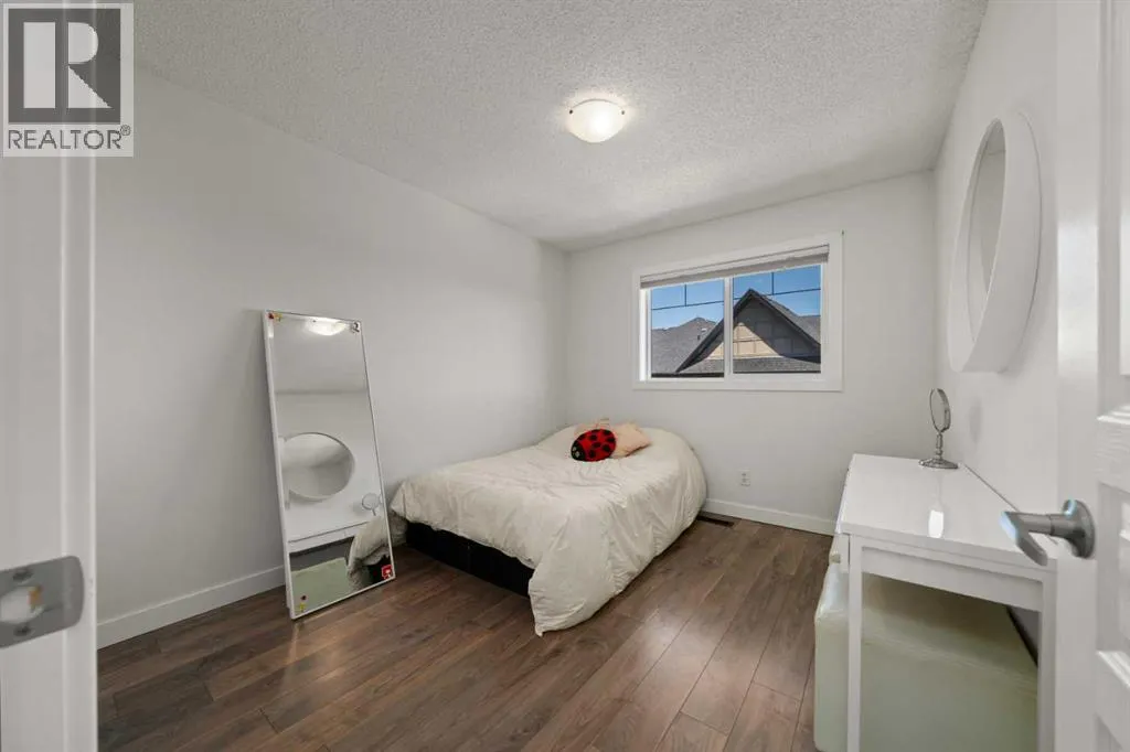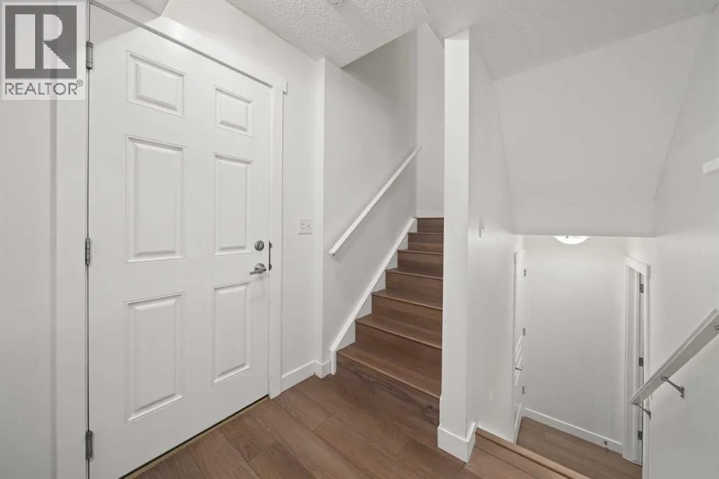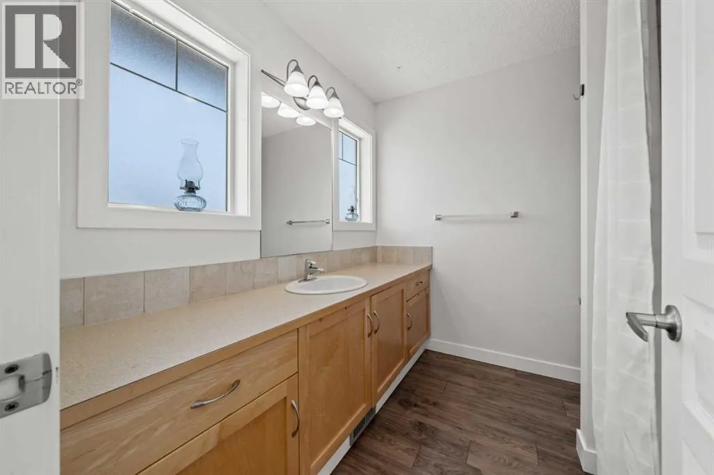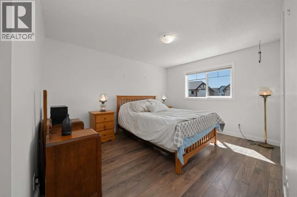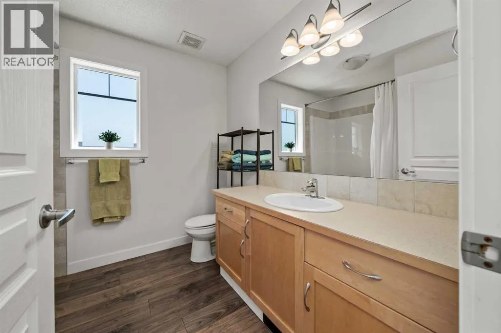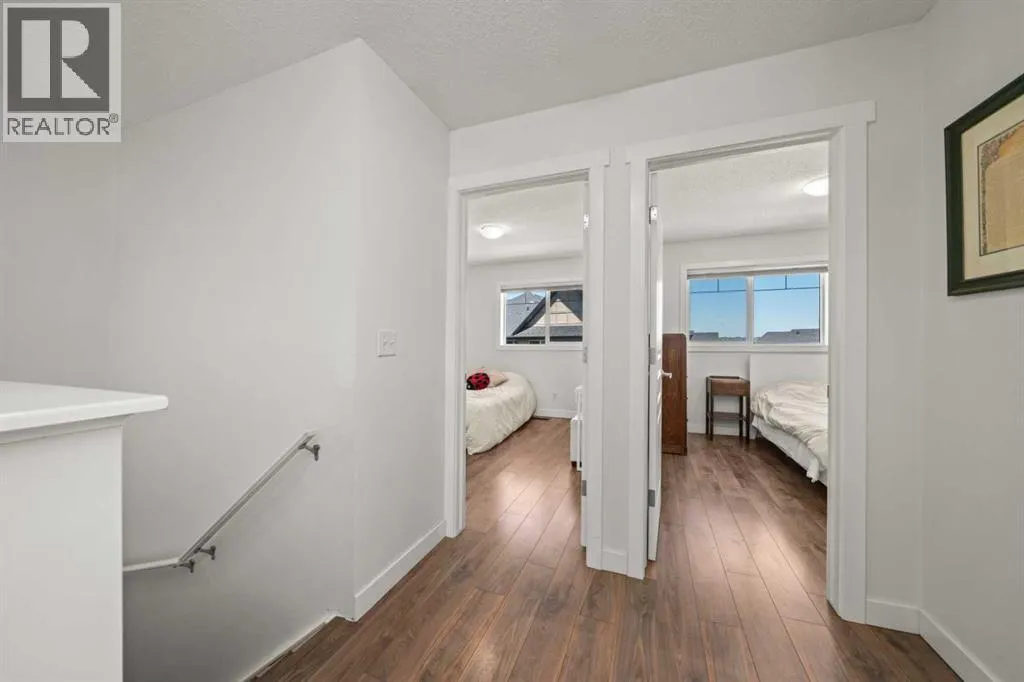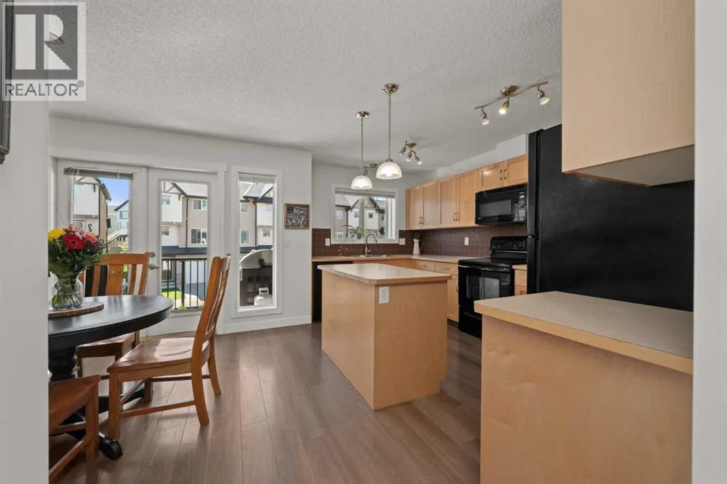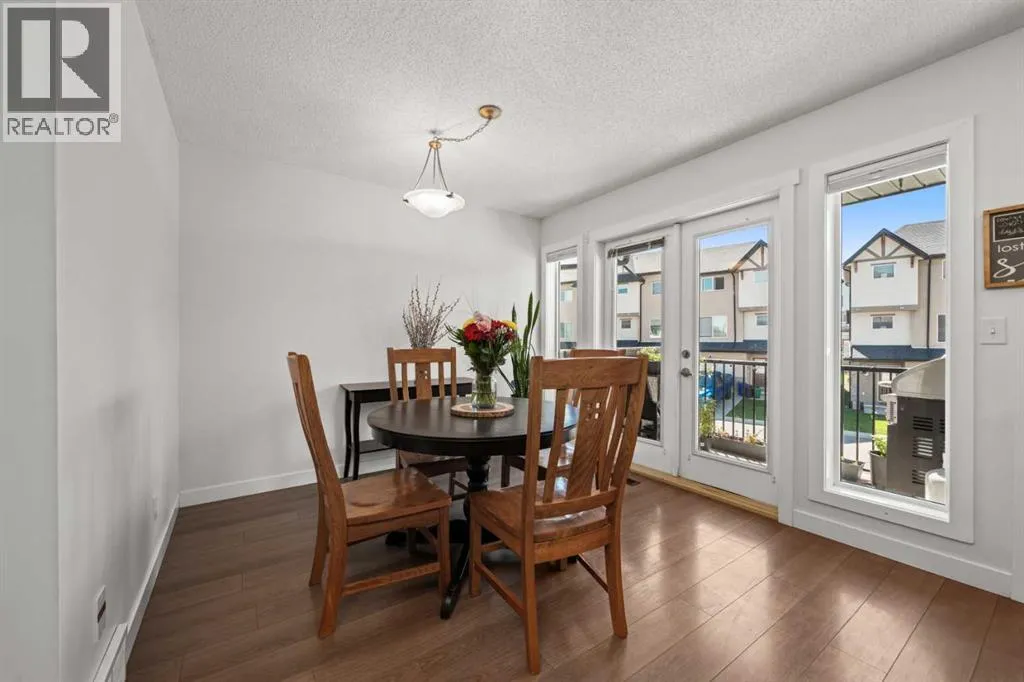 Welcome to this fabulous end-unit townhome offering 3 bedrooms, 2.5 bathrooms, and an attached double garage in the popular community of Cimarron. Beautifully maintained and truly move-in ready, this home features vinyl plank flooring throughout and an ideal layout for everyday living. The main level welcomes you with soaring ceilings, stylish flooring, and a bright, inviting living roomâperfect for relaxing at the end of the day. Upstairs, youâll find a well-designed kitchen with a central island and ample counter space, a spacious dining area, and access to a south-facing balconyâideal for BBQs and enjoying the sunshine. This level is completed by a convenient 2-piece powder room and laundry with washer and dryer.The upper level offers three generous bedrooms, including a primary suite with a 4-piece ensuite, plus an additional 4-piece main bathroom to accommodate family and guests.On the lower level, enjoy easy access to the attached double garage, along with a partially finished family room offering extra flexible living space.This home faces onto the park within the complex, with a playground just steps away. Ideally located within walking distance to shopping, walking paths, and the Sheep River, this is an excellent opportunity to own a stylish, low-maintenance home in a desirable complex. View the 3D tour! (id:27476)
