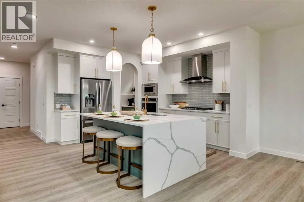 Built by Sterling Homes, this home showcases on-trend, designer-curated interior selections tailored for a home that feels personalized. Energy efficient and smart home features. Built to 2025 specifications, this home features an open-to-below layout, extra windows throughout, and an electric fireplace with maple floating shelves. The executive kitchen offers built-in stainless steel appliances, a built-in chimney hoodfan, gas cooktop, under-cabinet lighting, pendant lighting, waste-bin pull-out, and a walk-through pantry. Enjoy a rear deck with glass railing and BBQ gas line, a main floor flex room with double doors, and a mudroom with flip-top bench, coat racks, and cubbies. Upstairs features a vaulted bonus room and a primary bedroom with wall detail, a 5-piece ensuite with freestanding tub, fully tiled shower with two glass walls, heated floors, and a bank of drawers, plus tiled flooring in upper baths and laundry. This energy-efficient home is Built Green certified and includes triple-pane windows, a high-efficiency furnace, and a solar chase for a solar-ready setup. With blower door testing that may be eligible for up to 25% mortgage insurance savings, plus an electric car charger rough-in, itâs designed for sustainable, future-forward living. Featuring smart home technology, this home includes a programmable thermostat, ring camera doorbell, smart front door lock, smart and motion-activated switchesâall seamlessly controlled via an Amazon Alexa touchscreen hub. Photos are representative. (id:27476)