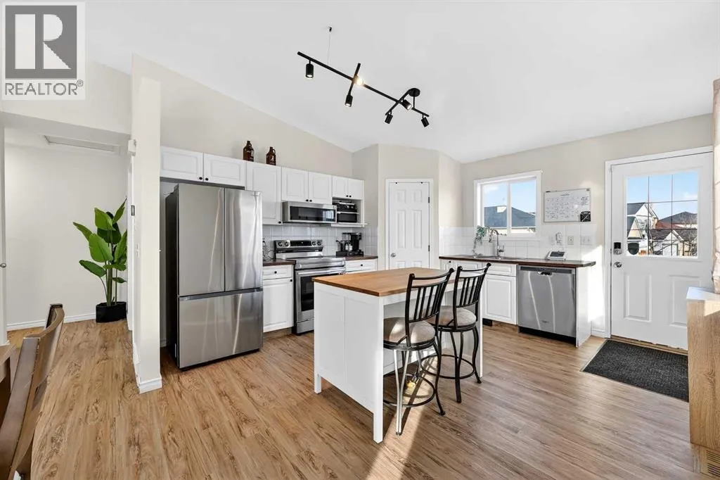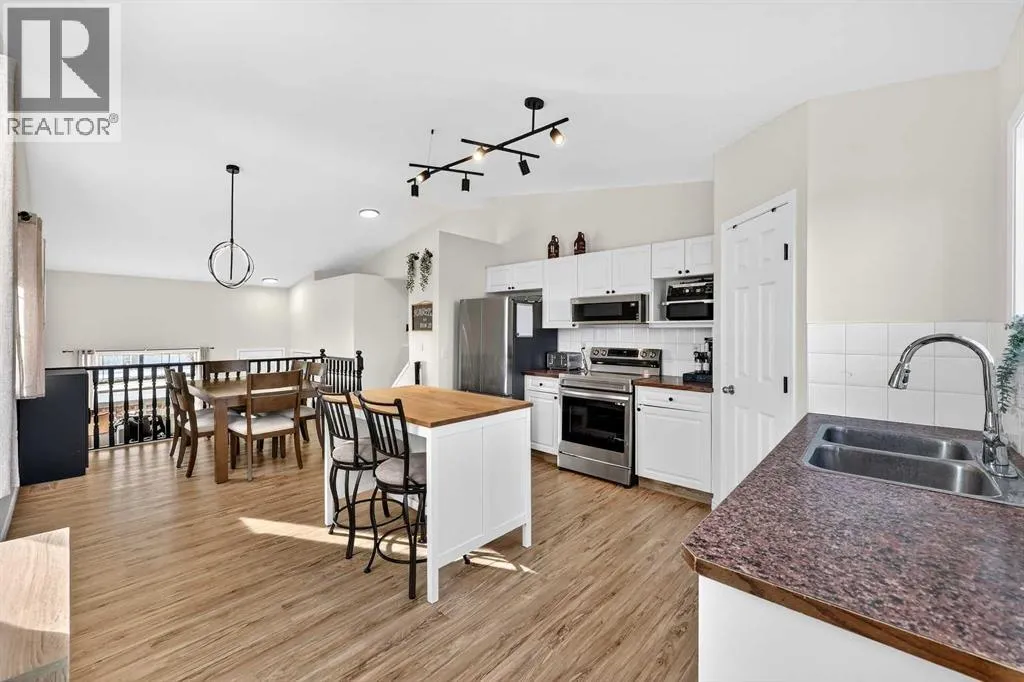 Welcome to 250 Cimarron Boulevard! In the heart of Cimarron, one of Okotoksâ most established and walkable communities! Set on a corner lot with added privacy and extra windows, this renovated bi level offers a bright, functional layout and thoughtful updates throughout. You are welcomed by vaulted ceilings and a spacious front family room filled with natural light from large windows, creating an open and uplifting first impression that instantly feels like home. Just a few steps up, the refreshed kitchen and dining area feature new appliances and updated finishes, with a window over the sink overlooking the backyard, so you can keep an eye on kids or simply enjoy the view while making dinner. A back door off the kitchen makes it easy to step outside for summer barbecues, quiet morning coffees, or evenings spent unwinding in your own yard. The home has been updated with new flooring, fresh paint, renovated bathrooms, a new hot water tank, air conditioning, and a roof replaced in 2023, giving you confidence and comfort from day one. Four bedrooms are thoughtfully spread across two levels, with two upstairs including the primary bedroom and a main bath conveniently positioned between them. The fully developed lower level offers two large bedrooms, another full bathroom, laundry, a generous family room, and impressive storage. Big, sunshine windows make the lower level feel bright and welcoming, creating flexible space for guests, teenagers, or a home office. The backyard offers plenty of room to play, garden, or build a future garage, and the corner lot provides both breathing room and flexibility. Living here means being just minutes from everyday essentials including Costco, Walmart, Home Depot, restaurants, shops and schools. Pathways wind throughout Cimarron and connect to parks and the Sheep River trail system, perfect for evening walks and weekend bike rides. Calgary is approximately 15 to 20 minutes away, making commuting simple while still enjoying the quiete r pace and strong sense of community that Okotoks is known for. With the Rocky Mountains less than an hourâs drive, spontaneous weekend escapes are always within reach. If you have been searching for a move in ready home, this one is worth experiencing in person! Book your showing and see how it feels to walk through the door. (id:27476)