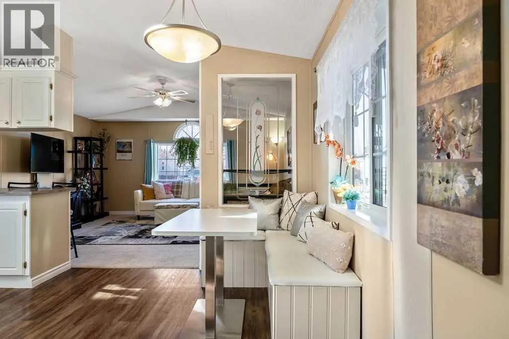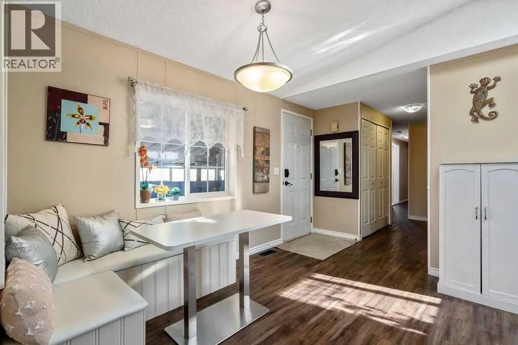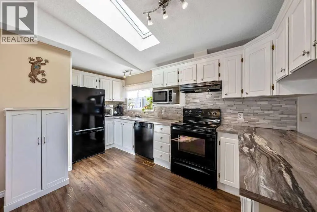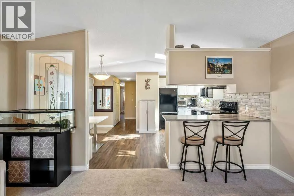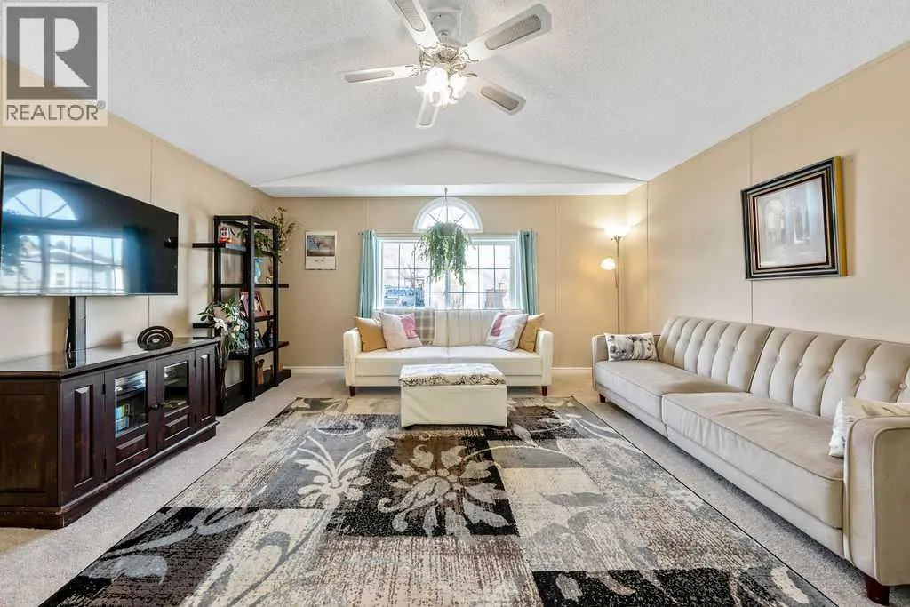 Unique opportunity to own a beautifully situated 1,034 sq. ft. single-wide mobile home set on a generously sized lot. The property offers outstanding outdoor functionality, including two large exterior shedsâideal for storing motorcycles, snowmobiles, 4-wheelers, and other outdoor toys or seasonal equipment. Thereâs also a large paved driveway accommodating two vehicles, plus the bonus of an attached 2 vehicle carport. The cozy interior features vaulted ceilings and a skylight that floods the main living area with natural light, creating a bright, open, and welcoming atmosphere. Youâll also appreciate the abundance of cabinetry and generous counter spaceâperfect for everyday living.The thoughtful layout includes 2 bedrooms and 2 bathrooms, both generously sized with a huge covered deck attached. Enjoy living right in the heart of Okotoks, just steps from parks, pathways, historic downtown, the recreation centre, and shopping. Lot fees of $1,270/month include water, sewer, garbage, compost, recycling, and snow removal. Buyer approval is required by Cove Communities (see member remarks for additional details).Donât miss this rare opportunity to enjoy tons of outdoor space, open concept living, storage, natural light , and the quaint lifestyle of Okotoks. (id:27476)