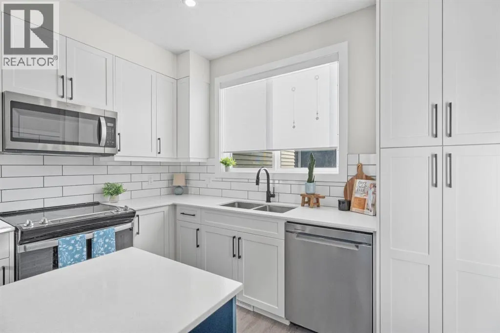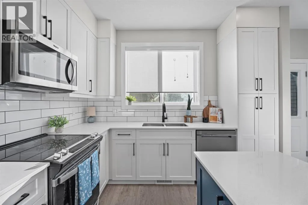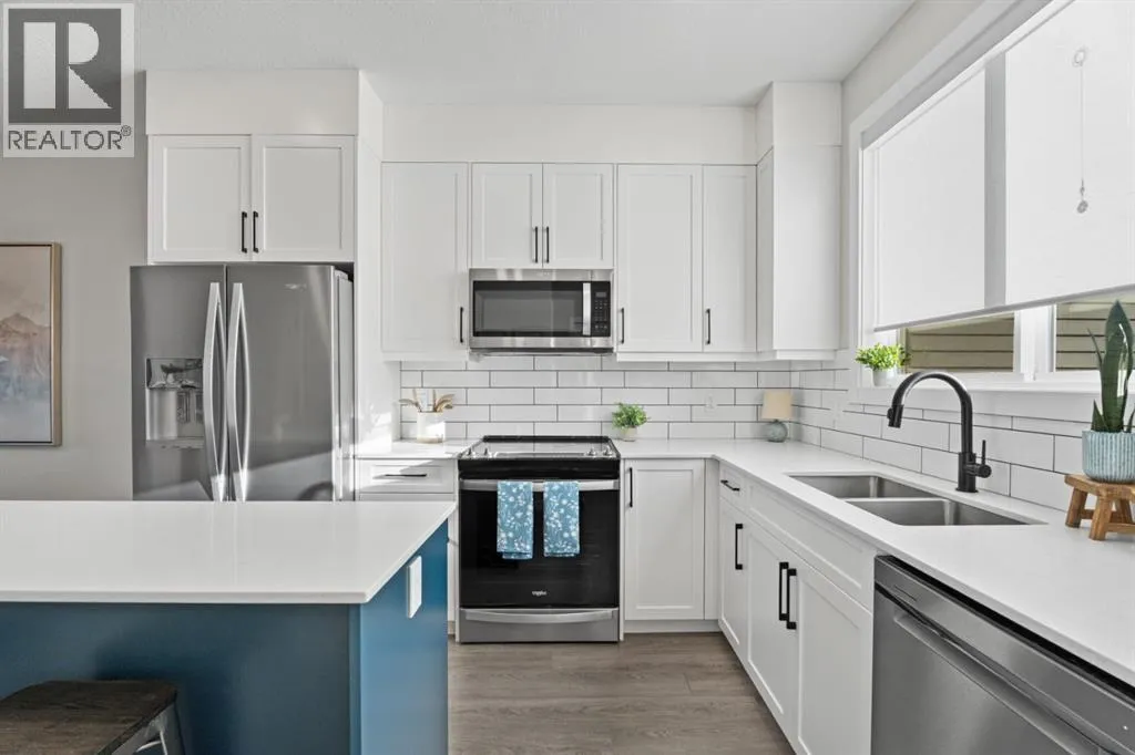 Immaculate and beautifully upgraded, this fully finished home feels good as new offering nearly 2000 sq. ft. of thoughtfully designed living space.  This north end address is ideal for commuters and located off any major roads. Enjoy the ease of a low maintenance lifestyle without compromising on space or style. The front entry welcomes you into an open concept main floor that feels even larger than the square footage suggests. Large windows flood the home with natural light, while durable vinyl plank flooring adds both warmth and function. The upgraded fireplace creates a cozy focal point with brick surround and mantle. The kitchen is both stylish and practical, featuring stainless steel appliances, ample cabinetry, and quartz countertops with a large island. Added nook cabinetry provides the perfect opportunity for a coffee bar, wine station, and additional storage. Just off the main living area, the sunny south facing yard offers just the right amount of outdoor space. Complete with fencing, patio area, and a concrete pad ready for a hot tub, it delivers that sought after low maintenance convenience. Upstairs, youâll find a desirable double primary bedroom layout along with the convenience of upper level laundry. Both bedrooms are generously sized and include large walk in closets and ensuites.  The fully finished lower level expands your living options with an additional family room, a third bedroom, and another full bathroom, perfect for teens, visitors, or a home office setup. The double detached heated garage is fully insulated, drywalled, painted, and finished with epoxy floors. Additional upgrades include tankless hot water, air conditioning, a water softener, hot tub (negotiable). This home is truly move in ready with all the extras already in place. Move in and do nothing! No condo fees and lower monthly bills make this an exceptional opportunity for affordable, stylish living. (id:27476)