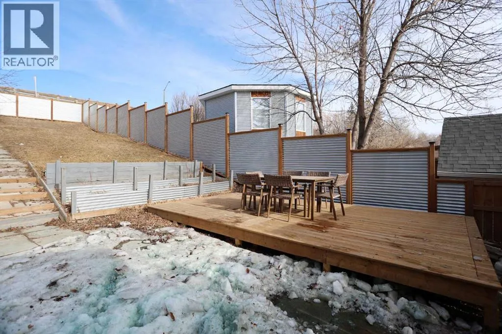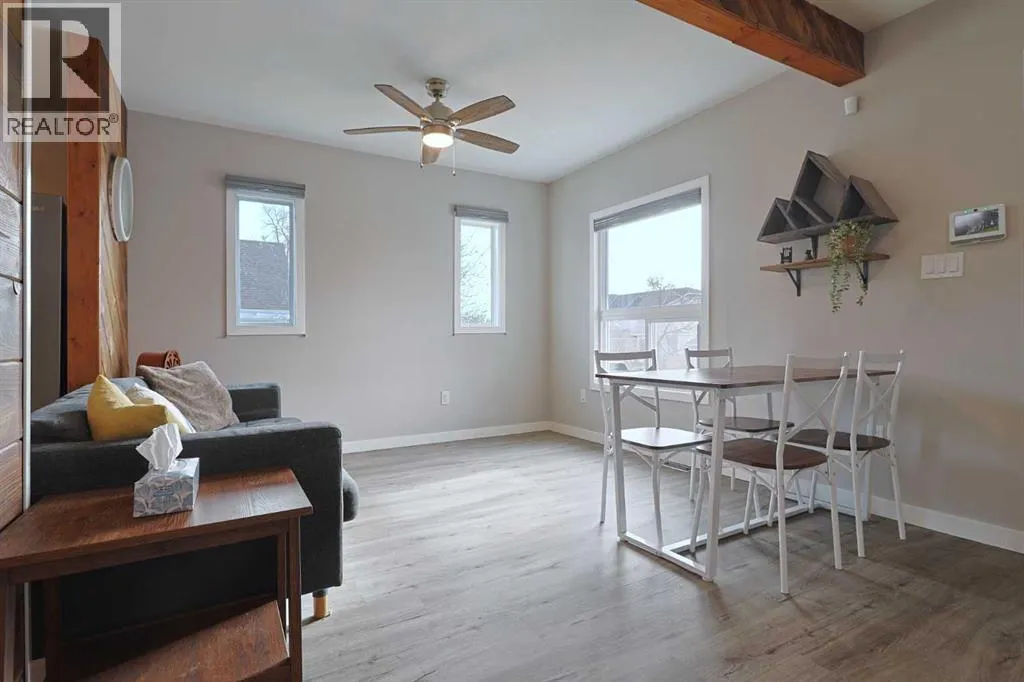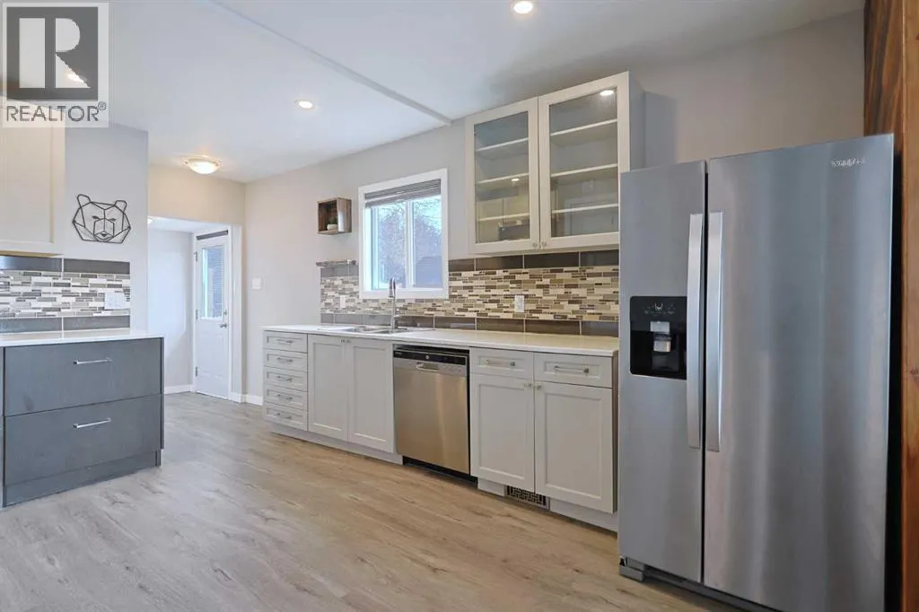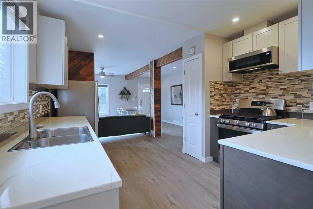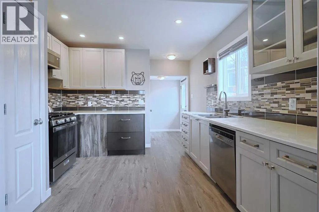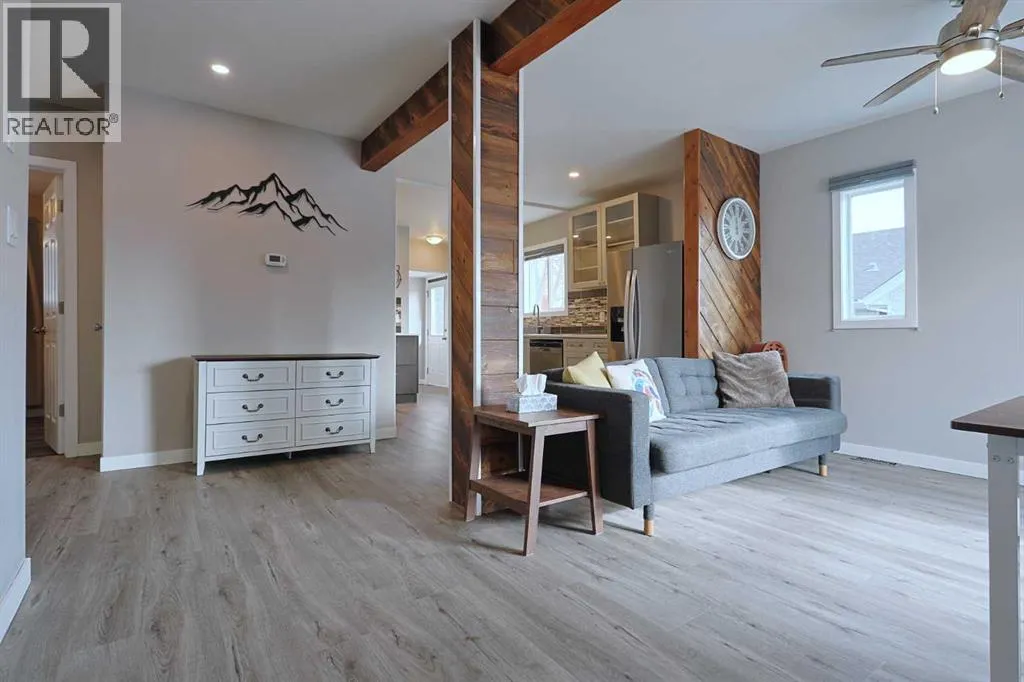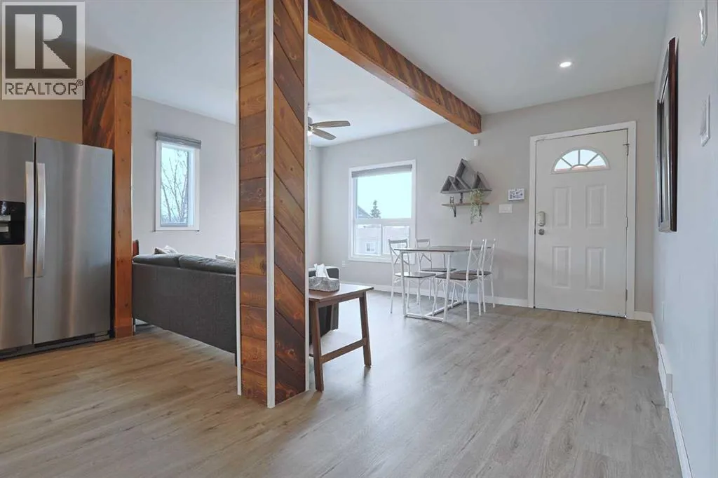 Opportunity knocks here in this beautifully renovated character home in Heritage Okotoks, nestled on this quiet crescent on this huge 50x150ft lot within walking distance to schools & Okotoks Old Towne Plaza retail district. This charming 1940s bungalow has brand new vinyl plank floors, 3 bedrooms & full bathroom, stainless steel appliances, 2 decks & a host of improvements including hot water tank, fence, electrical & plumbing. Bathed in natural light, youâll love the open feel of the main floor with its sunny South-facing living room & eat-in kitchen with pantry & stainless steel appliances which includes a GE gas stove & new Whirlpool fridge (2025). Main floor has 3 bedrooms highlighted by the primary bedroom with big walk-in closet & feature wall with reclaimed wood paneling. The updated full bathroom has granite-topped double vanities & shower/tub combo. The lower level is finished with a rec room/home office, workshop/utility room & laundry with newer Maytag Maxima washer & dryer (@ 4years old). The enclosed front porch is a wonderful welcoming space to sit & relax, & the backyard is a huge open space with 1 of 2 decks, 2 storage sheds, firepit & new fence (2022)â¦perfect for the kids to play in or for you to enjoy the great outdoors. Improvements include hot water tank (2023), electrical (with panel upgraded to 100amp), plumbing, insulation, drywall, windows, insulated interior walls & spray foam insulations in the crawlspace area. Within minutes from your front door is historic downtown Okotoksâ¦with its services & restaurants, trendy shops & cafes. And with the quick access to Highway 2A/Northridge Drive means you have an easy commute to Calgary, High River & beyond! (id:27476)