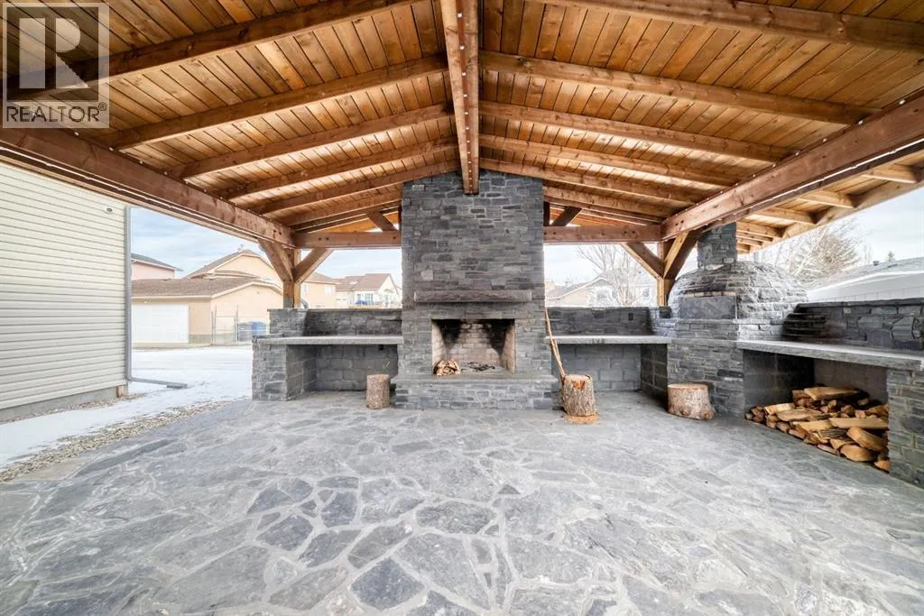 Welcome to this beautifully maintained 2-storey walkout home located on a peaceful street in the desirable community of Cimarron, Okotoksâjust a short walk to playgrounds, schools, and the river pathways. From the moment you enter, youâre greeted by a bright, airy foyer open to above, setting the tone for the open and inviting layout. The main floor features a spacious open-concept living room with a cozy fireplace, perfect for everyday living and entertaining. The kitchen is a true highlight, offering granite countertops, a large pantry, ample cabinet and counter space, and a full suite of stainless steel appliances. Step out from the main level onto the generous 17â x 10â balcony, ideal for enjoying quiet evenings outdoors. Upstairs, the primary retreat impresses with vaulted ceilings, large south-facing windows, a walk-in closet, and a private 3-piece ensuite. Two additional well-sized bedrooms and a 4pc bathroom complete the upper level. The fully finished walkout basement adds versatility with an additional gas fireplace, a fourth bedroom or den, and 4pc bathroom, perfect for guests or teens. Car lovers and hobbyists will appreciate the attached garage with gleaming epoxy flooring, along with an additional detached garage at the rear and a large recreational outdoor space complete with a custom built pizza ovenâan entertainerâs dream. The home is also enhanced with Gemstone lighting, adding both curb appeal and year-round functionality. This property offers the perfect blend of space, comfort, and lifestyle in one of Okotoksâ most sought-after communities. A rare opportunity you wonât want to miss, call for your viewing today! â (id:27476)