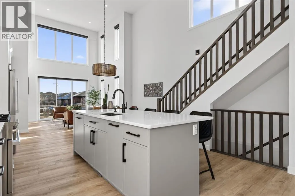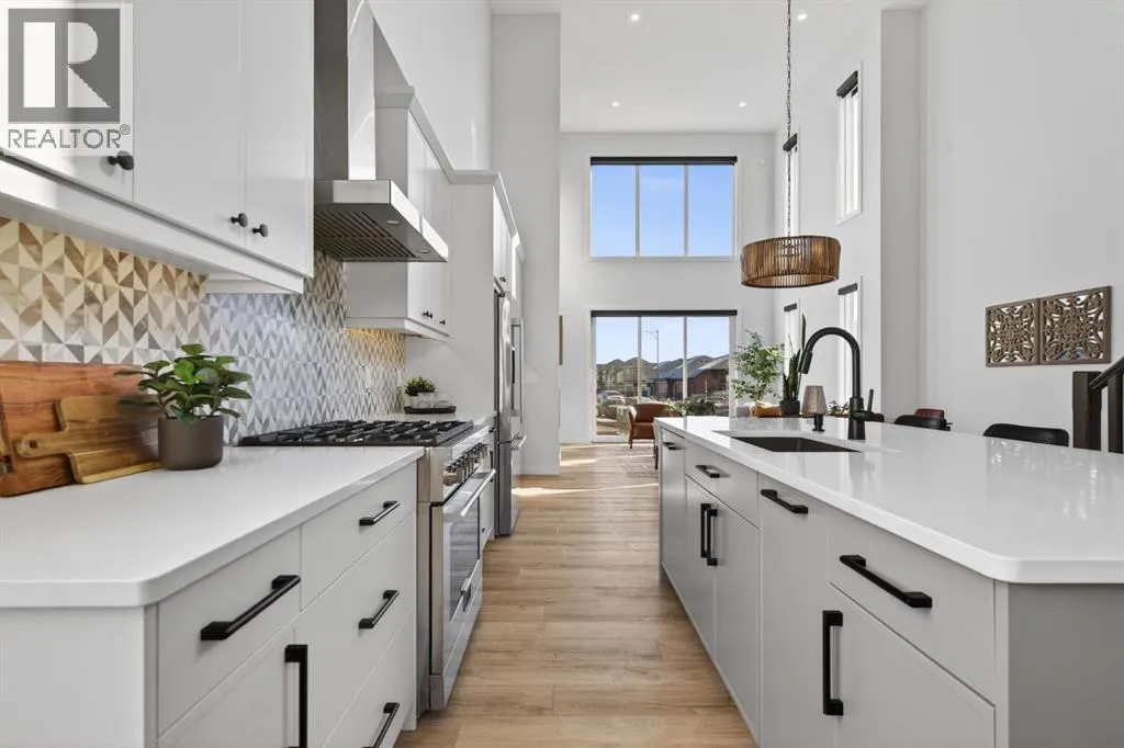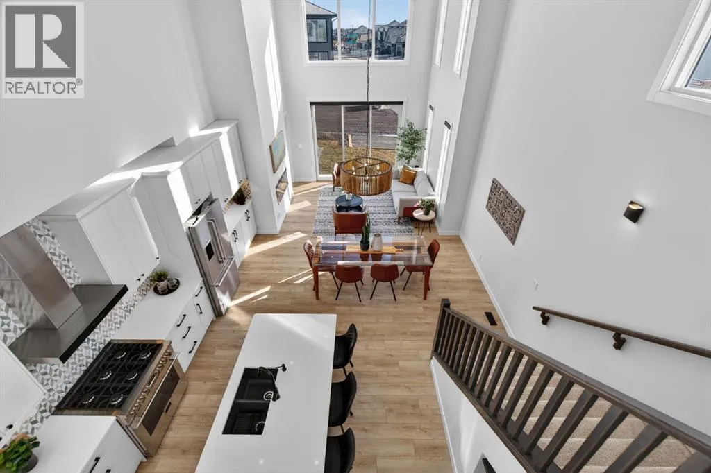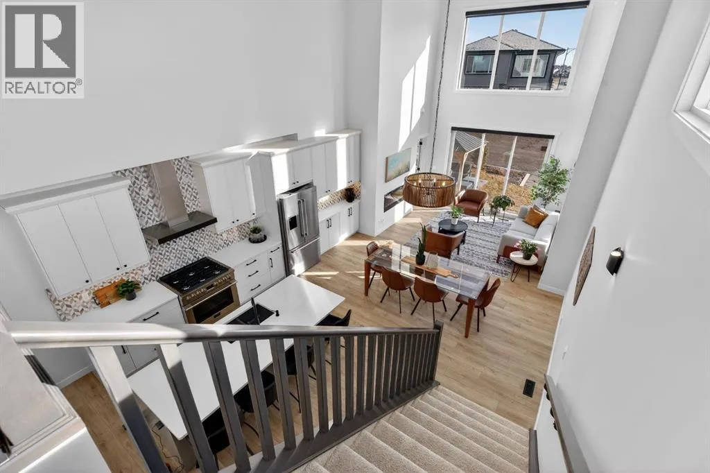 Welcome to luxury in this beautifully designed Trico Westwood model home, offering the highly sought after convenience of a main floor primary suite, presenting the functionality of a bungalow with the added bonus of upper level living. Â As you step inside, immediately you notice the bright and welcoming main floor, featuring an open, thoughtfully designed layout. Â With 4 additional windows added to the south wall, thereâs a ton of natural light, and all are equipped with electric & solar powered blinds on its own wifi system. Then there is the kitchen, a true show piece, complete with ample cabinetry, upgraded Bosch appliances, an Italian gas stove by Fulgor and a pantry for extra storage. Convenient main floor laundry, a 2 piece powder room, and easy access to the double attached garage enhance the homeâs practical design. Â The standout feature is the main floor primary bedroom retreat, offering privacy and comfort with a walk in closet and a luxurious 5 piece ensuite. Â Upstairs, youâll find two generously sized bedrooms, a full bathroom, and a versatile family room. Â And the bonus: a balcony to show off the stunning Rocky Mountain views with a fun vantage point overlooking the DâArcy Golf Course 2nd tee box. Â The fully developed basement expands your living space even further, featuring a massive rec room with multiple functions, two additional bedrooms, a full bathroom, and plenty of storage. Â And with 9 foot ceilings and larger windows, this basement feels like anything but a basement. Â Outside, there have been many added upgrades to the home exterior as well as a widened front driveway, additional rear gravel parking pad, Â a concrete outdoor area with gazebo and gas hook ups not only for your BBQ by the home, but also for a fire table under the gazebo. Situated in the quiet, family friendly neighbourhood of DâArcy, close to parks, pathways, the golf course and amenities, this home offers the perfect blend of comfort, functionality, and community living. Â A rar e opportunity to own a move-in ready, highly upgraded home in one of Okotoksâ most desirable neighbourhoods. Â Contact your favourite realtor to book a showing today! (id:27476)