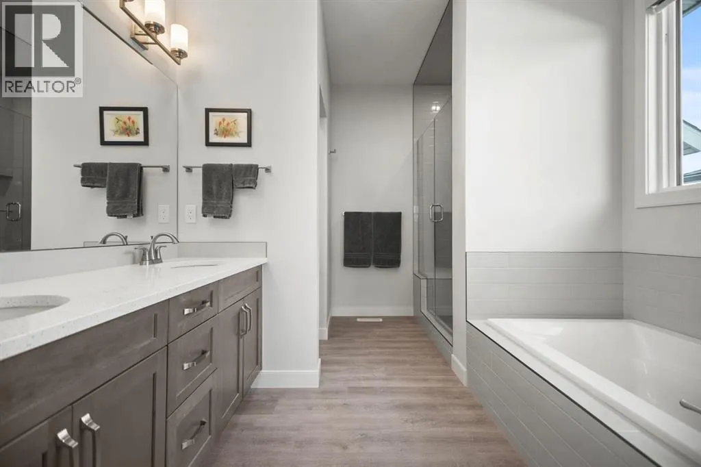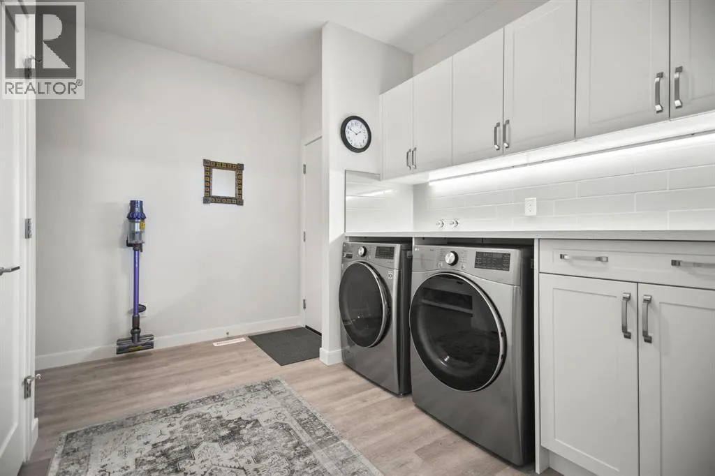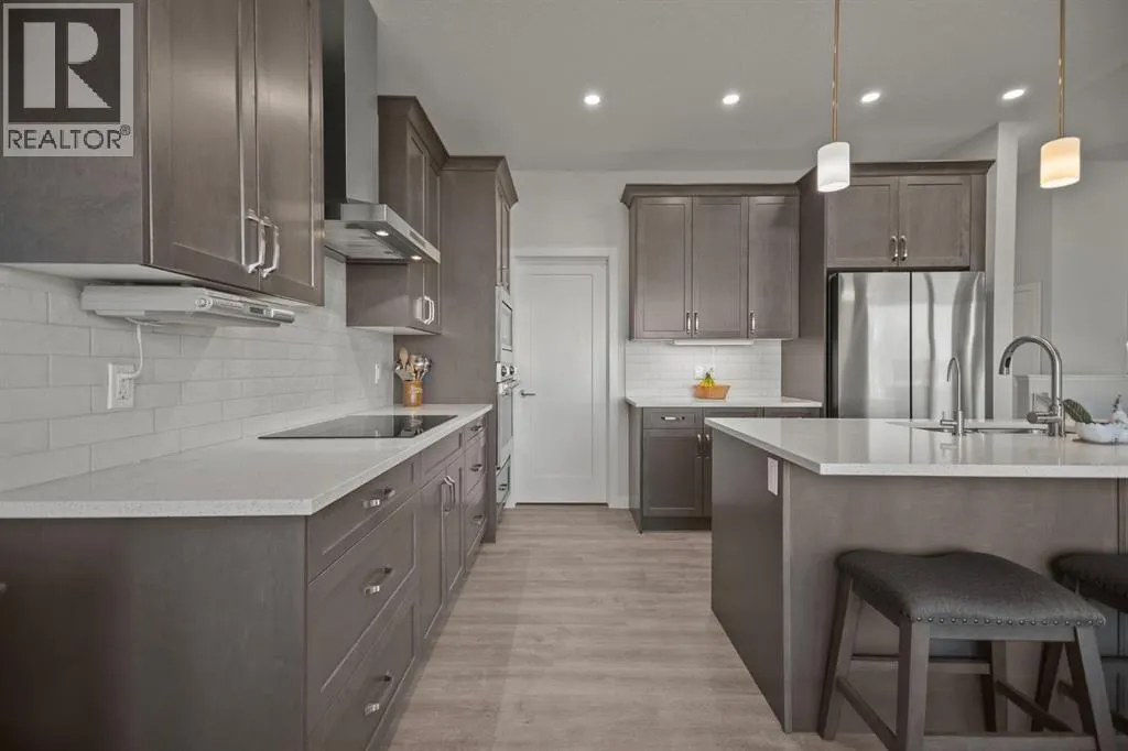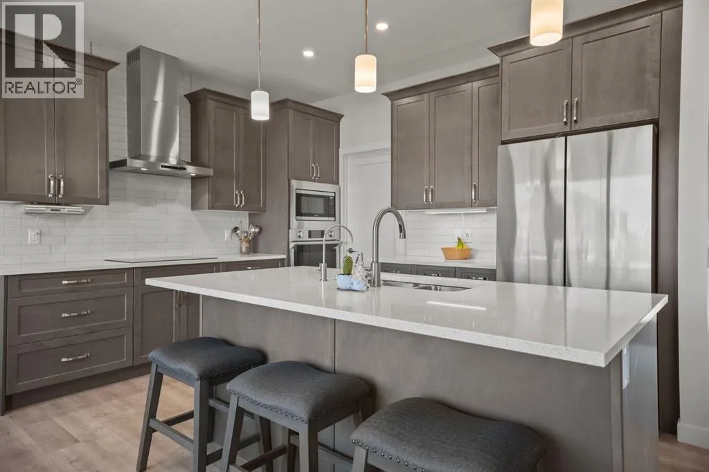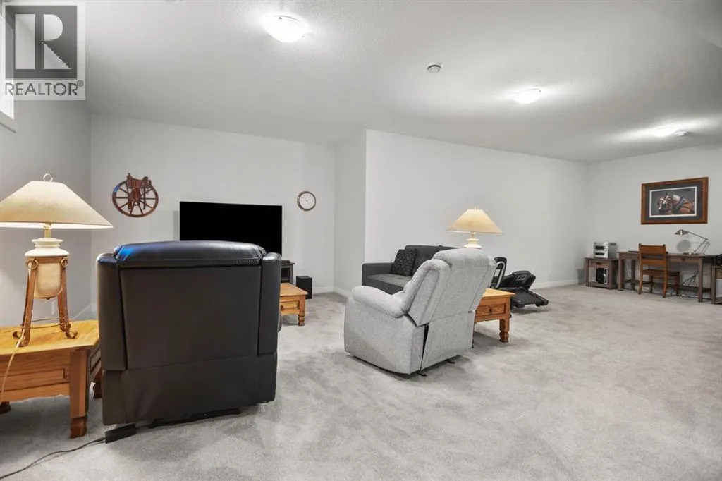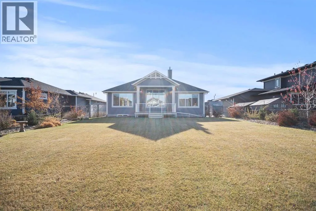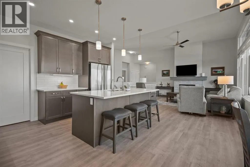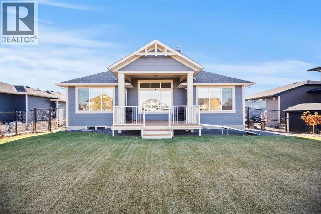 Welcome to this beautifully crafted 2023 bungalow offering over 3,000 sq ft of thoughtfully designed living space in one of Okotoksâ most sought-after locations. With exceptional curb appeal, covered front and back decks, and a large fully fenced rear yard, this home perfectly blends modern comfort with everyday functionality. Step inside to a bright, open-concept main floor where expansive windows flood the space with natural light. The spacious living room is anchored by a stunning gas fireplace, creating a warm and inviting focal point. The seamless flow between the living, dining, and kitchen areas makes this home ideal for both entertaining and relaxed family living. The kitchen is as stylish as it is practical, featuring stainless steel appliances, a large central island, quartz countertops, and a walk-in pantry for added storage. Whether hosting guests or enjoying quiet mornings at the island, this space truly feels like the heart of the home. The main level offers 1,571 sq ft with two generous bedrooms, including a beautiful primary retreat complete with a stunning walk-in closet and spa-inspired ensuite featuring a double vanity and a luxurious soaking tub. A second 3-piece bathroom and convenient main-floor laundry complete this level. Downstairs, the fully finished basement adds an additional 1,437 sq ft of living space, including a large recreation room perfect for movie nights, games, or a home gym. Two additional bedrooms and a 4-piece bathroom provide flexibility for guests, teens, or multi-generational living.Outside, the expansive rear yard offers plenty of room to enjoy, whether itâs summer barbecues on the covered back deck, space for kids or pets to play, or future landscaping ideas. The additional side parking pad is a rare and practical bonus, complementing the double attached garage. Located close to walking paths, schools, and shopping, this home delivers both lifestyle and convenience. If youâve been searching for modern bungalow living wit h space to grow in a prime Okotoks location, this is the one. Don't miss your chance to see it today. (id:27476)