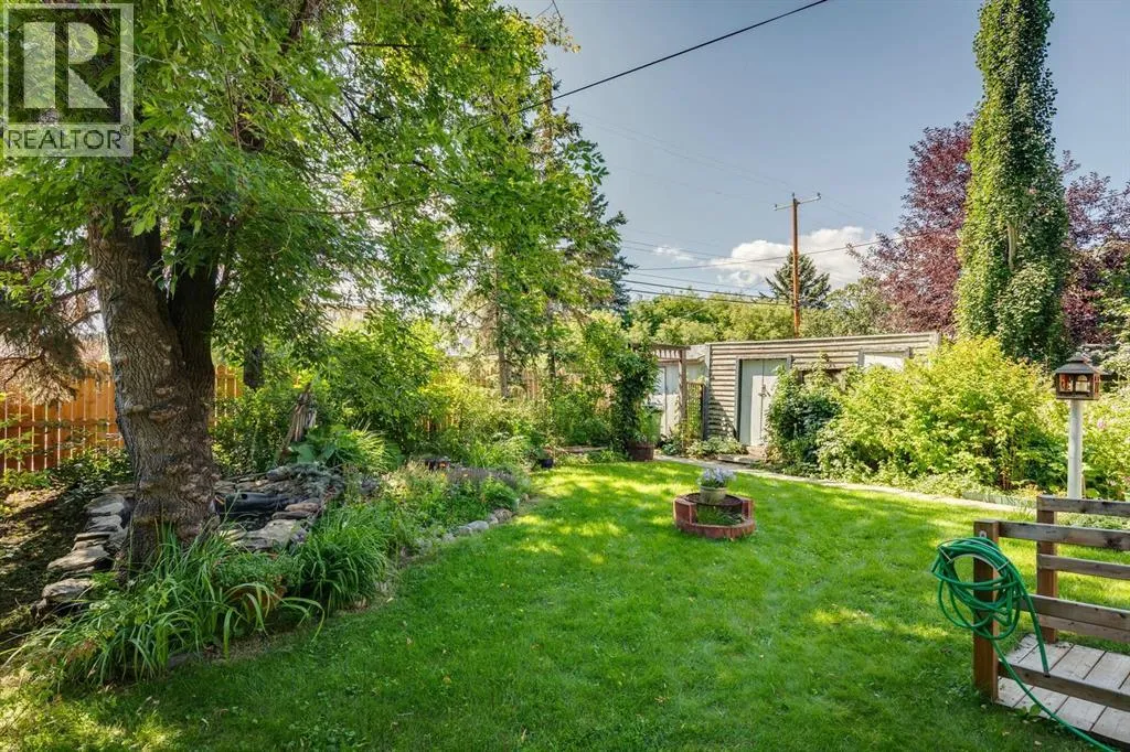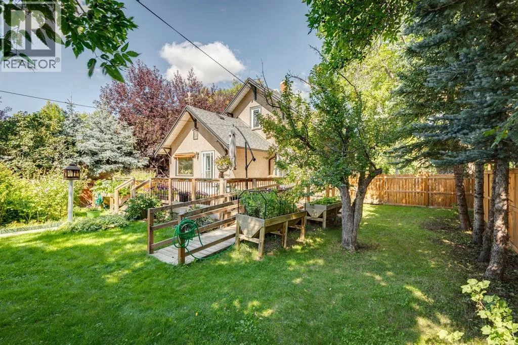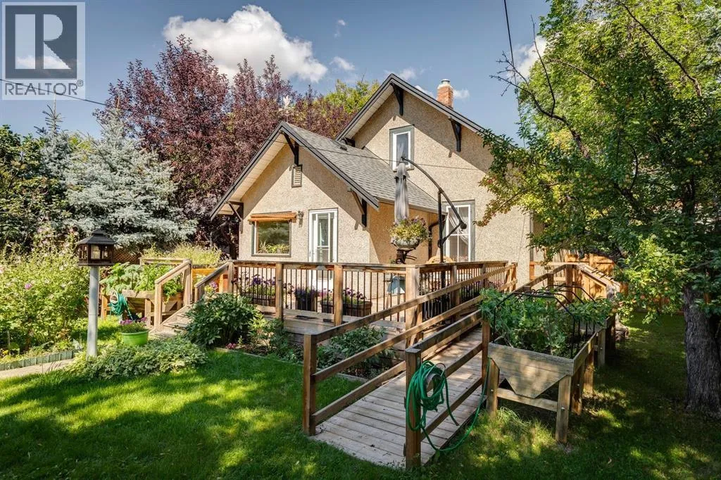 OPEN HOUSE SATURDAY THE 14TH 2-4 PM. THIS IS A RARE FIND! Zoned for commercial or residential. A charming heritage home on highly coveted Elma Street, one of Okotoksâ most historic and picturesque locations. This beautifully maintained 1.5 storey property sits on a large, private, tree-filled lot with an updated exterior, a white picket fence, a welcoming covered veranda, and a stunning backyard oasis w/ pond and stunning flower beds, making it feel like your own private park.Zoned Heritage Mixed Use, this property offers exceptional flexibilityâideal as a warm, character-filled residence or a discretionary commercial space, giving you the rare opportunity to open a business before the busy summer and fall season on Elma Street.Inside, the home radiates timeless character with beautiful original wood charm, original fir flooring, high ceilings, and a warm, welcoming layout. The main floor features a spacious living room/dining room, a bright kitchen with a breakfast nook addition, an updated 4-piece bathroom, and a main floor bedroom. Two generously sized bedrooms complete the upper level. The basement is partially developed with a large flex room, plus storage.Extensive updates provide peace of mind, including:New shingles, eavestroughs, and soffit, Updated electrical, New water line to the main, Newer hot water tank, Updated exterior, new fence and back deck. Ongoing improvements since early 2000s including plumbing, wiring, furnace, and sump pumpHomes on Elma Street seldom come availableâespecially ones with this much character, modernization, and zoning versatility. A truly special property worth viewing! (id:27476)