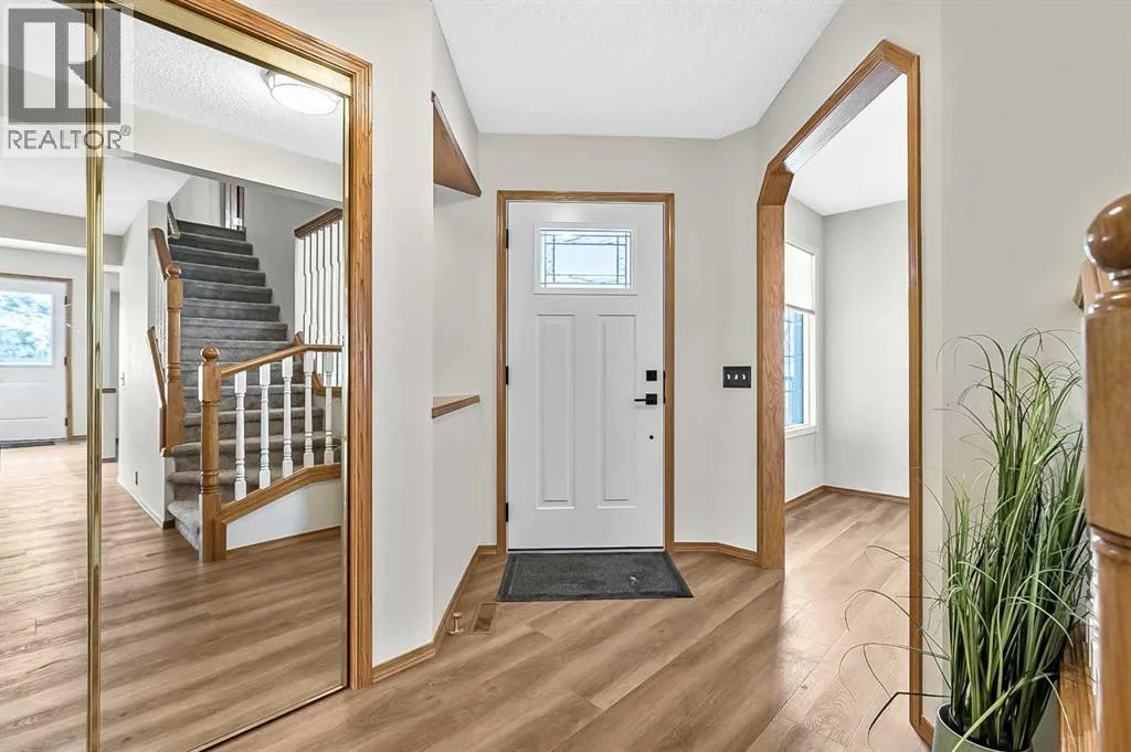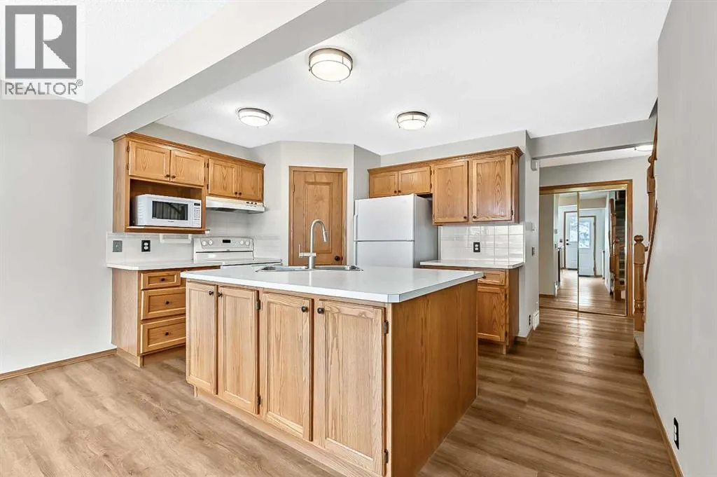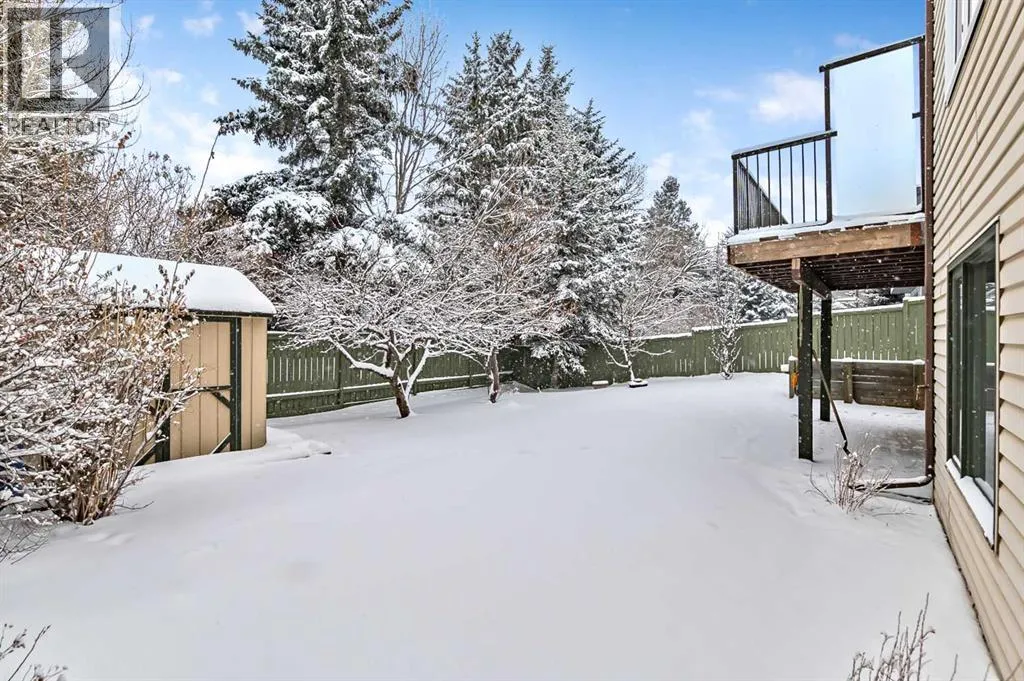 Need a larger home for the family? Awaiting you is this SPACIOUS 5 bedroom, 2 storey home in the desirable community of Suntree. Longtime owner with wonderful neighbours .The main floor features a flex room that once was a formal dining room. There's a 2pc powder room and laundry room on this level. New vinyl plank flooring guides you to the island kitchen with full appliance set. Big windows let in the natural light.. Enjoy the family room when you gather round the wood burning fireplace. Relax on the 12x19 deck. The upper level features a skylight providing loads of natural light. The primary bedroom boasts a 4pc ensuite and a reading room. THREE additional bedrooms, one with walk in closet., and a 4 pc bathroom complete the upper level. The lower level is a WALKOUT basement; partially finished just awaiting your final touches. A 4pc bathroom and bedroom #5 are complete. This family home has AC for those hot summer days! Also included are the following NEW items - doors, some windows, carpet, freshly painted walls. SOUTH backyard is nicely landscaped including fruit trees. The front of the home has a triple car garage that provides both extra parking or storage! This home is close to great schools, playgrounds, shopping, Okotoks walking paths and the Okotoks rec centre. All this, and its a closer northside commute to Calgary! (id:27476)