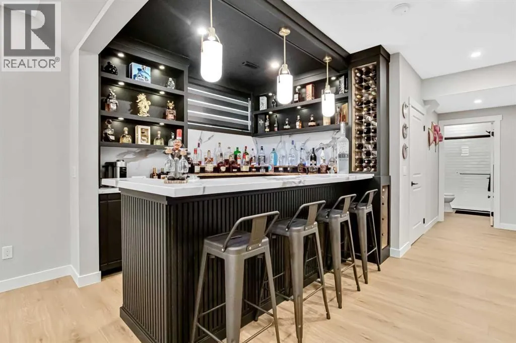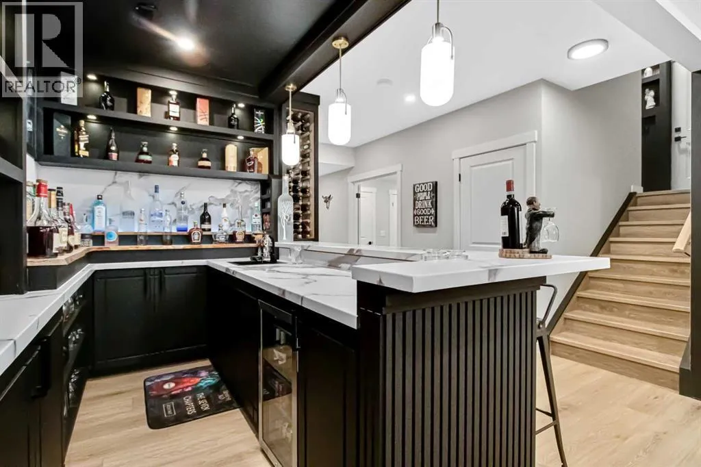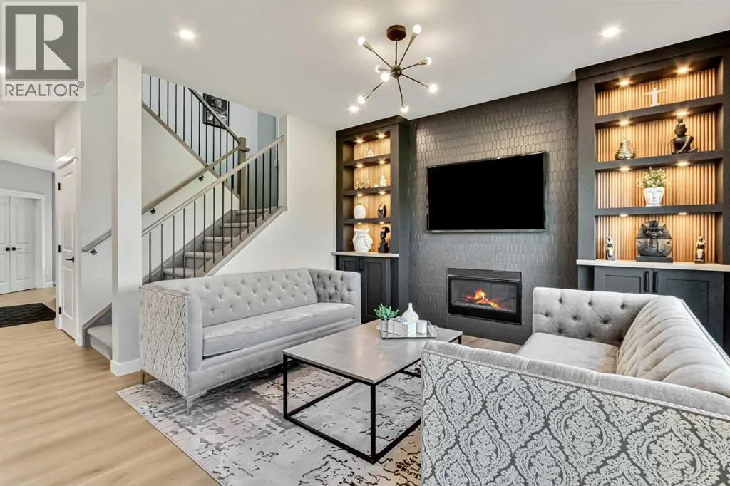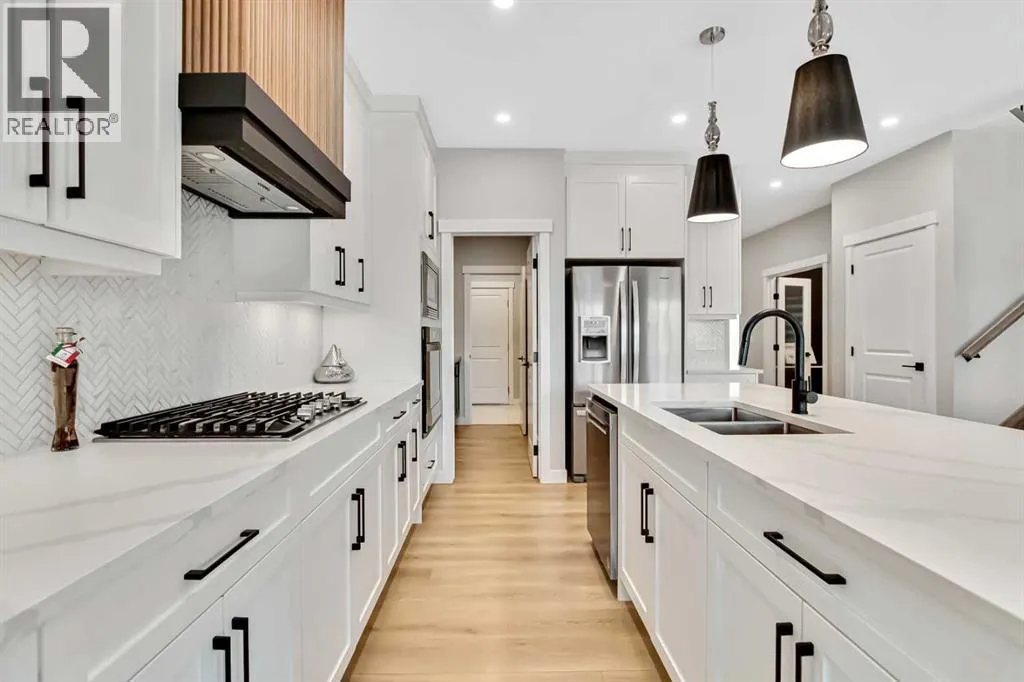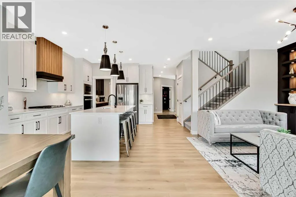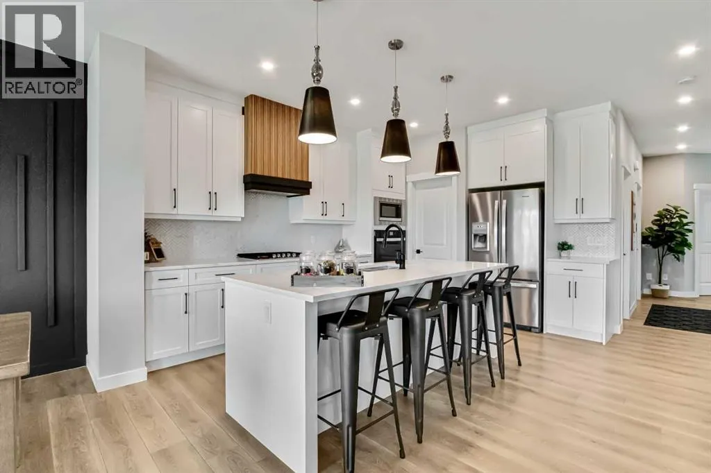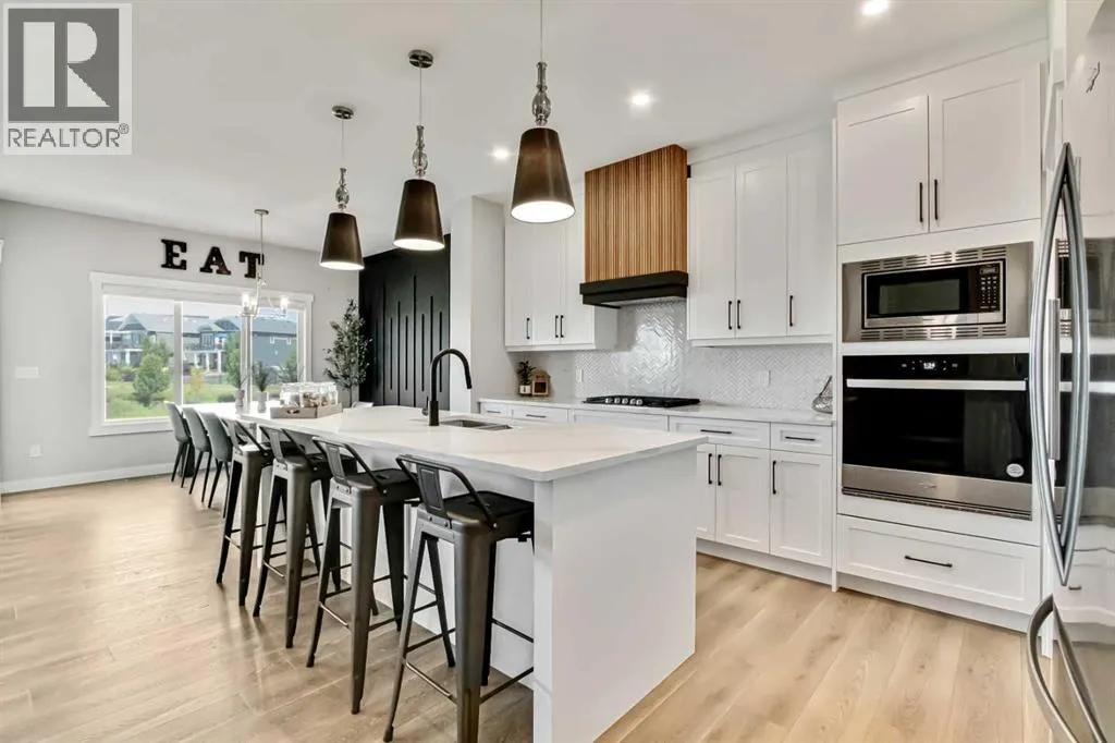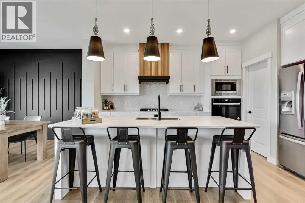 Pond views, sunset evenings and thoughtfully designed spaces for everyday living - welcome to one of Wedderburnâs most desirable offerings. Backing directly onto the pond and pathway system, this exceptional home delivers a rare blend of privacy and connection to nature. Walking distance to schools, park, dog park and pump track, this location offers an ideal balance of outdoor living and everyday convenience. The professionally landscaped backyard is designed for unforgettable gatherings, featuring a custom patio with fire pit, pergola lounge area and serene water views that create a true retreat. The rear deck with BBQ gas line extends the entertaining space, making it effortless to host in every season.Inside, the main level offers beautifully defined yet connected living zones. A dedicated home office provides quiet focus, while the enclosed flex/media room with French doors is ideal for kids study, gaming, or additional lounge space. The inviting family room with modern fireplace flows seamlessly into the gourmet kitchen - complete with built in appliances, gas cooktop, quartz countertops and a walk through pantry - creating the perfect setting for both daily life and entertaining. Upstairs, the primary suite is a private retreat featuring a spa inspired ensuite with jetted tub, rain head shower and generous walk in closet. Three additional bedrooms provide flexibility for growing families - one with its own private ensuite, while the remaining two share a well appointed full bathroom. A bright bonus room overlooking the pond offers the perfect space for movie nights or relaxed family time, and the upper level laundry room adds everyday convenience. The fully finished basement is designed for entertaining, showcasing a large recreation area, custom wet bar, games space, fifth bedroom, full three piece bathroom and convenient side entrance access - offering versatility for guests or extended family. Additional highlights include custom mudroom built ins, heated garage with epoxy flooring, central air conditioning, water softener and elevated finishes throughout.Combining modern design, functional family living and breathtaking pond views, this home offers a lifestyle opportunity rarely available in todayâs market. Some photos were taken in August 2025 to highlight the pond during the summer season. (id:27476)