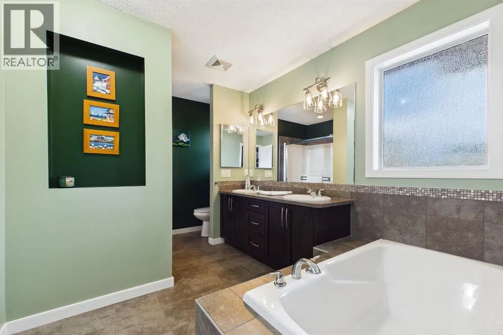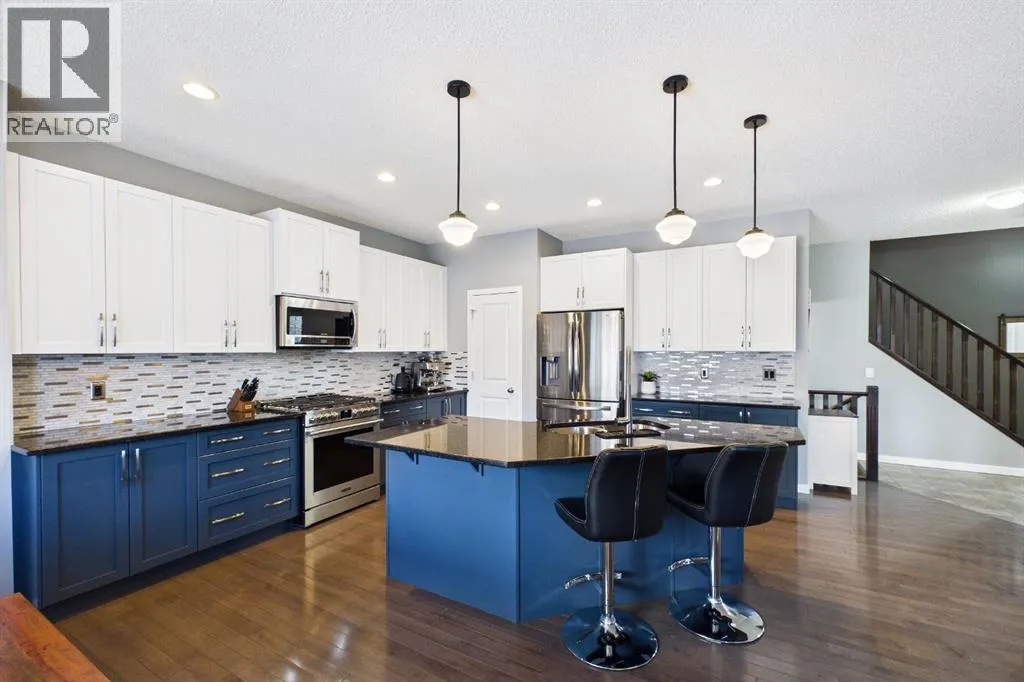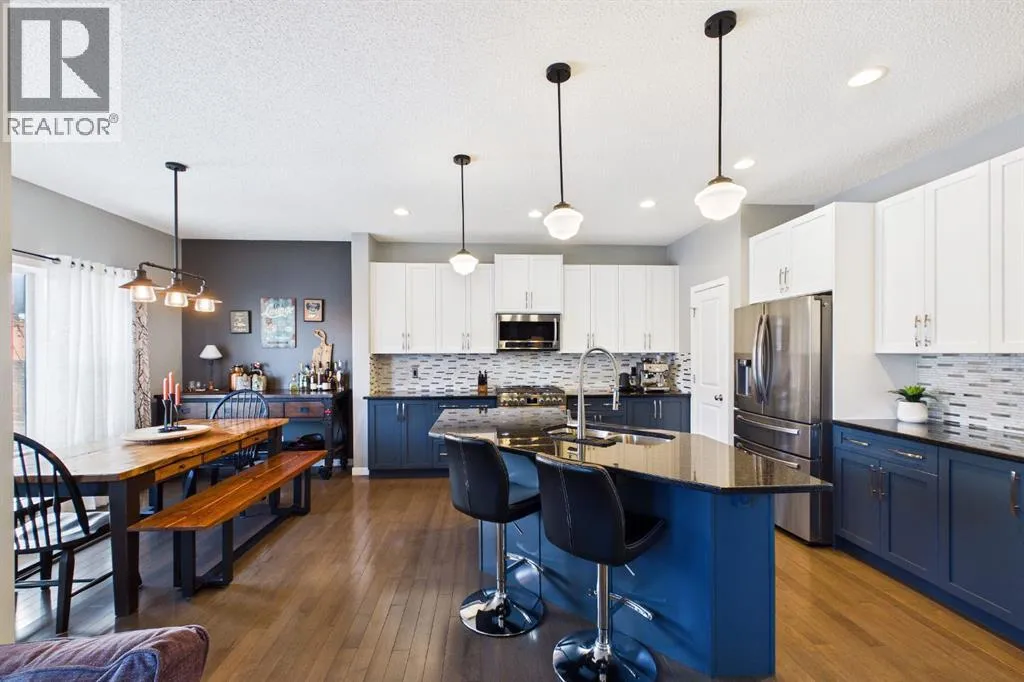 *OPEN HOUSE Sun, Mar 22 from 2-4 pm* Welcome to this gorgeous family home in the heart of Okotoks â a beautifully maintained property that blends comfort, style, and exceptional outdoor living. The main floor features rich hardwood flooring and a thoughtfully renovated kitchen with two-tone cabinetry and a stunning backsplash, creating a fresh, modern centerpiece that is perfect for both everyday living and entertaining. Upstairs, youâll find three spacious bedrooms, including a generous primary retreat complete with a well-appointed ensuite. The basement is well laid out and offers plenty of opportunity for future development, allowing room for growth and creativity. Step outside to a backyard designed for gathering and relaxation, featuring a concrete patio, pergola, and a fantastic outdoor pizza oven â ideal for summer evenings with family and friends. Do not miss the various fruit and berry producing plants. The low-maintenance landscaping means more time enjoying the space and less time maintaining it. The attached garage includes a workbench, shelving, room for two vehicles, and a convenient secondary screen door upgrade that adds versatility and airflow during the warmer months. Tucked away on a quiet cul-de-sac and close to a playground, walking paths, and an environmental reserve, this home offers the perfect balance of modern updates, functional living space, and inviting outdoor amenities in one of Okotoksâ most welcoming communities. (id:27476)
