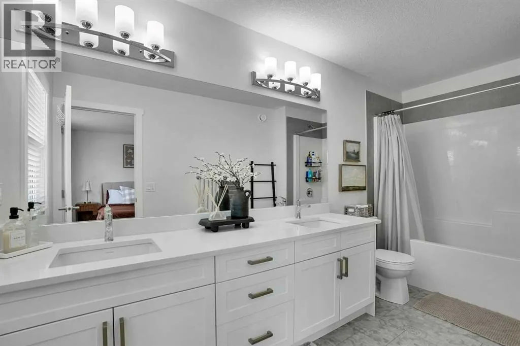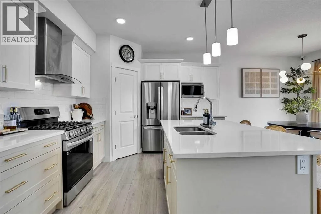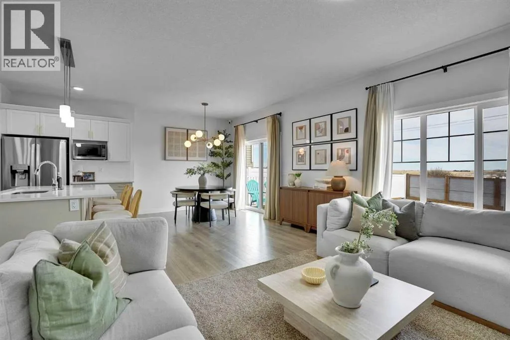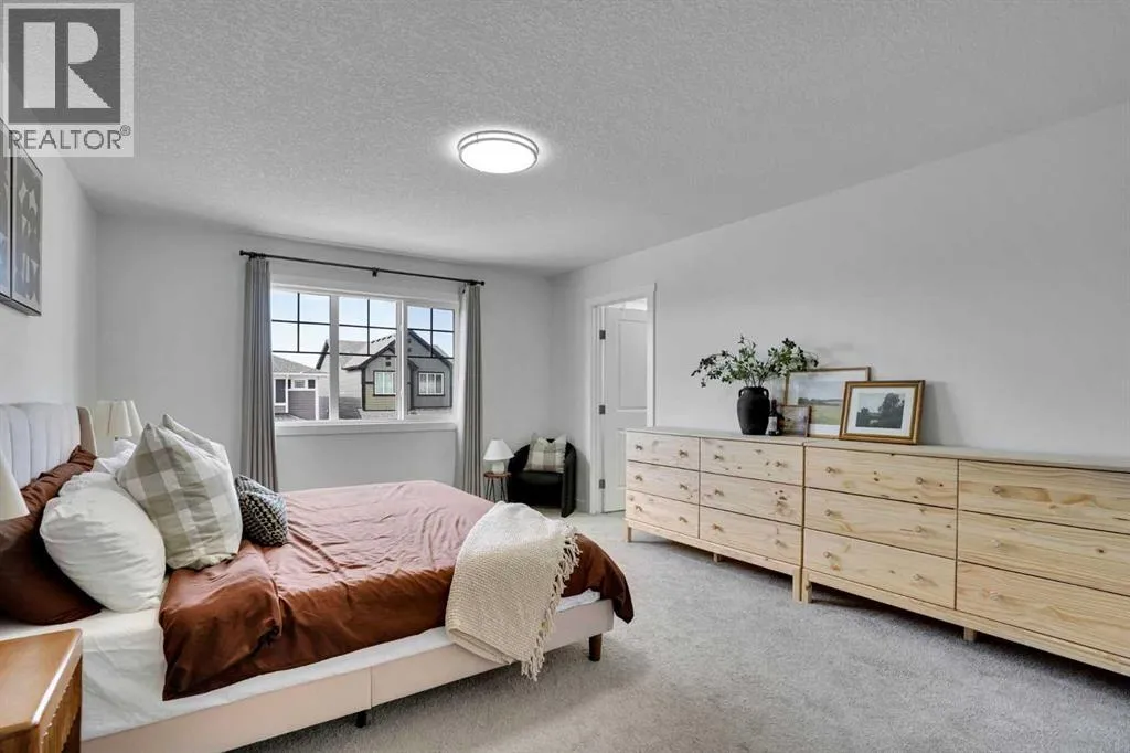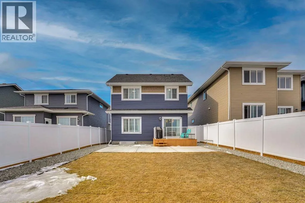 Welcome to this stunning home located in the sought after community of Air Ranchâwhere upscale living, modern style, and exceptional functionality come together! This beautifully maintained property offers 4 bedrooms, 2.5 baths, and a double attached garage, complete with an extended, widened driveway that provides generous additional parking. From the moment you arrive, youâll appreciate the thoughtful upgrades, including a concrete walkway that leads to the fully maintenance free backyardâperfect for effortless outdoor living. Enjoy summer evenings on your spacious concrete patio or relax on the upper deck. Thereâs a gas line hookup for easy summer barbecues, so no need to hassle with propaneâjust fire it up and enjoy. Step inside to a bright, open concept main floor featuring a flex room/bedroom, a spacious foyer, and a stylish living area highlighted by a center electric fireplace. The chef inspired kitchen showcases a good size quartz island, modern cabinetry, and seamless flow into the dining area with sliding doors to the backyardâideal for entertaining. Upstairs, retreat to your luxurious primary suite complete with a spa like 5 piece ensuite. The upper level also features two additional generous bedrooms, a 4 piece bath, a cozy bonus room, and a conveniently located laundry room. The unfinished basement is wide and open for your creative design and also features a rough in for a bathroom and a side entrance, offering excellent future development potential. Located close to schools, playgrounds, pathways, grocery stores, and essential amenitiesâplus just a short drive to South Health Campusâthis home offers the perfect blend of comfort, convenience, and style. Pride of ownership is evident throughout, making this a true showstopper you wonât want to miss! (id:27476)